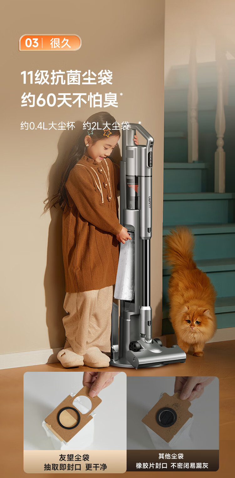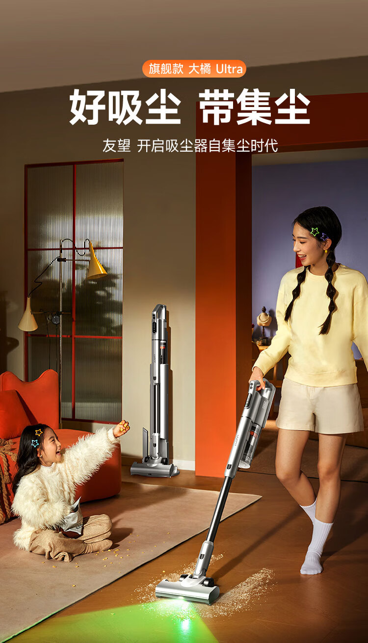 UWANT Youwang Vacuum Cleaner Daju Ultra Self-Collecting Dust Washer Antibacterial and Mite Remover Upgraded Battery Life Wide Angle Green Light Dust Display Large Suction Anti-Tangle Household Handheld Floor Sweeper and Mite Remover