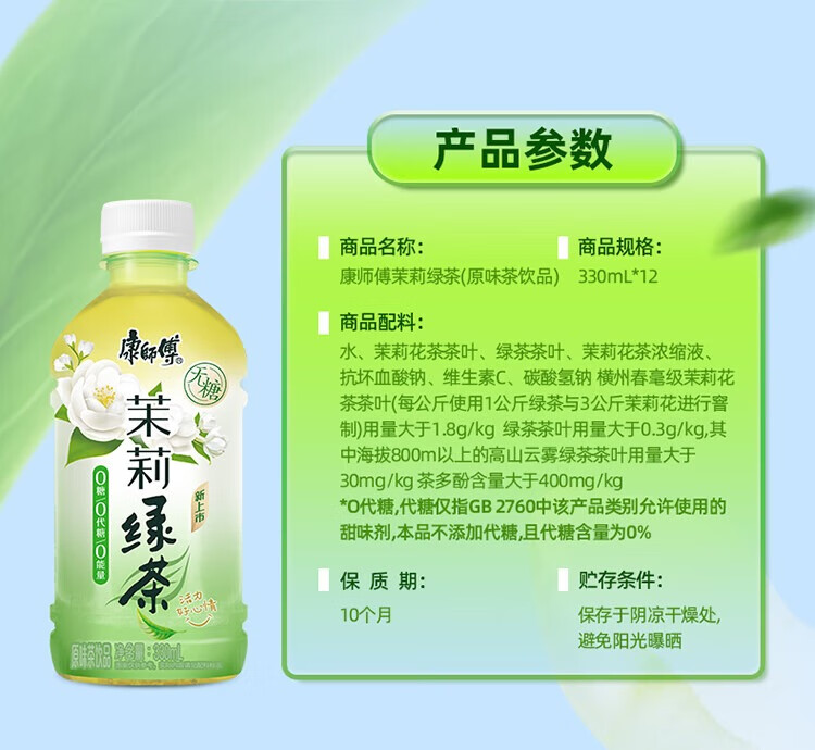 Master Kong tea drinks sugar-free green tea 330ML*6 bottles, not the whole box, small bottles of juice drinks