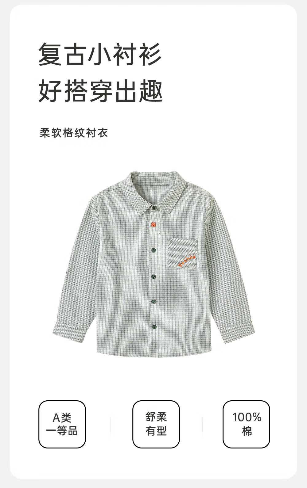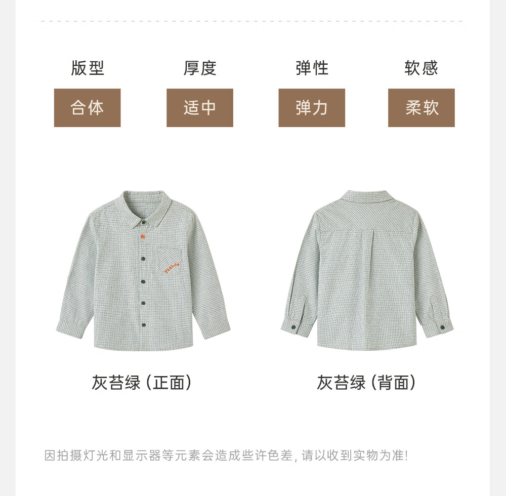 YEEHOO shopping mall same style children's clothing shirt pure cotton spring and summer long-sleeved tops boys' clothes gray moss green 80 CM