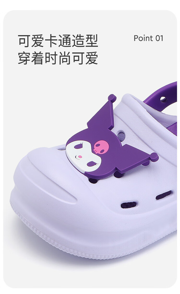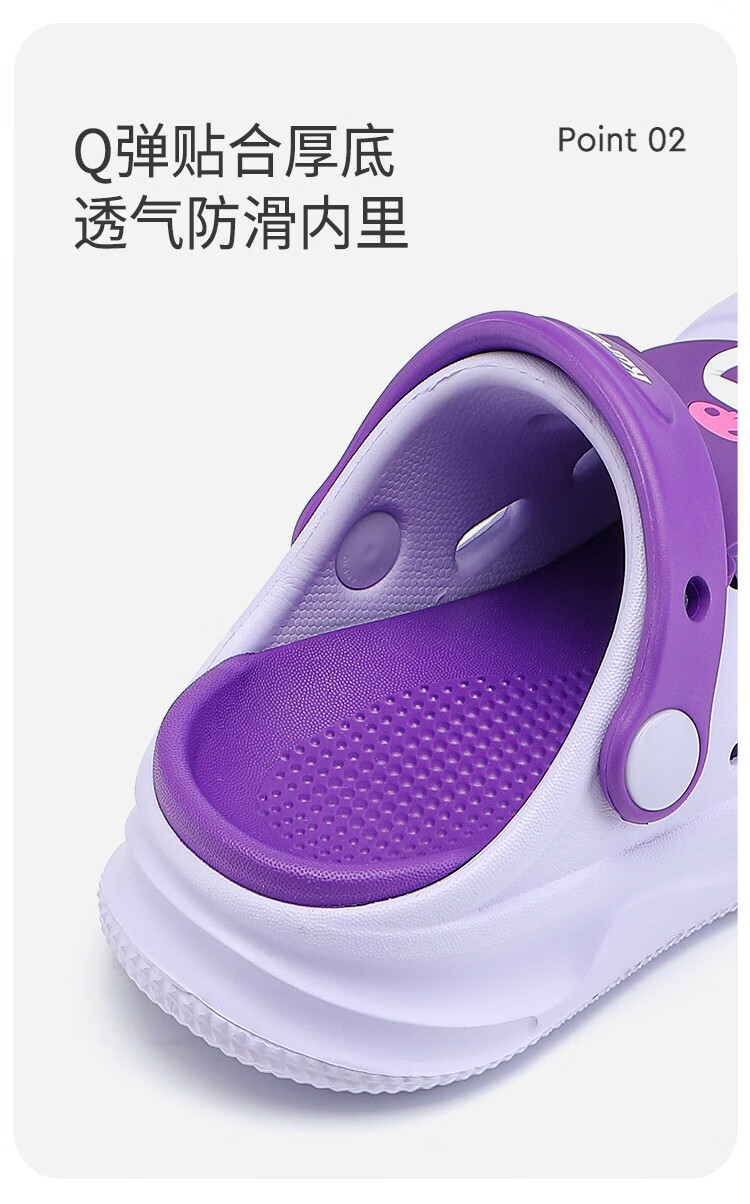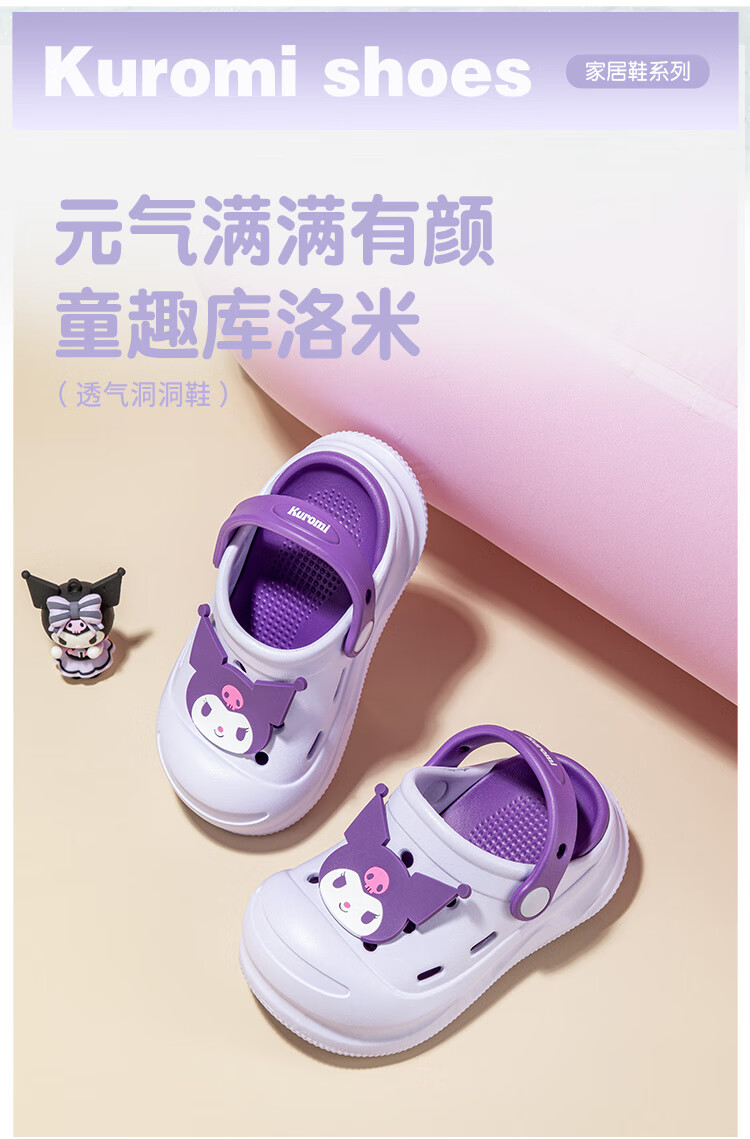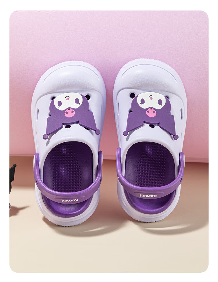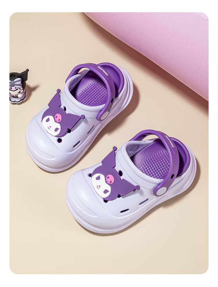 HELLOKITTY Children's Shoes Girls' Croc Shoes Kuromi EVA Two-Wear Sandals Thick-soled Garden Beach Shoes 5874 Purple 26
