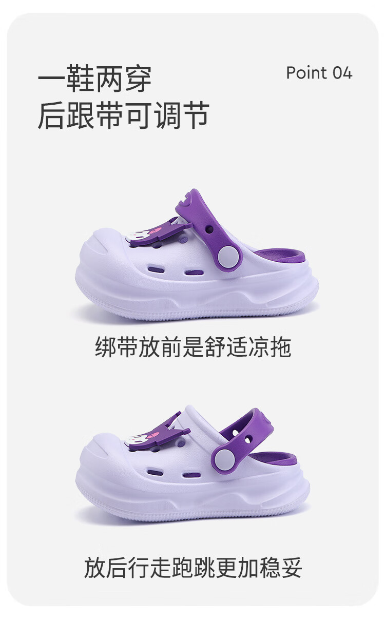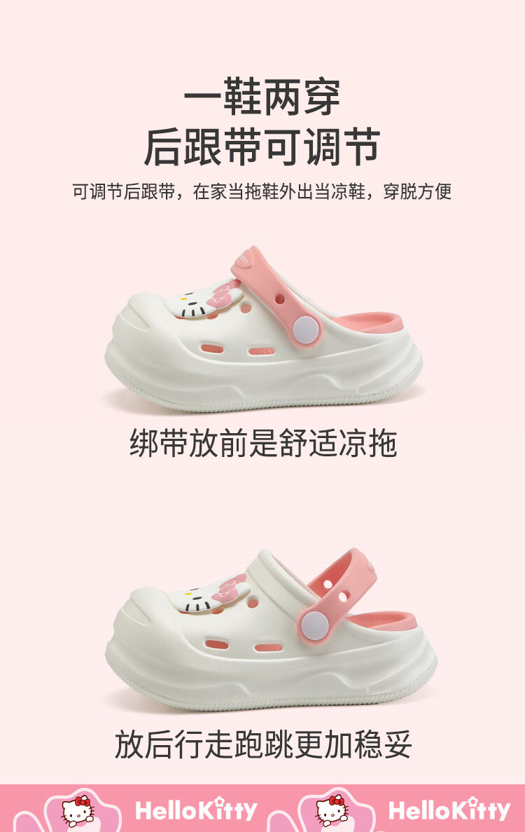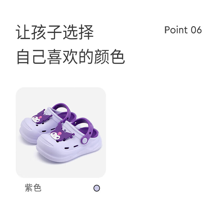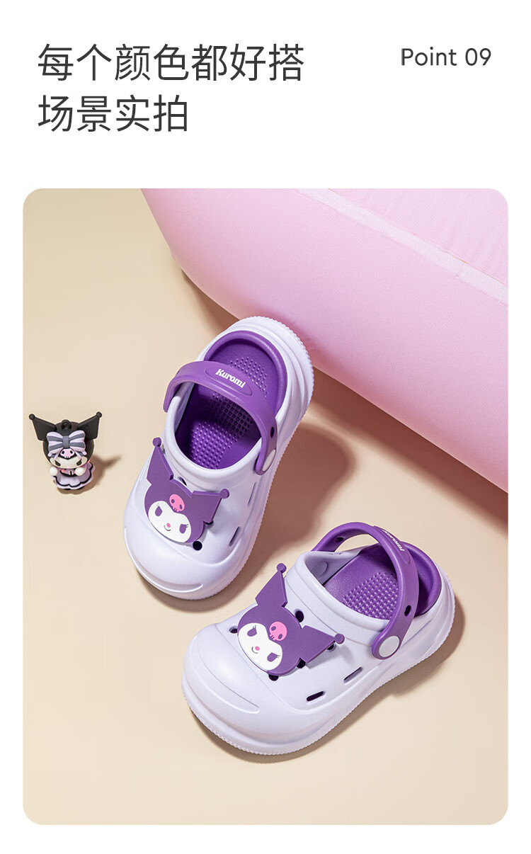 HELLOKITTY Children's Shoes Girls' Croc Shoes Kuromi EVA Two-Wear Sandals Thick-soled Garden Beach Shoes 5874 Purple 26