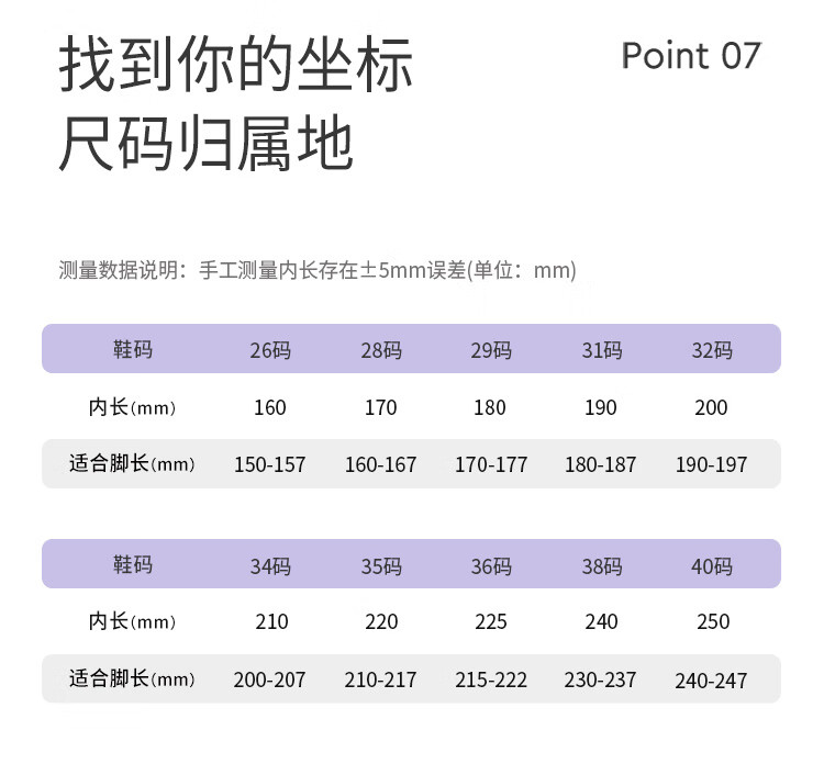 China (cm) 36 - 37 38 - 39 40 - 42 43 - 44 45 - 47