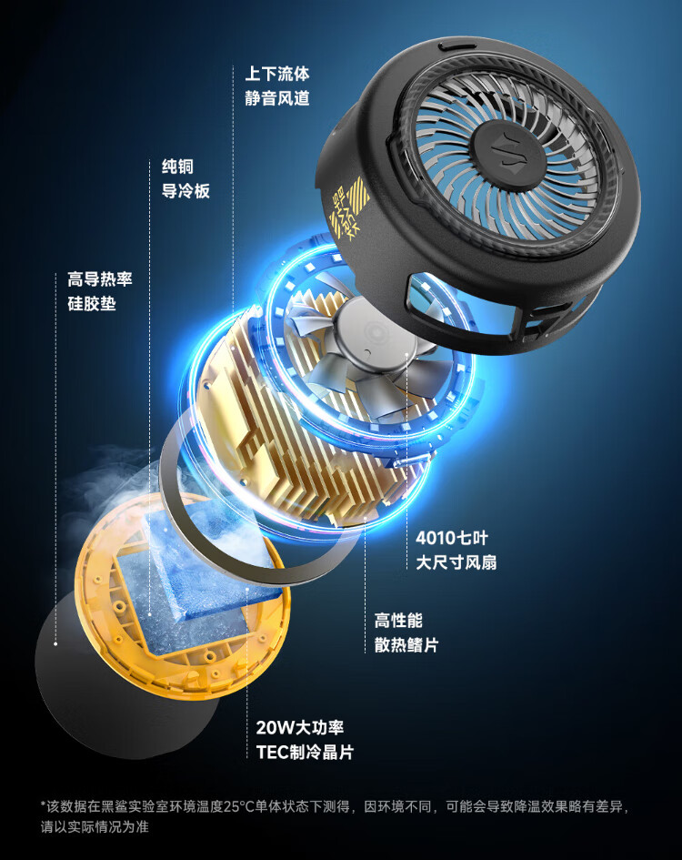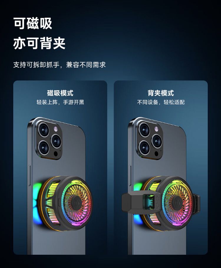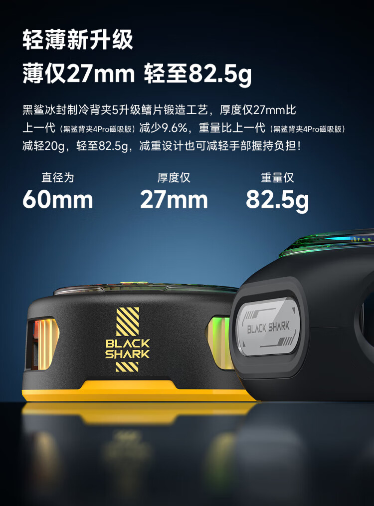 Black Shark 5 magnetic mobile phone radiator. Special cooling tool for game live streaming. Lightweight only 82g semiconductor refrigeration back clip suitable for tablets Apple 17 Red Magic IQOO OnePlus Zero