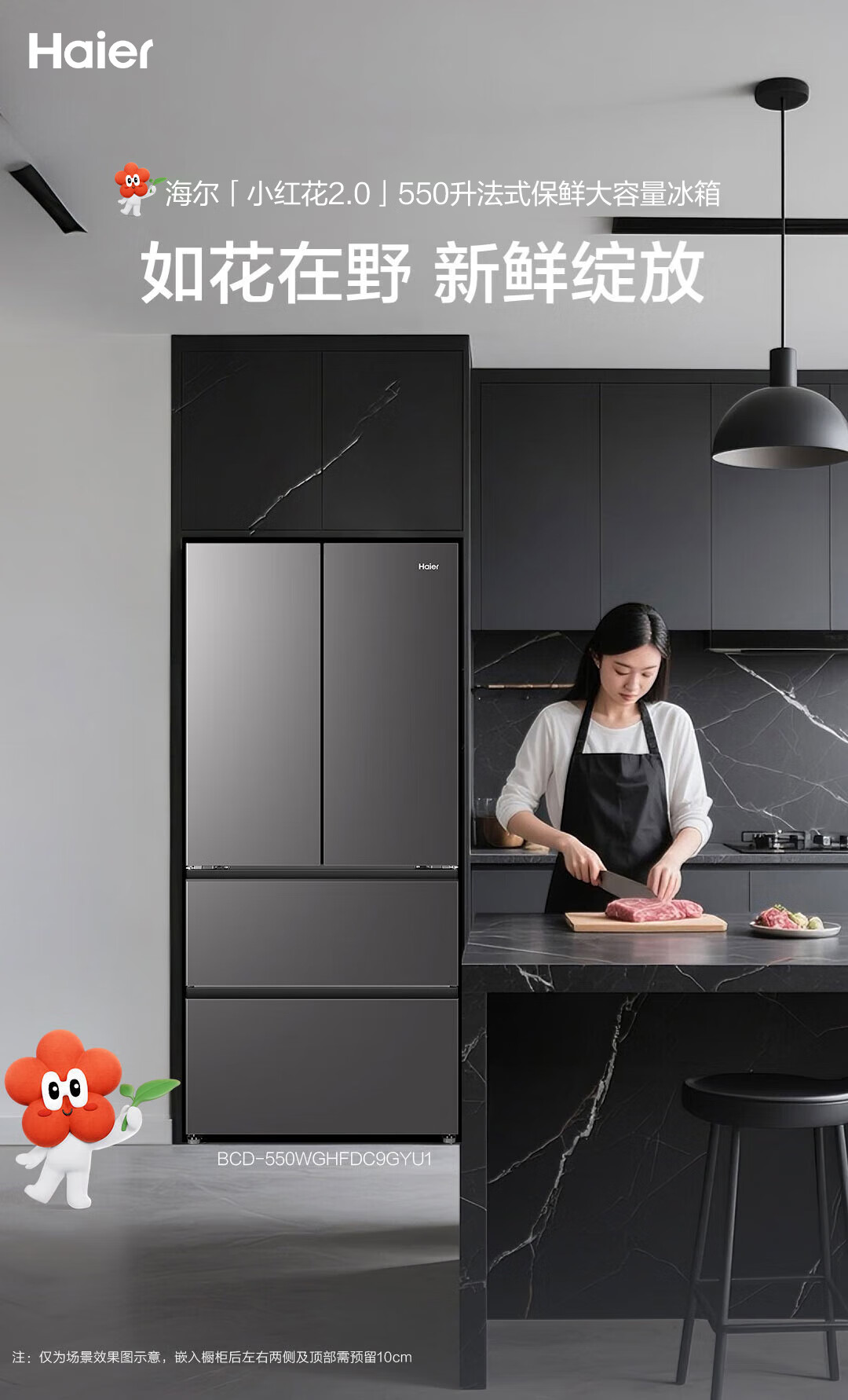 Haier Xiaohonghua 2.0 550L French-style multi-door dual-system dual-cycle household refrigerator first-class energy efficiency 2025 new model BCD-550WGHFDC9GYU1 national subsidy