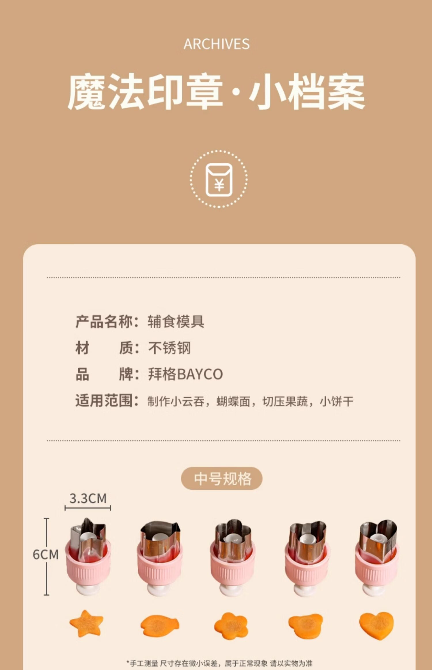 Bayco food supplement mold baby food supplement tool wonton mold household embossed baking 3 pack BX27676