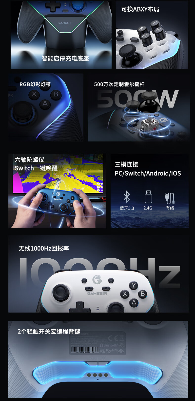GAMESIR Supernova Wireless Game Controller Switch Controller Pokémon ZA Macro Programming Mobile Phone Android Apple Steam Computer NS2pro TV Bluetooth Somatosensory Black Myth