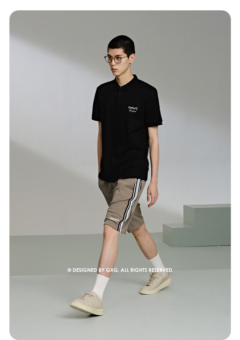 GXG men's textured casual shorts 24 summer khaki 170/M