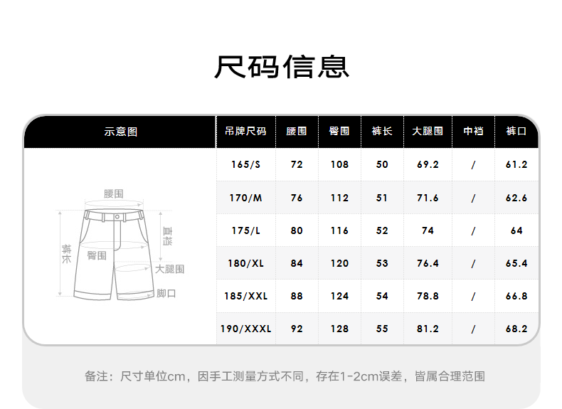 Outseam (cm) 99 cm 101.5 cm 104 cm 106.5 cm 109 cm