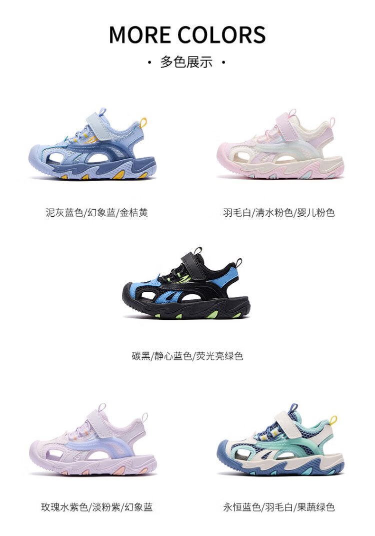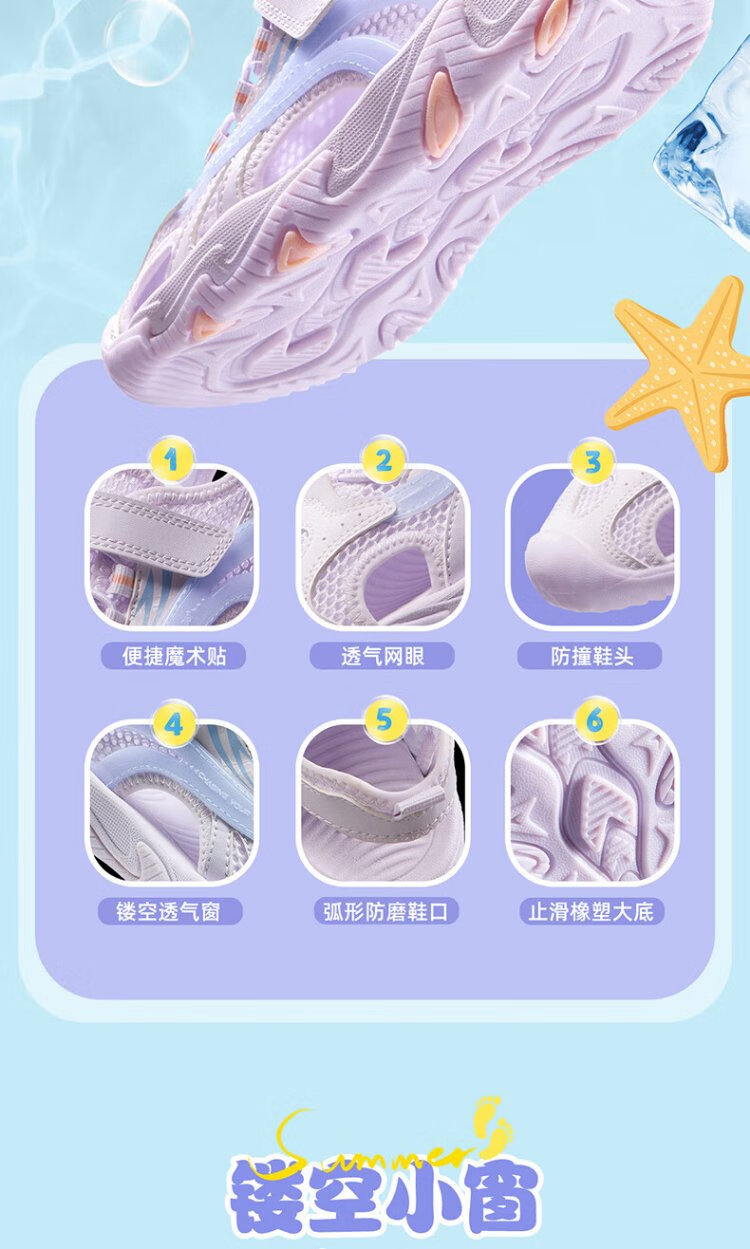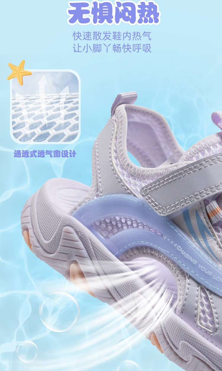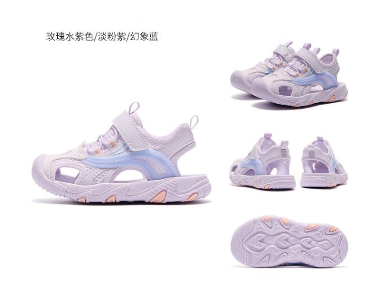 361 Children's Shoes Children's Sandals 25 Summer Breathable Cushioning Toe Guard Beach Sandals for Boys and Girls Purple 34
