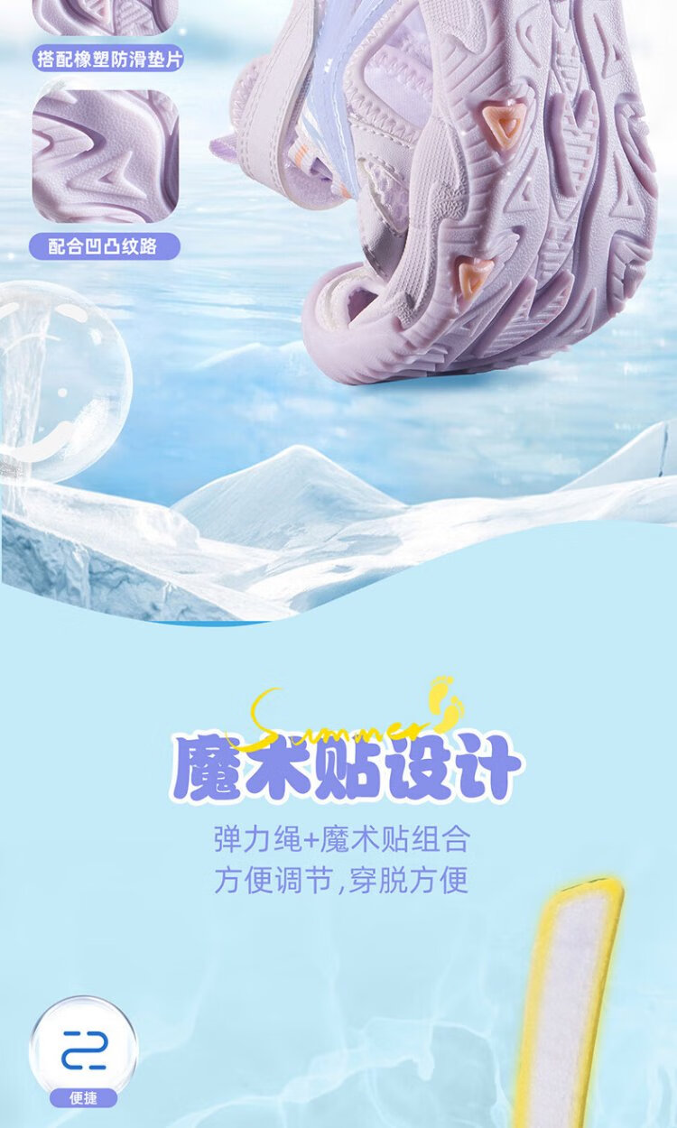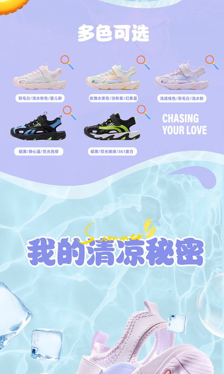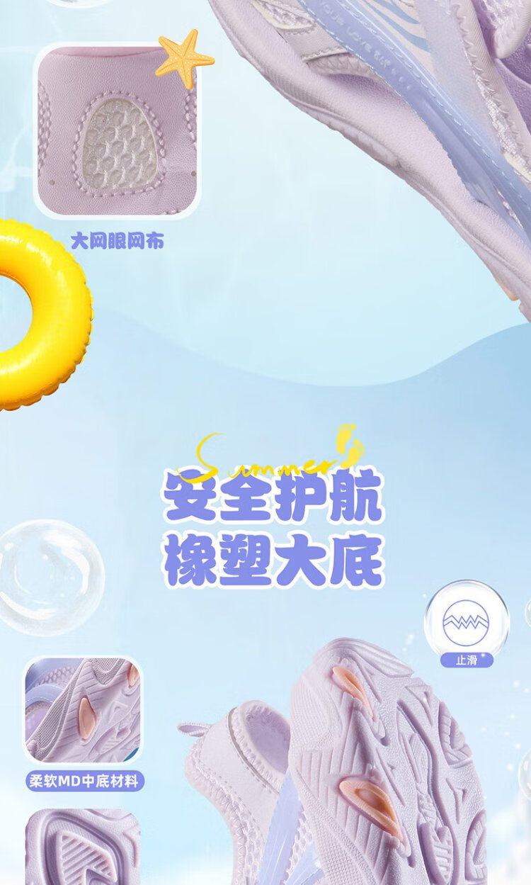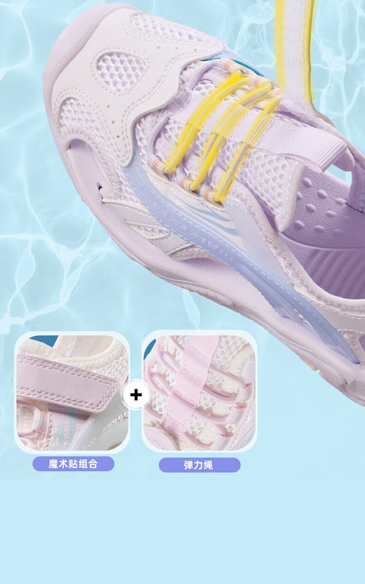 361 Children's Shoes Children's Sandals 25 Summer Breathable Cushioning Toe Guard Beach Sandals for Boys and Girls Purple 34