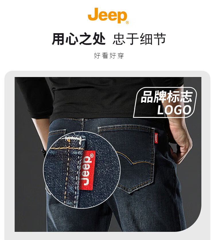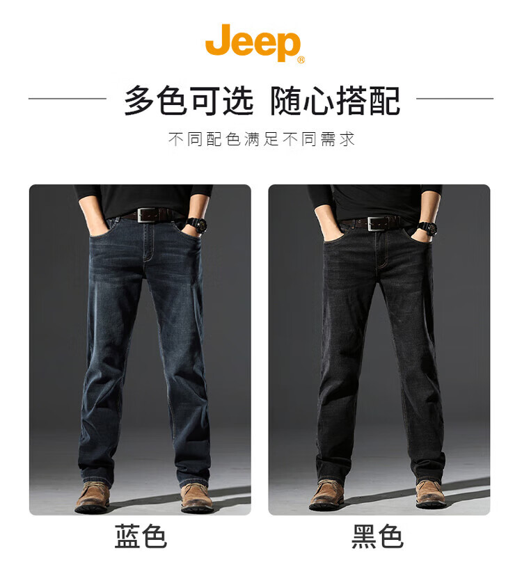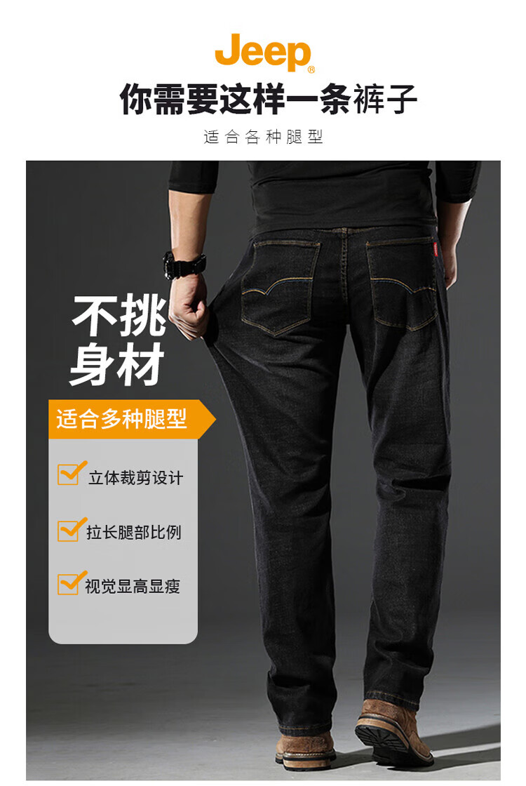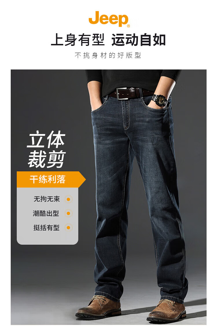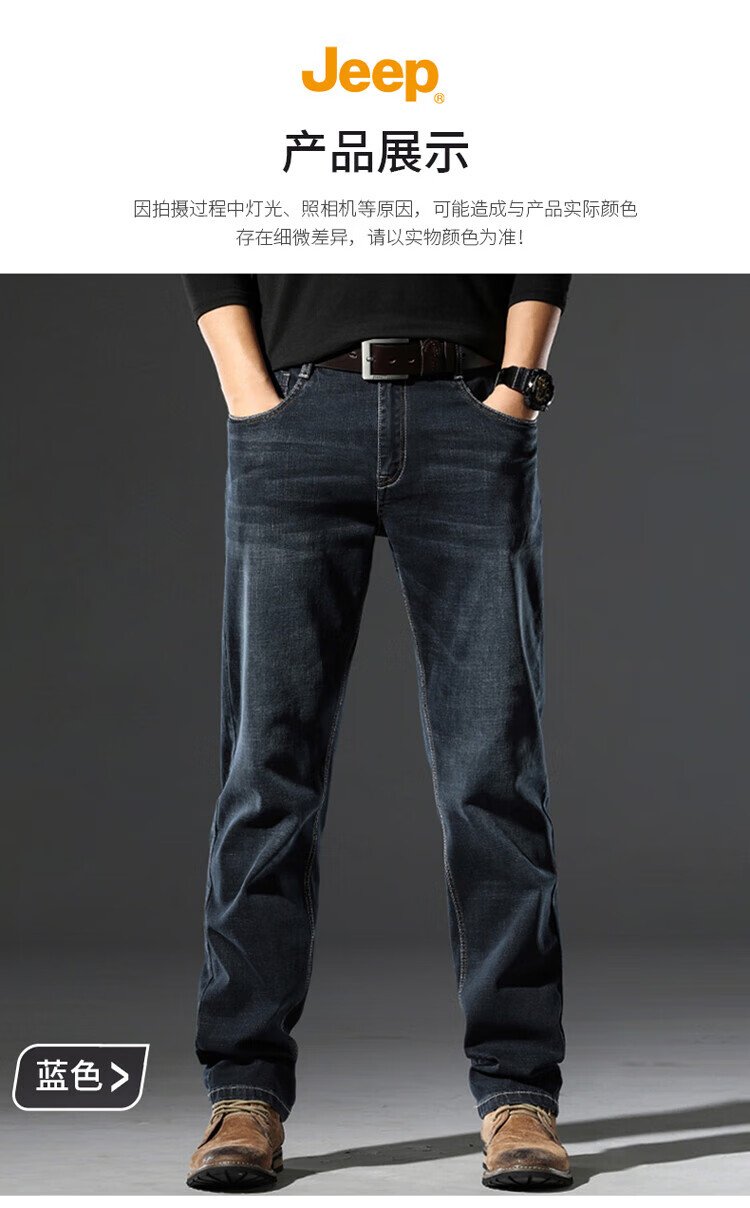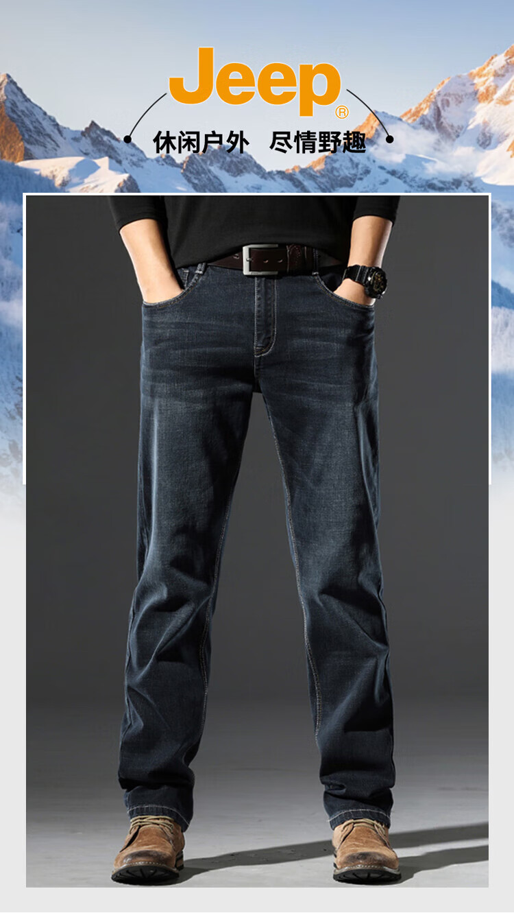 JEEP Jeep Jeans Men's Autumn and Winter Trendy Loose Pants Men's Casual Straight Men's Trousers Blue 34