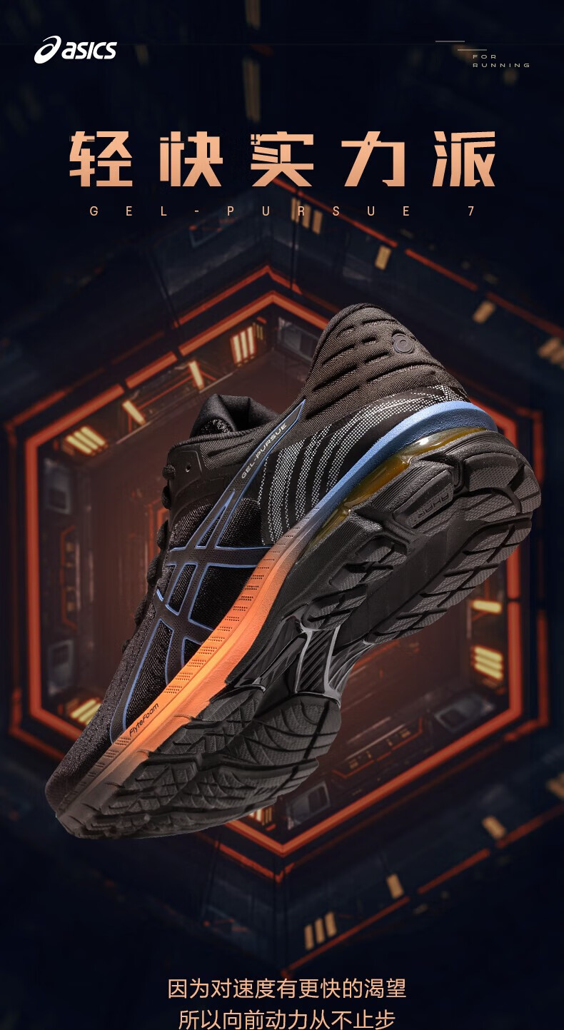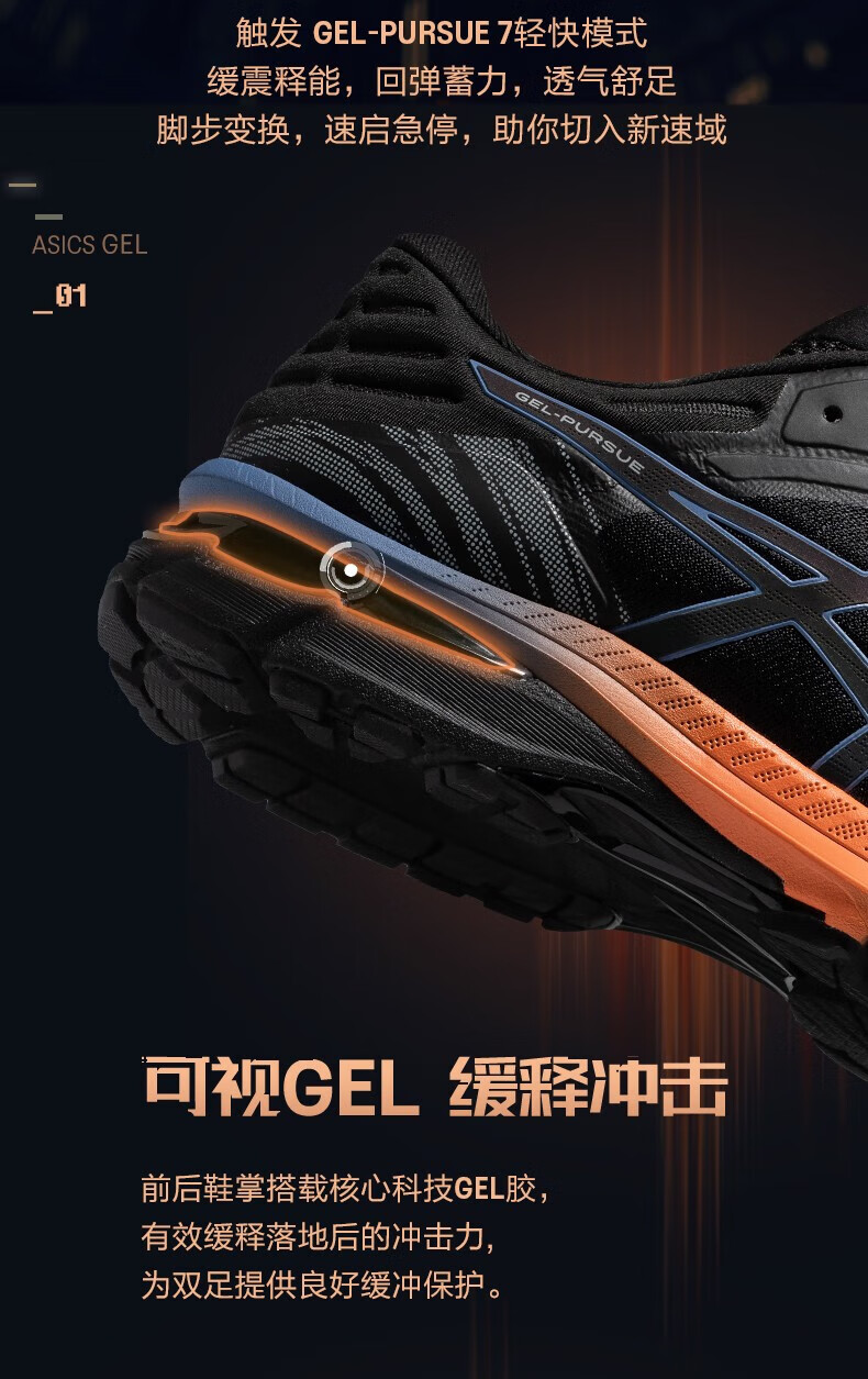 ASICS men's cushioned and breathable running shoes GEL-PURSUE 7 black 42.5