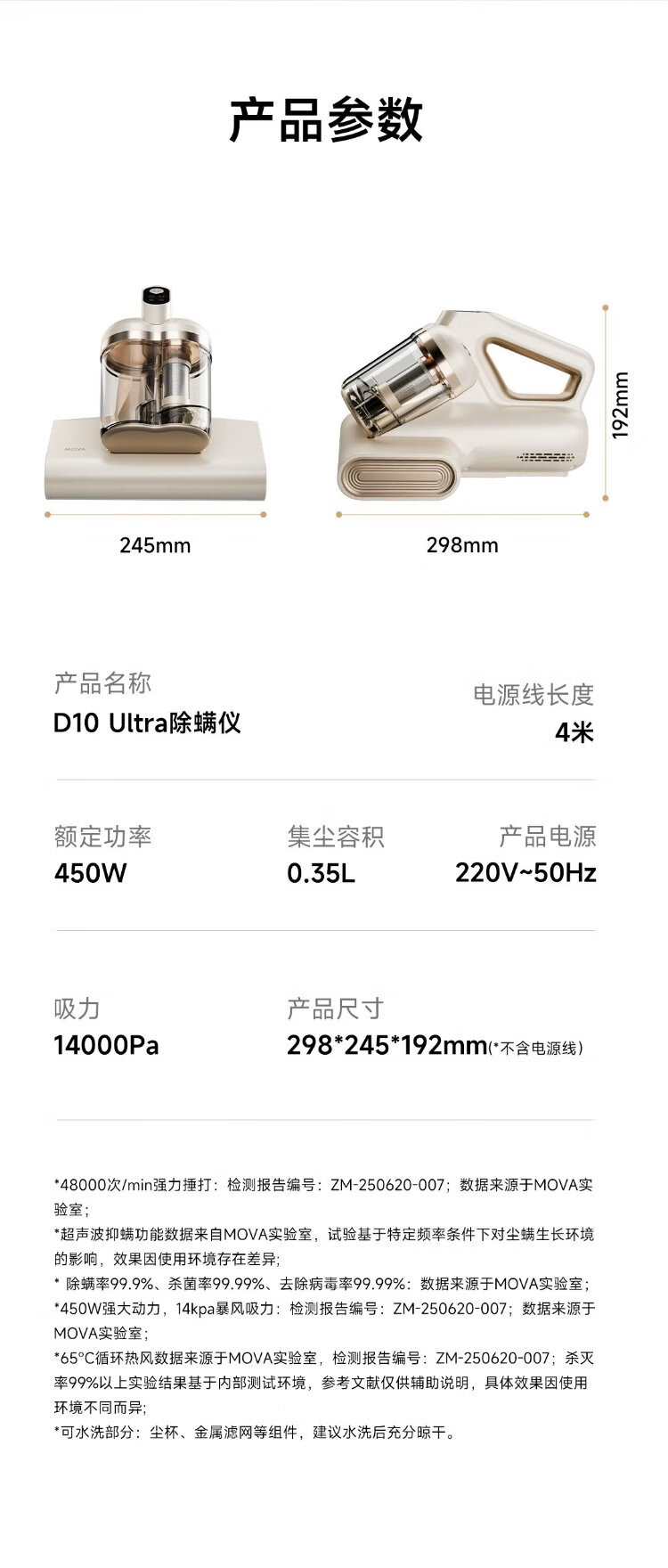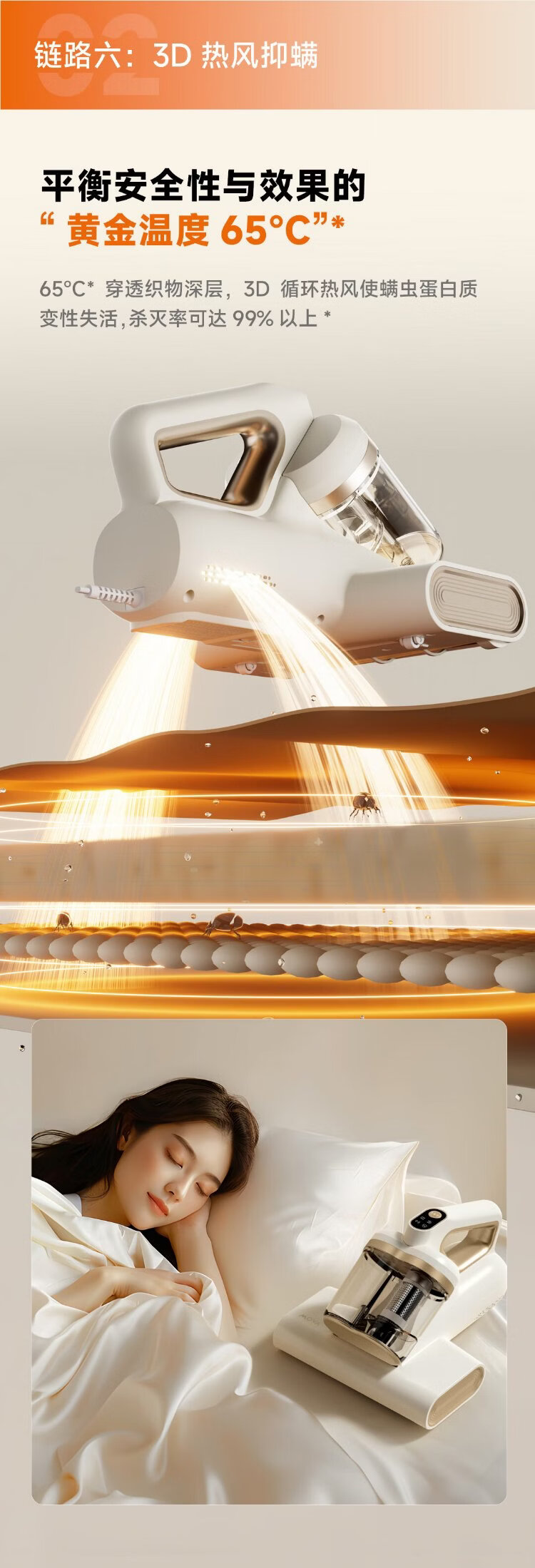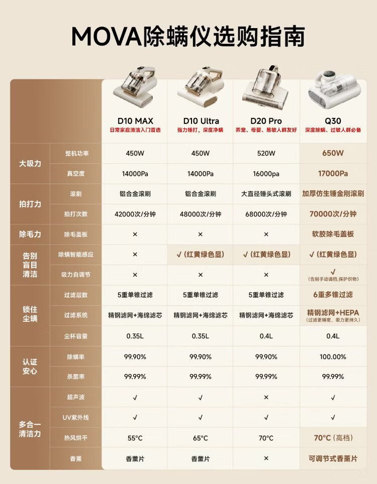 Mova Spring Festival Gala & Song Weilong Same Style Mite Remover D10 Ultra Powerful Slapping Double Cup Dust Mite Separation 65 Hot Air Drying Home Bed Vacuuming and Pet Care Magical Device