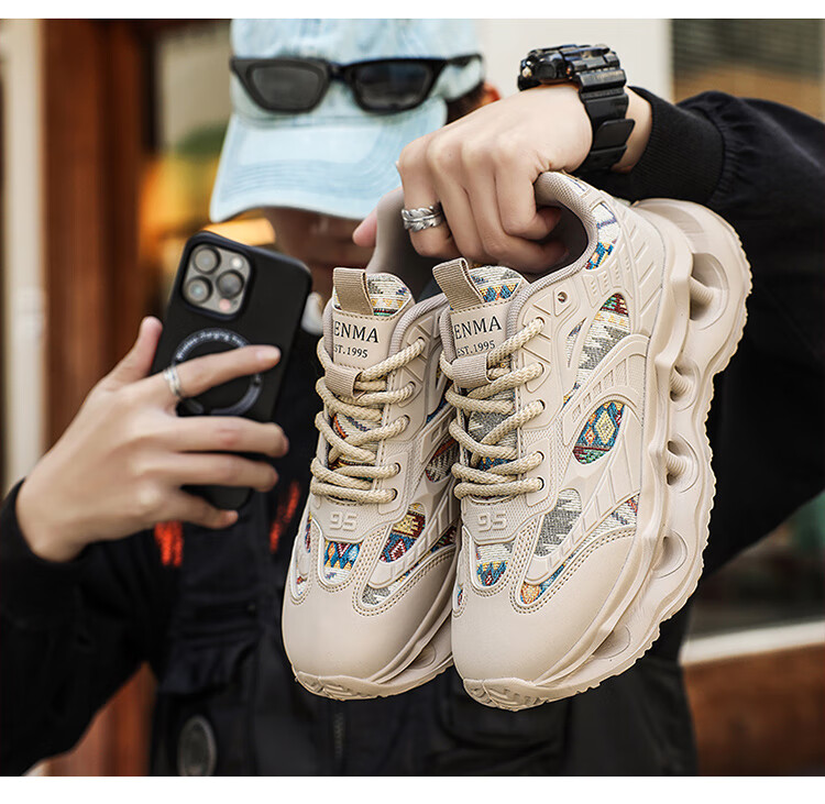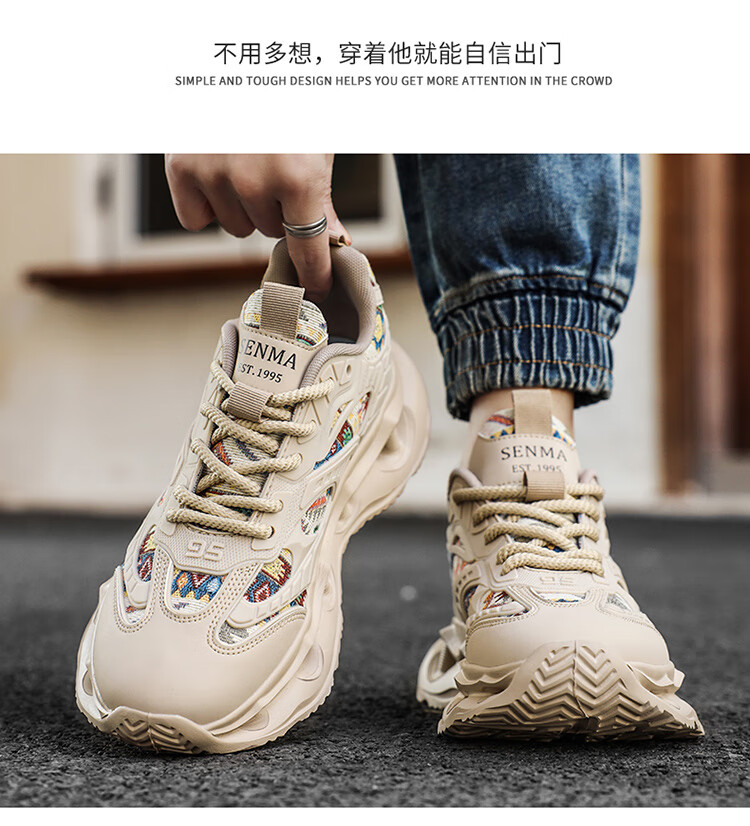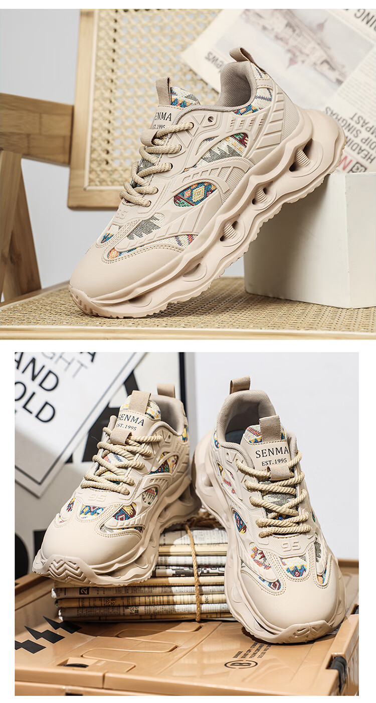 Semir men's shoes thick sole heightening dad shoes trendy and versatile men's casual sports running shoes for men apricot 41