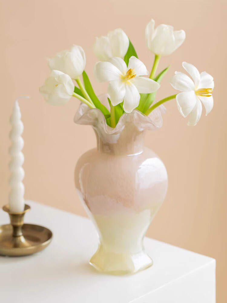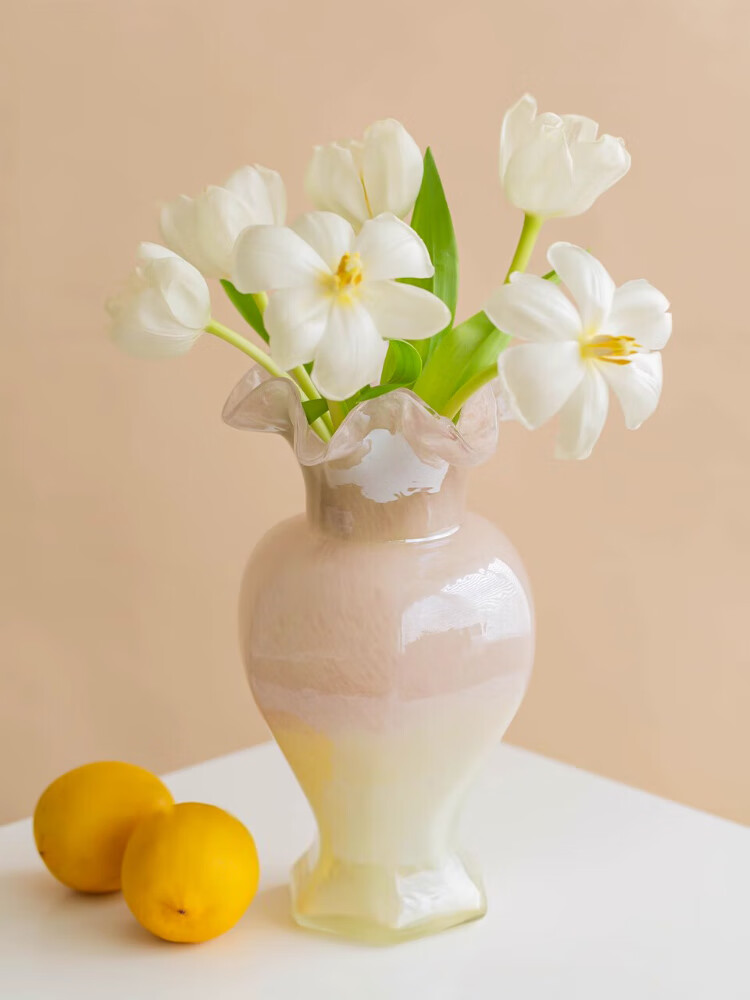 Fan Yejia's light luxury two-color glass vase, high-end decoration, living room flower arrangement ins Feng Shui flower raising art decoration decoration