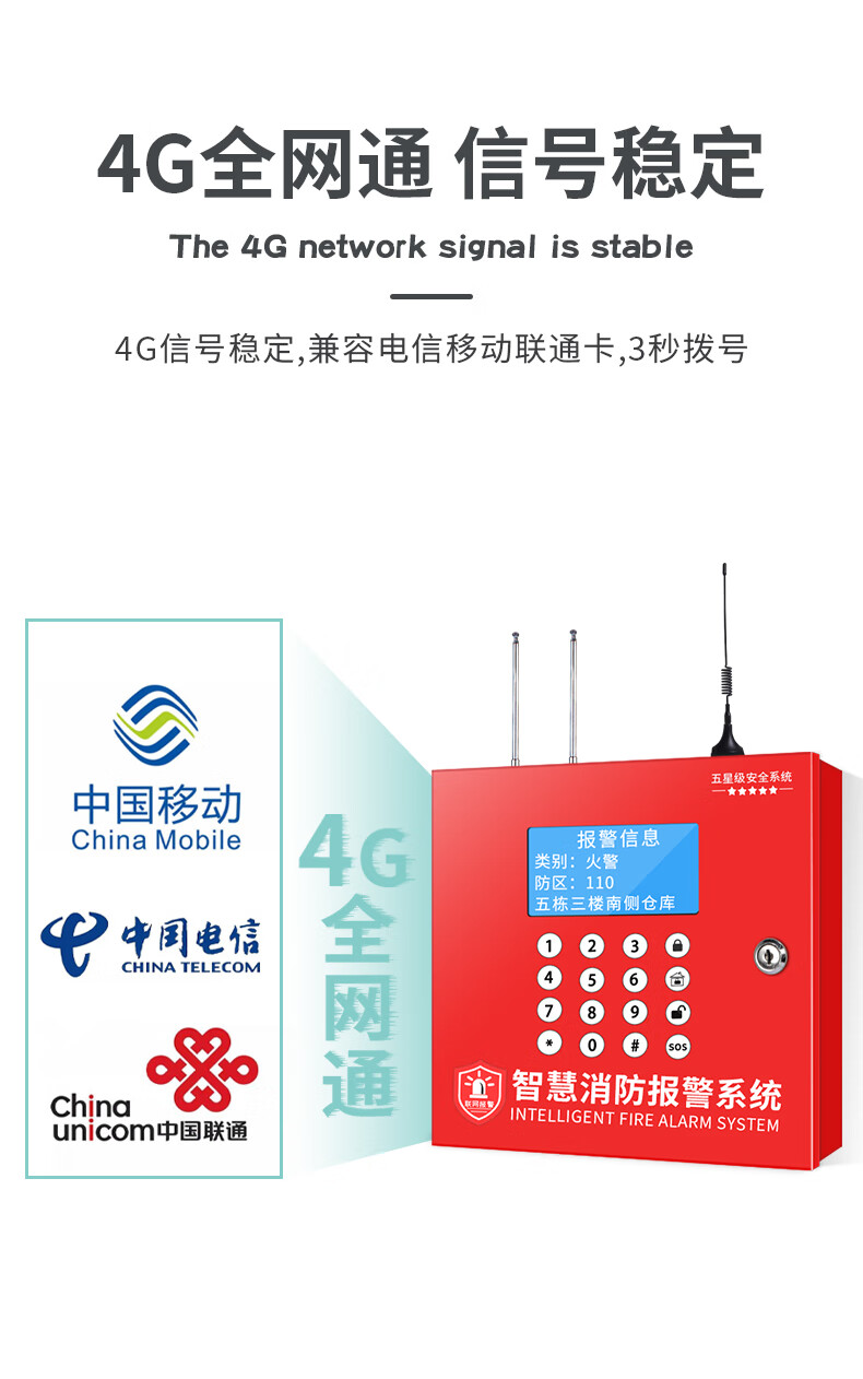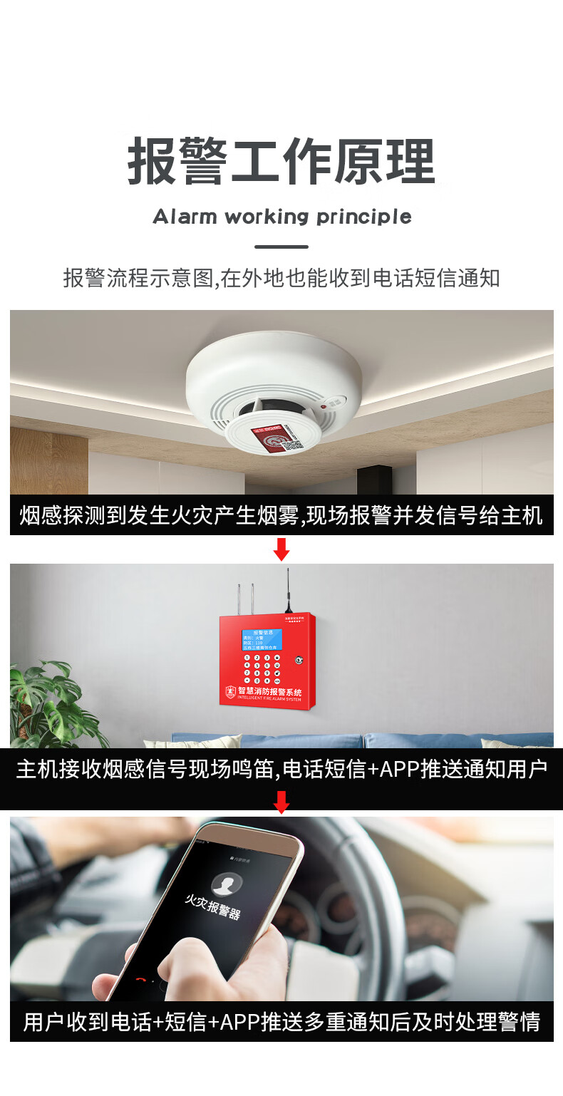 Ruizhi 4G IoT smoke sensor alarm system factory warehouse commercial wireless network alarm fire smoke alarm wireless fire alarm system 1 host 5 smoke sensor 504A