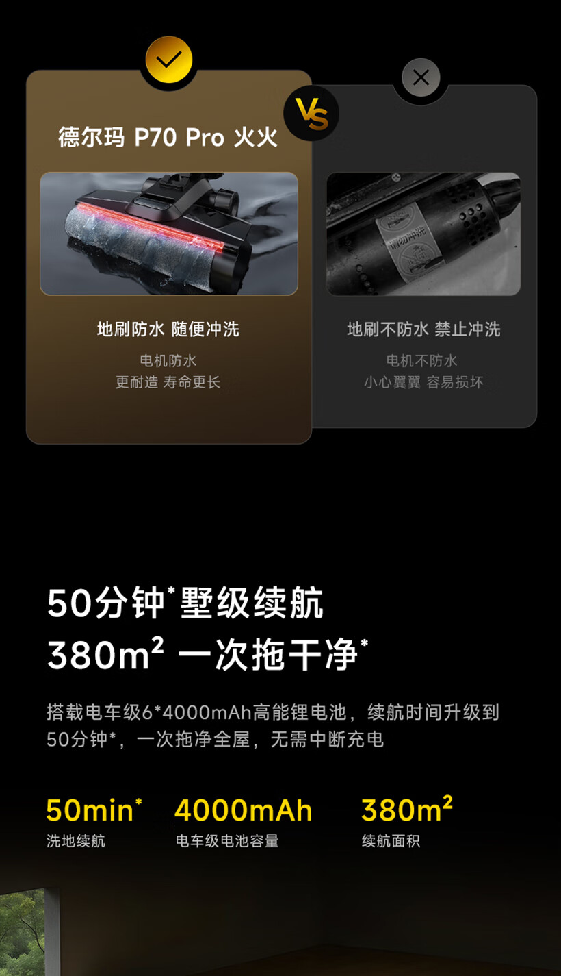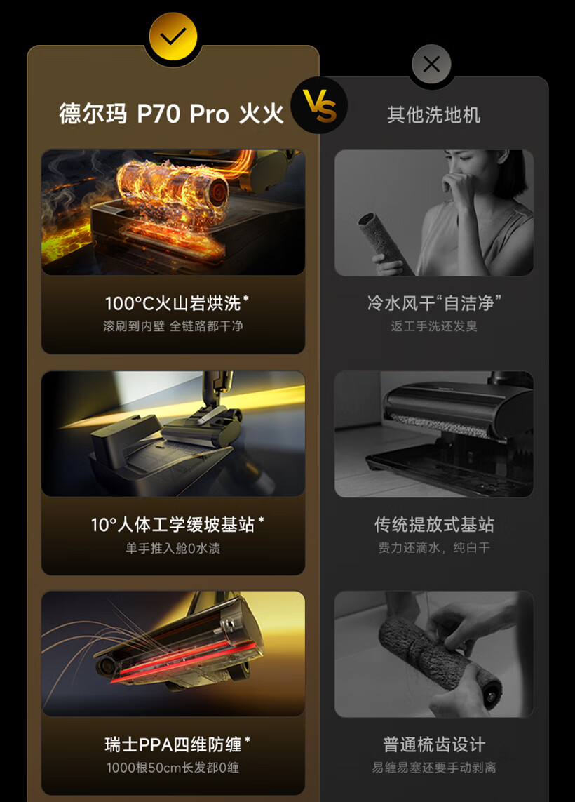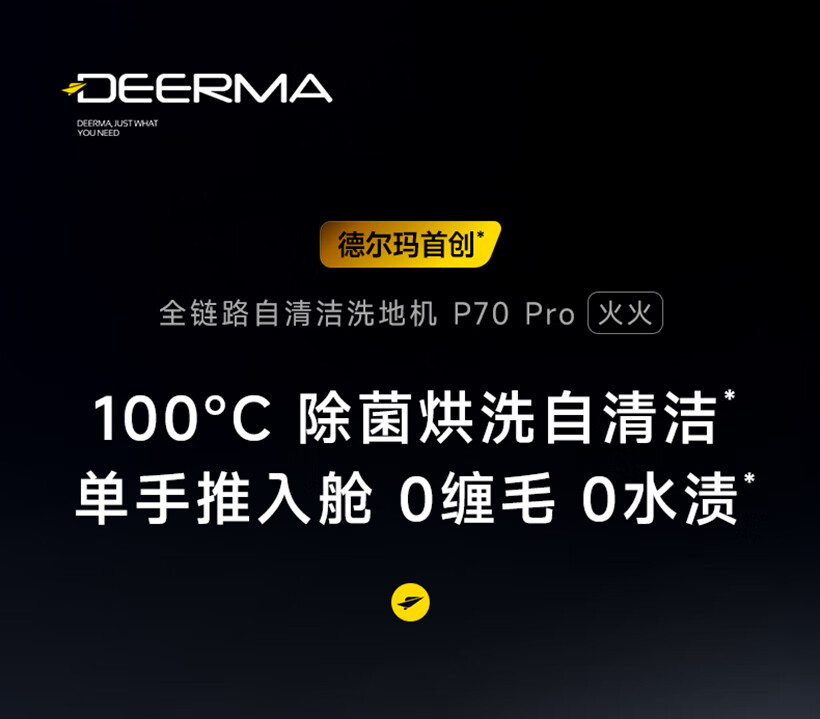 Deerma (Deerma) low price floor scrubber P70pro Huohuo 0 lint 70 hot water 100 drying 180 lying flat push-in integrated washing, mopping and suction anti-tangle