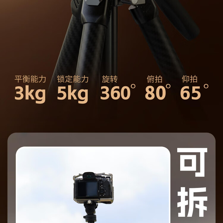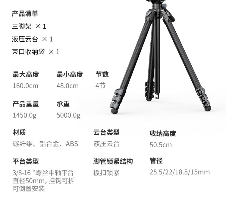 SmallRig Carbon Spirit Carbon Fiber Tripod SLR Micro Single Camera Photography Tripod Portable Lightweight Hydraulic Cloud Head Camera Bracket