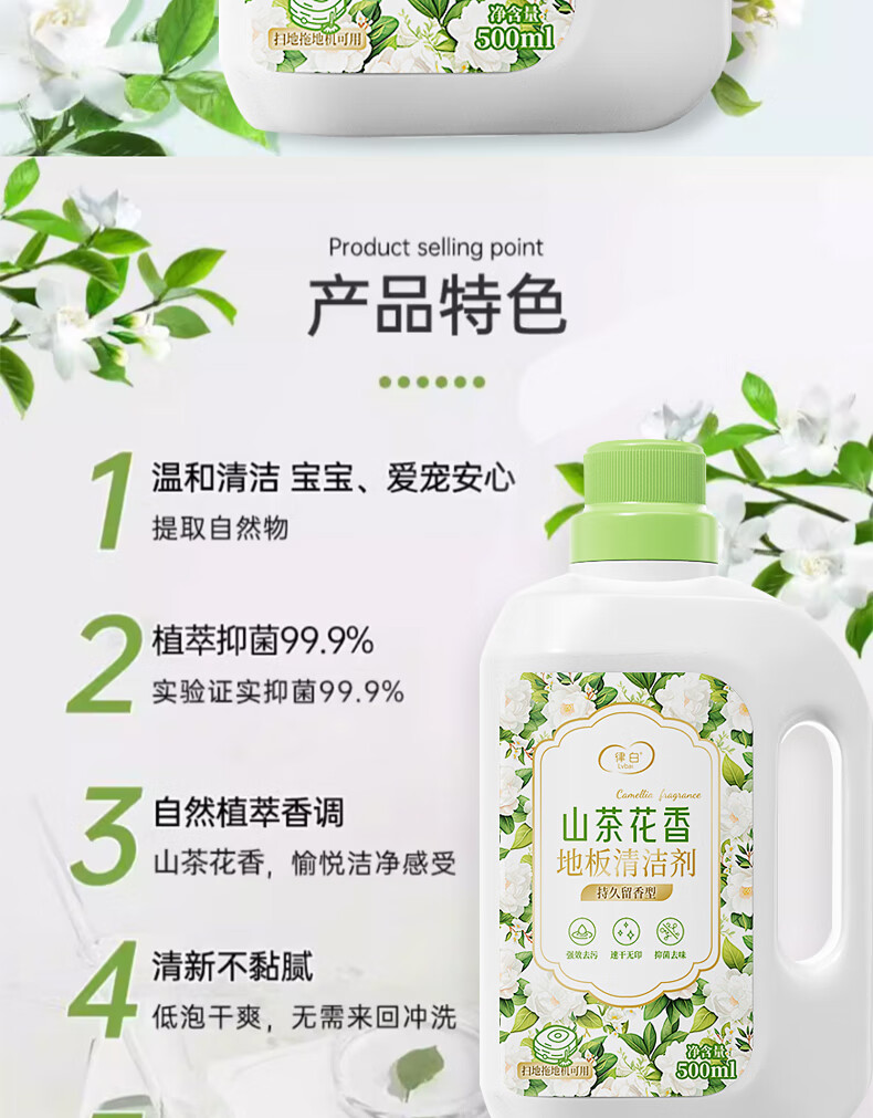 Lvbai floor cleaner camellia fragrance 3 bottles mopping tile sweeping robot floor washing machine decontamination and antibacterial