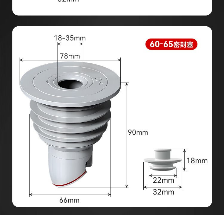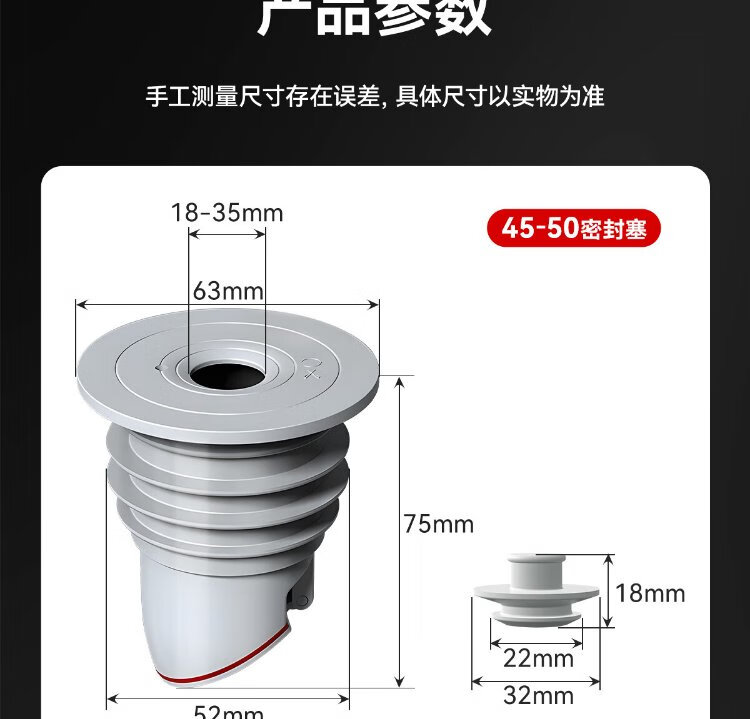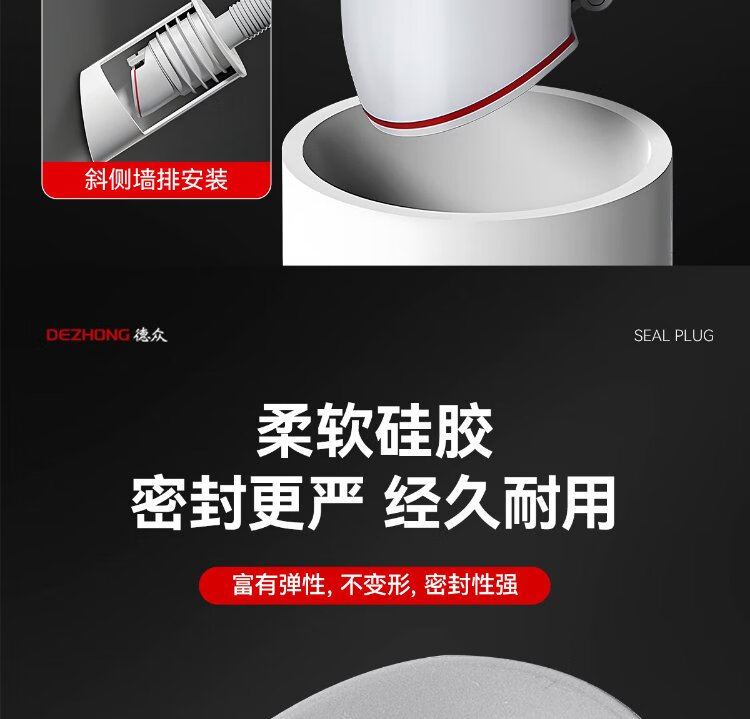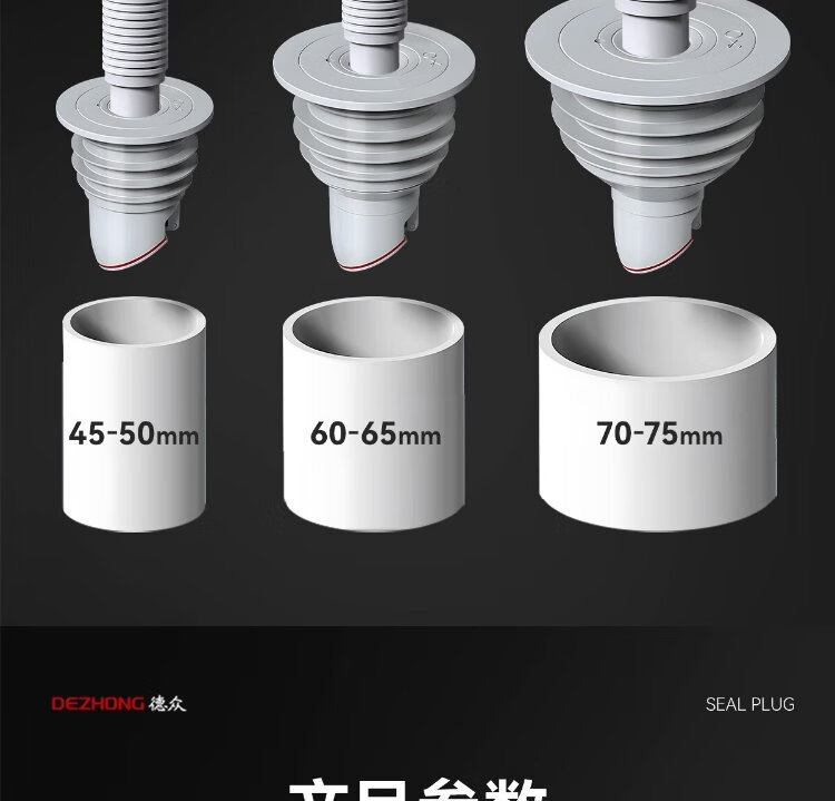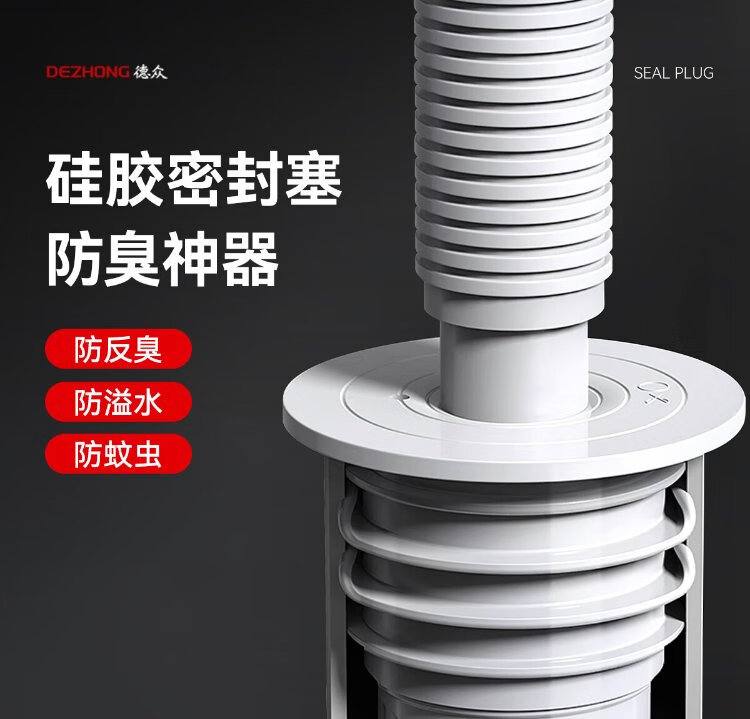 Dezhong sewer anti-return odor artifact sewer pipe sealing plug anti-overflow silicone sealing cover P50 gray