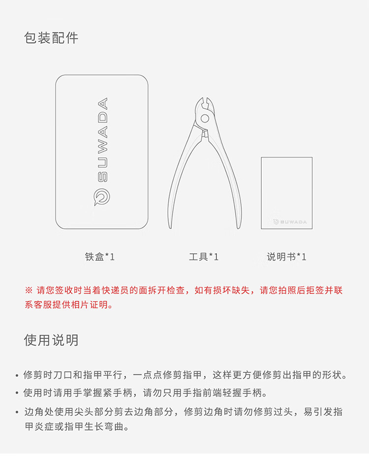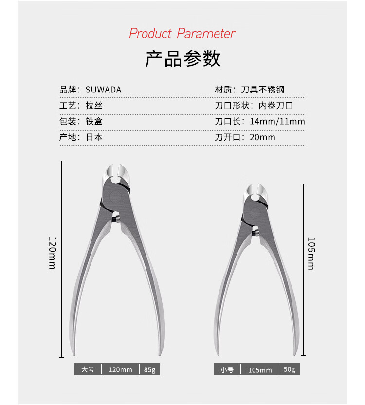 Suwada Made in Japan, original imported manual nail scissors, nail clippers, sharp, durable, safety manicure knife, small size