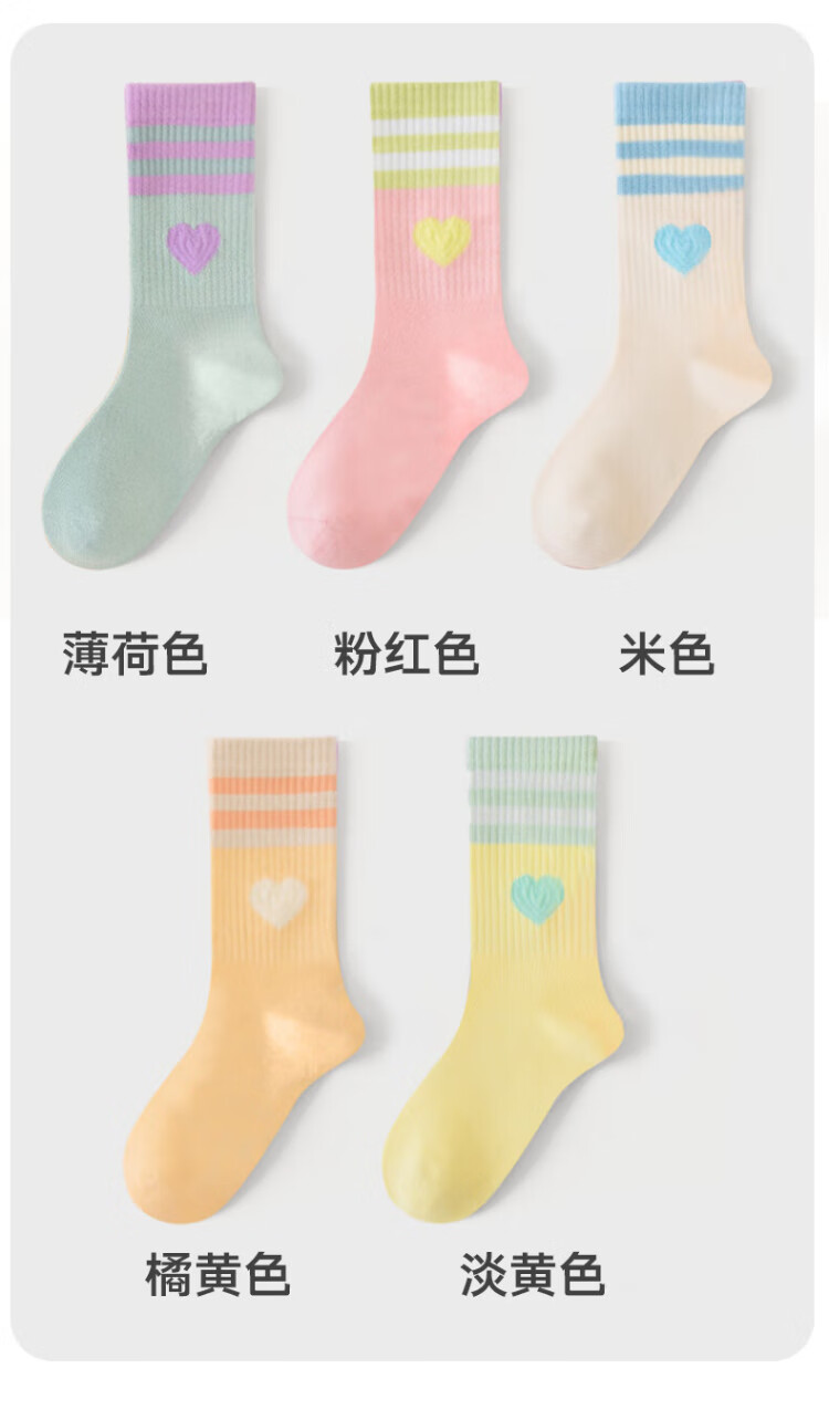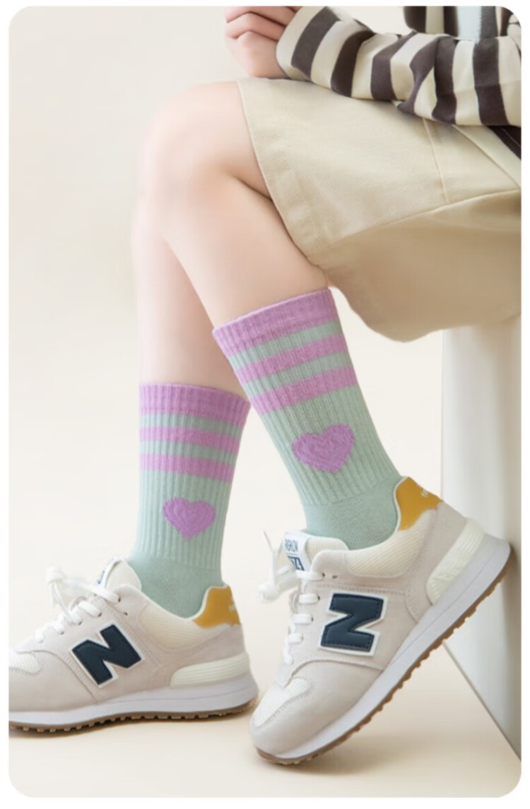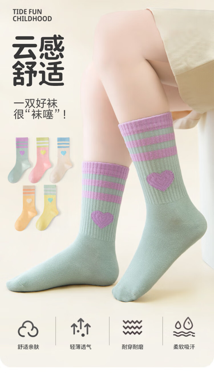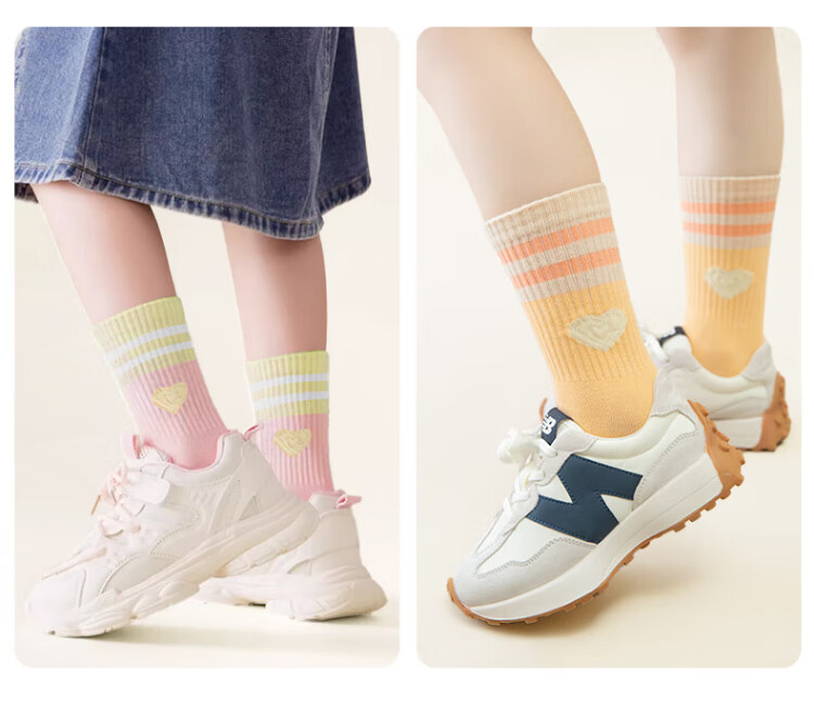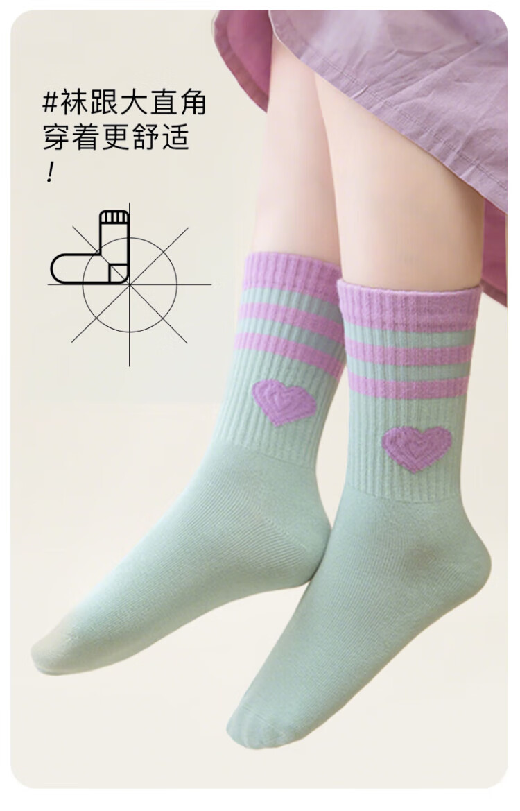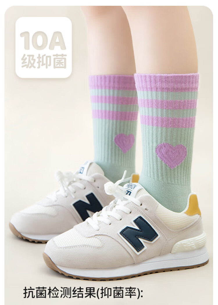 Cotton Xiaonian girls' socks, autumn and winter mid-calf socks, 100% cotton, 10A antibacterial and deodorant, 6 pairs for babies, middle-aged and older children