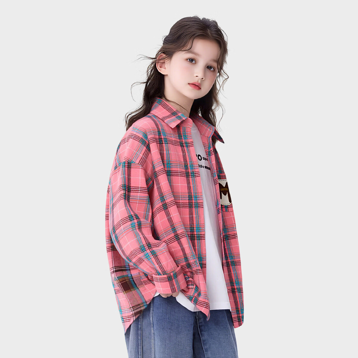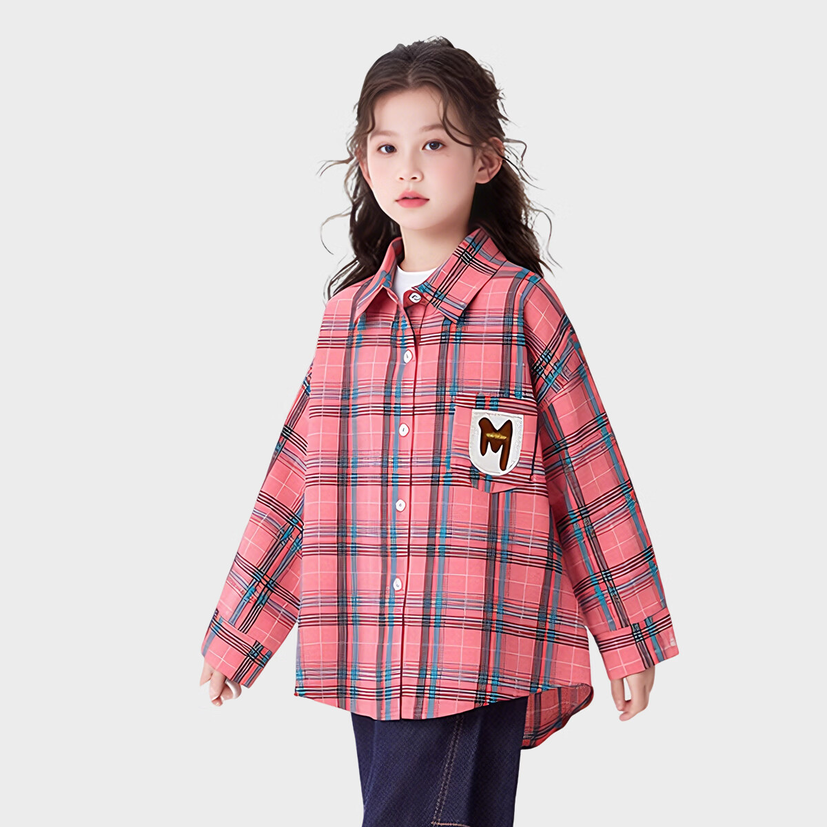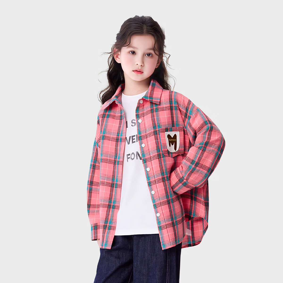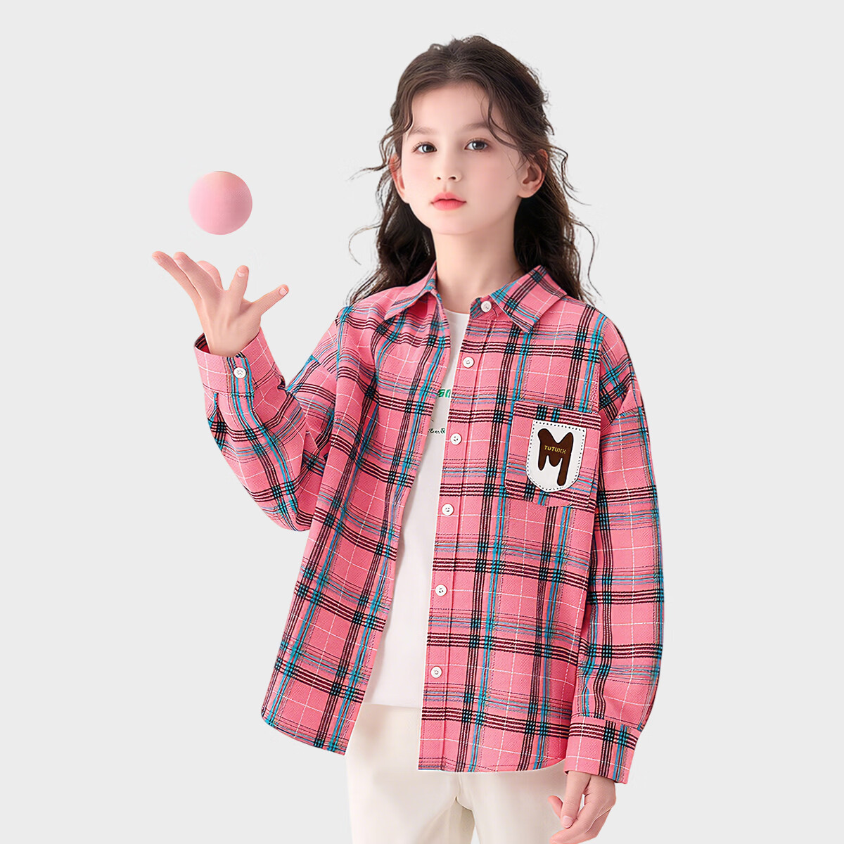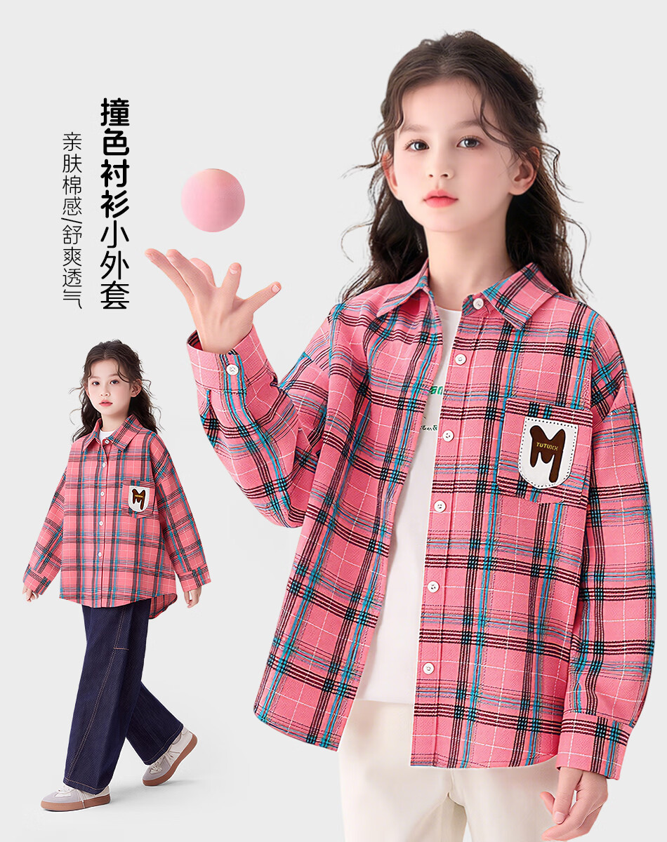 Tutu Elephant Girls' Shirt 2026 Spring New Baby Retro Plaid Shirt Children's Brushed Jacket Pink 140