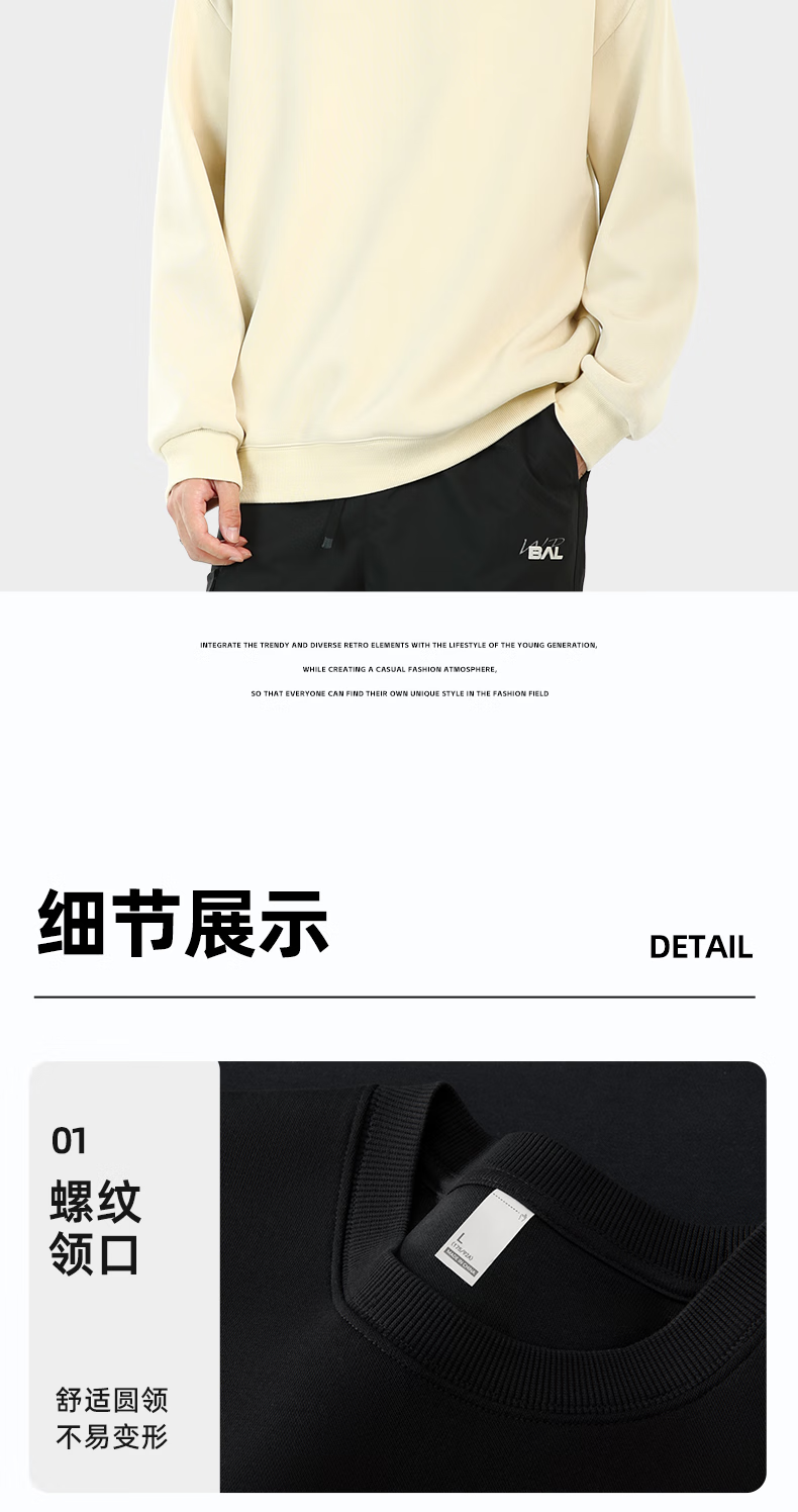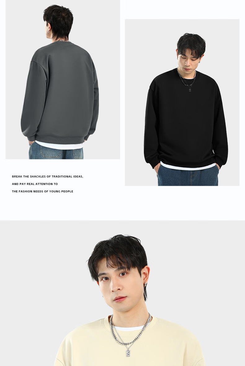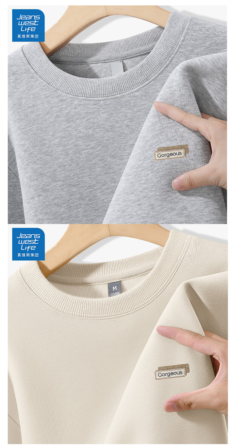 JEANSWEST LIFE Jeans West sweatshirt men's 2025 new American heavyweight loose men's casual tops hoodless authentic long-sleeved men's style