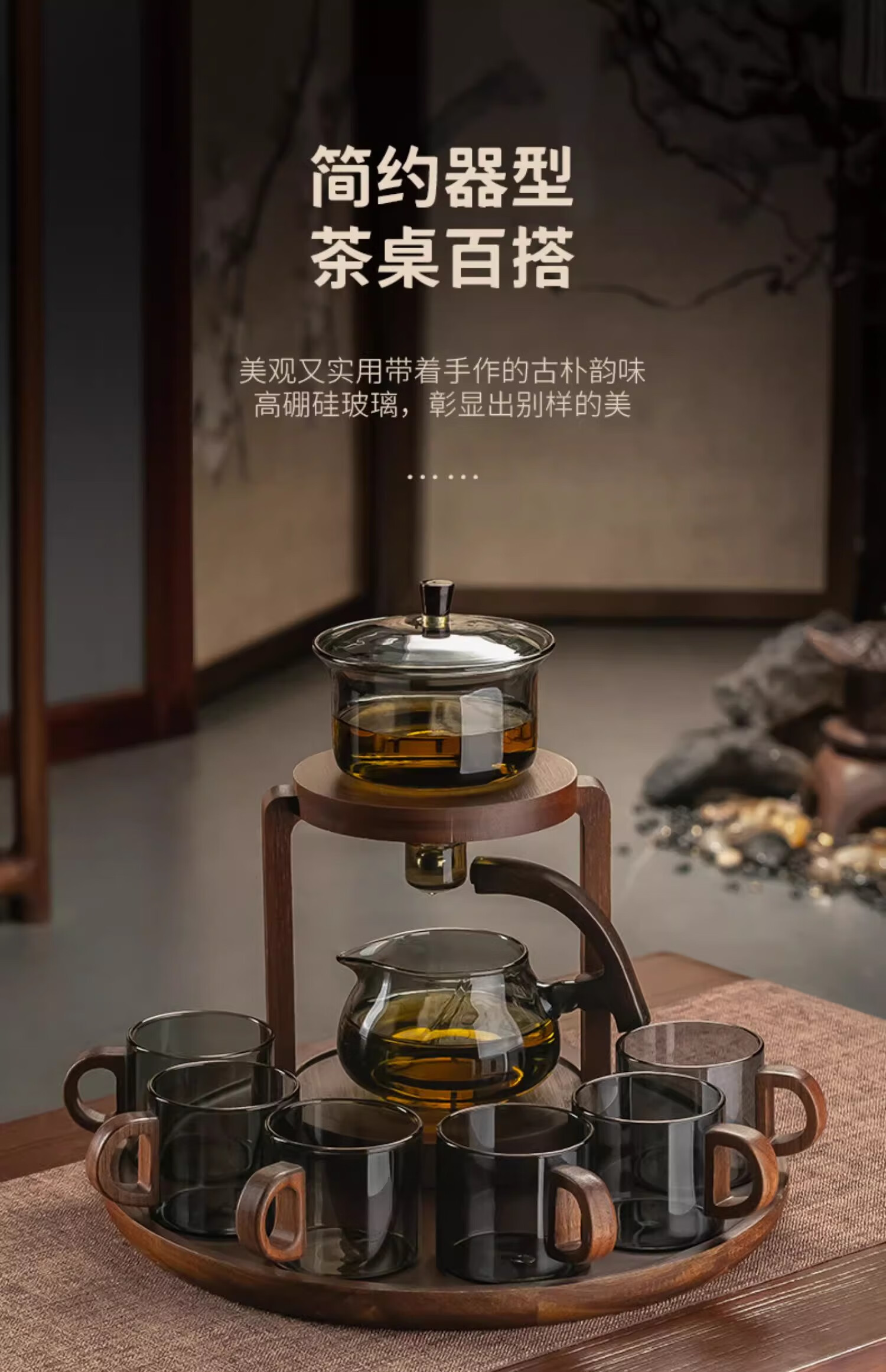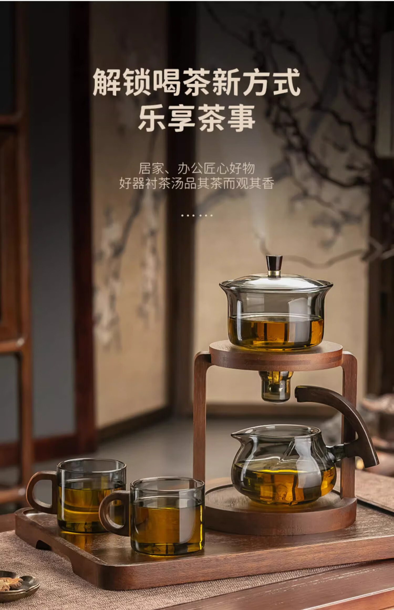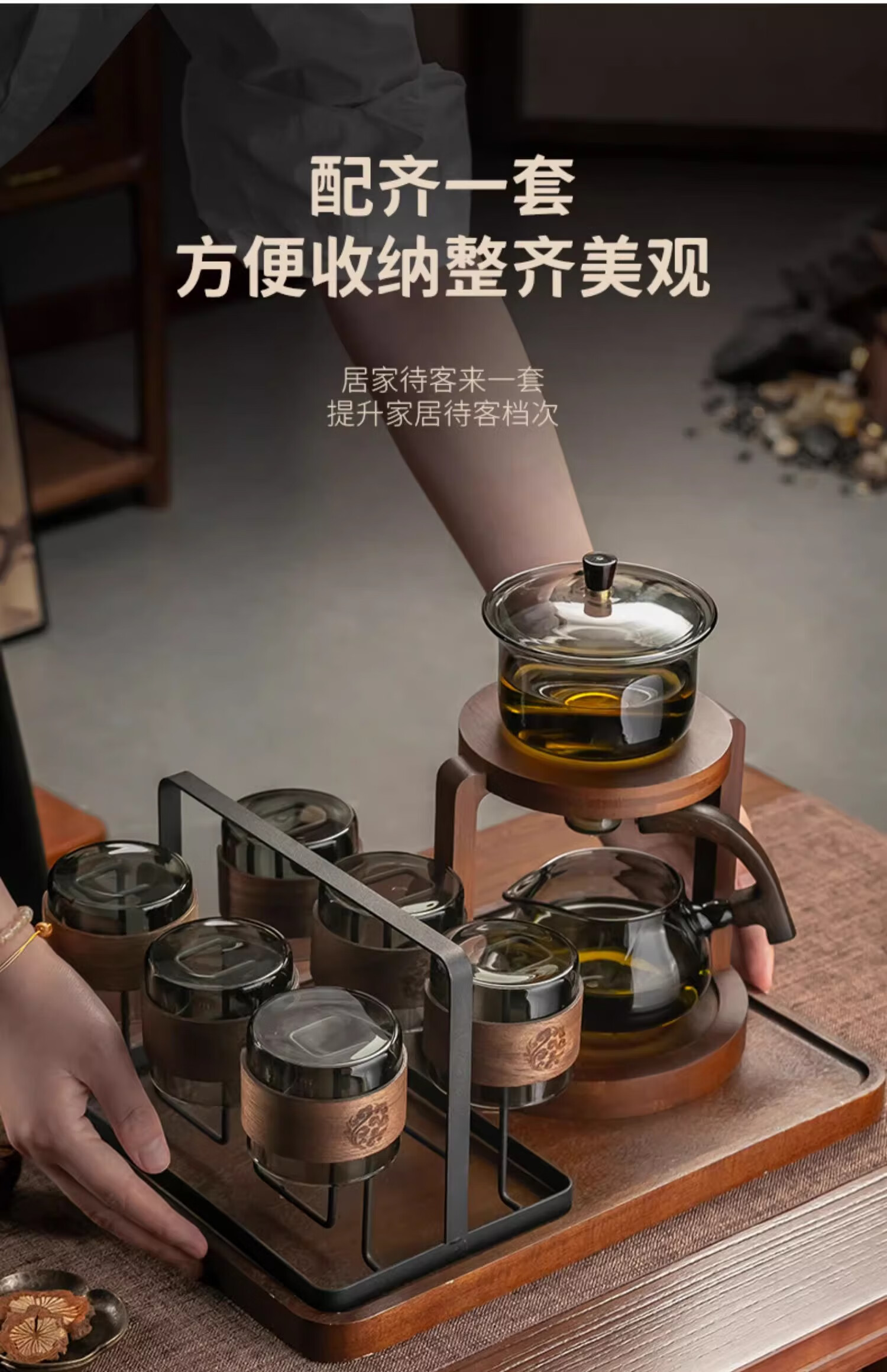 Half-fall glass automatic tea set set for home light luxury high-end magnetic teapot tea cup office lazy person tea making artifact