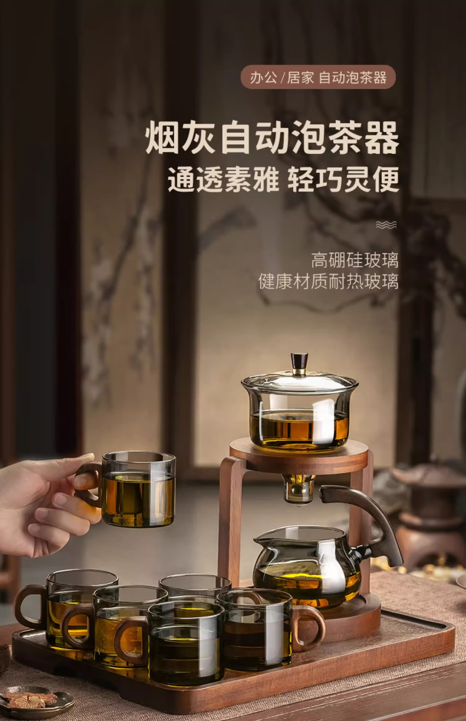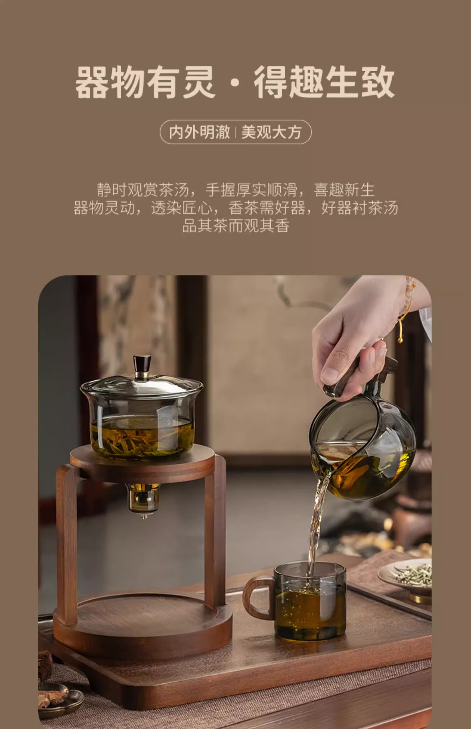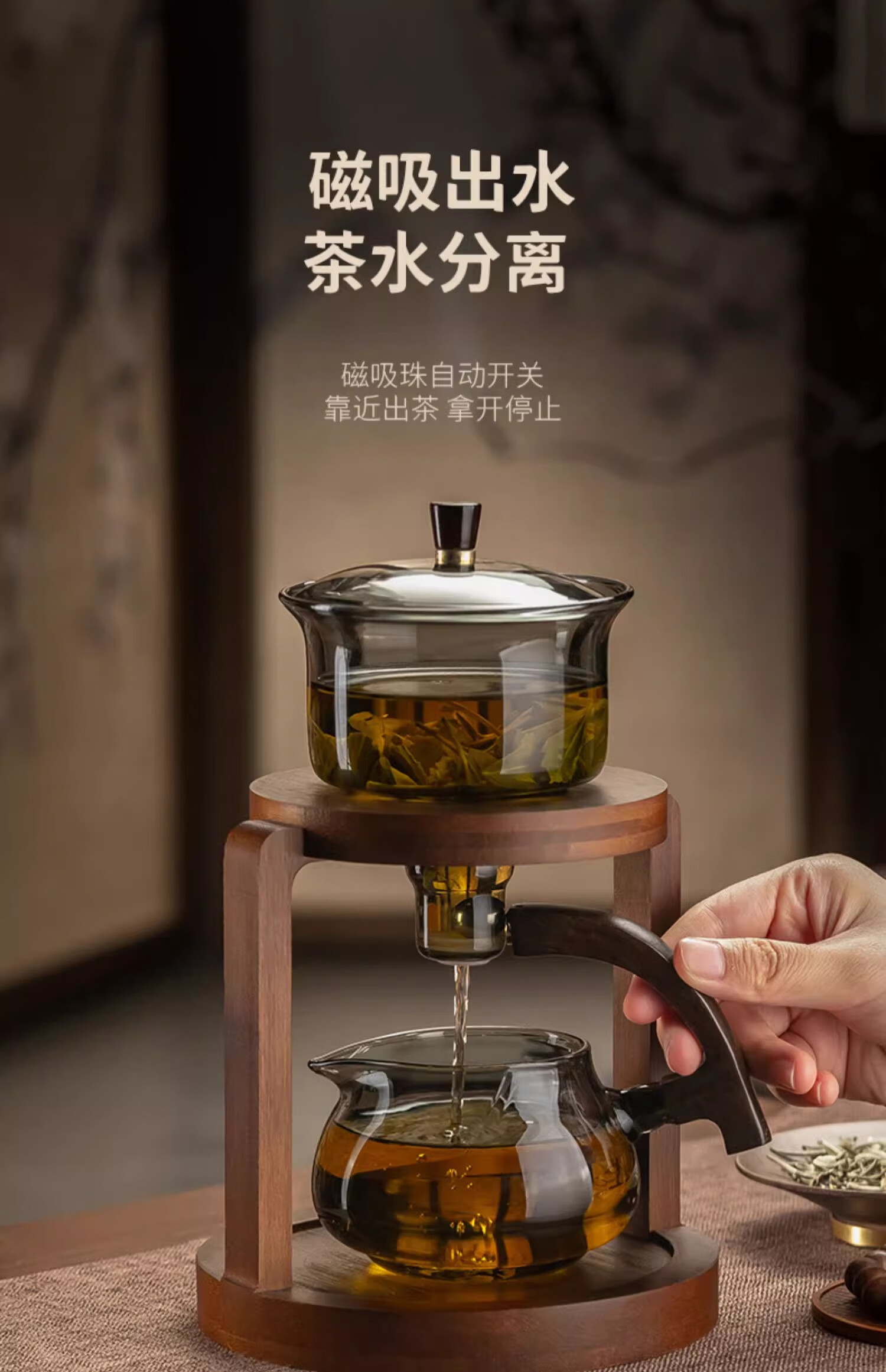 Half-fall glass automatic tea set set for home light luxury high-end magnetic teapot tea cup office lazy person tea making artifact