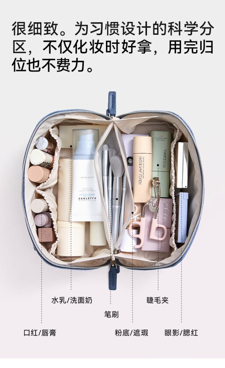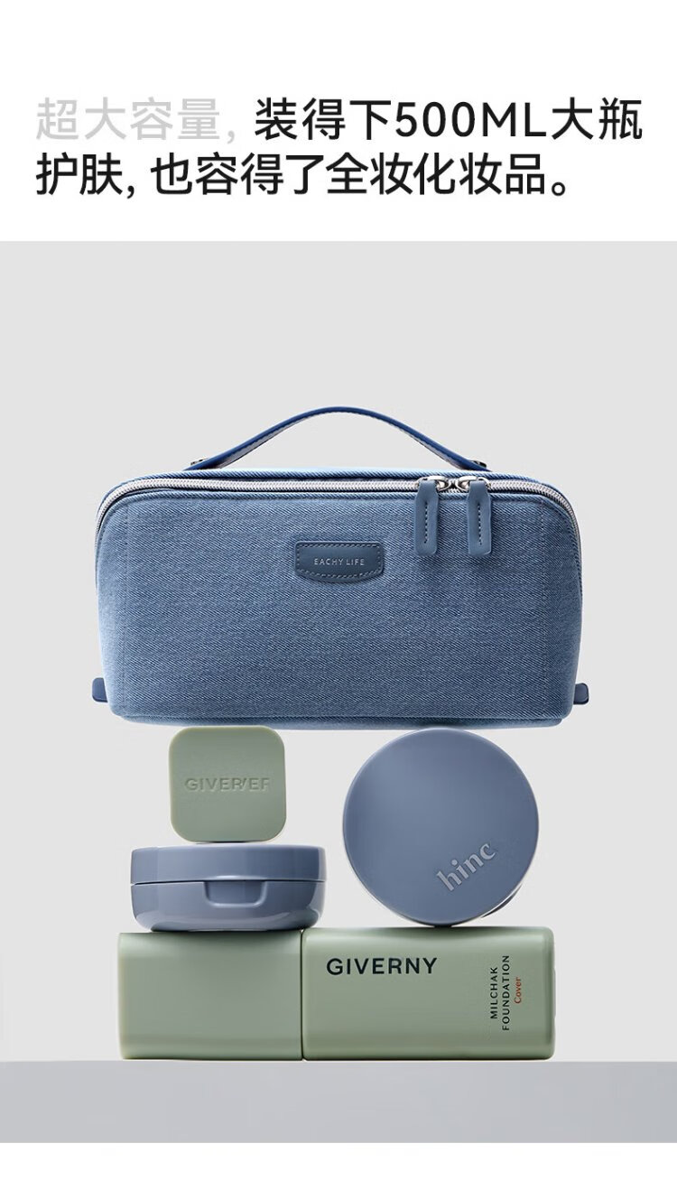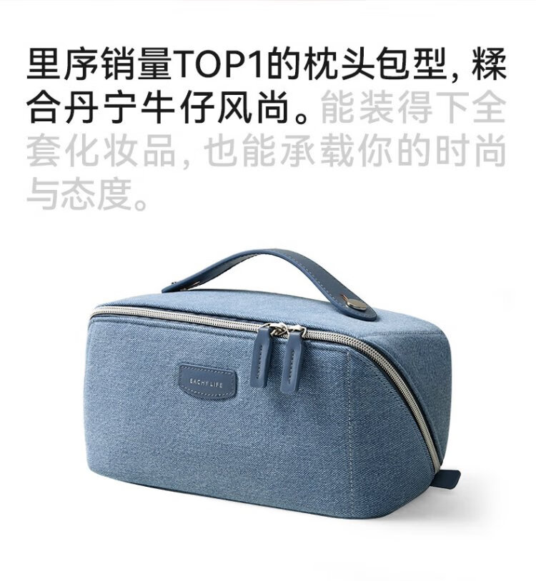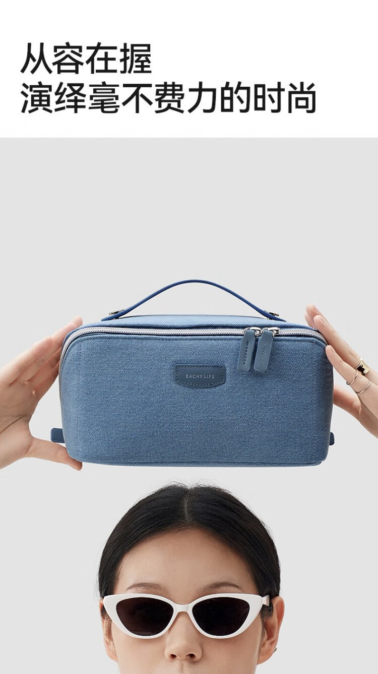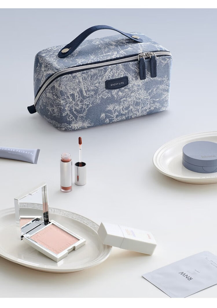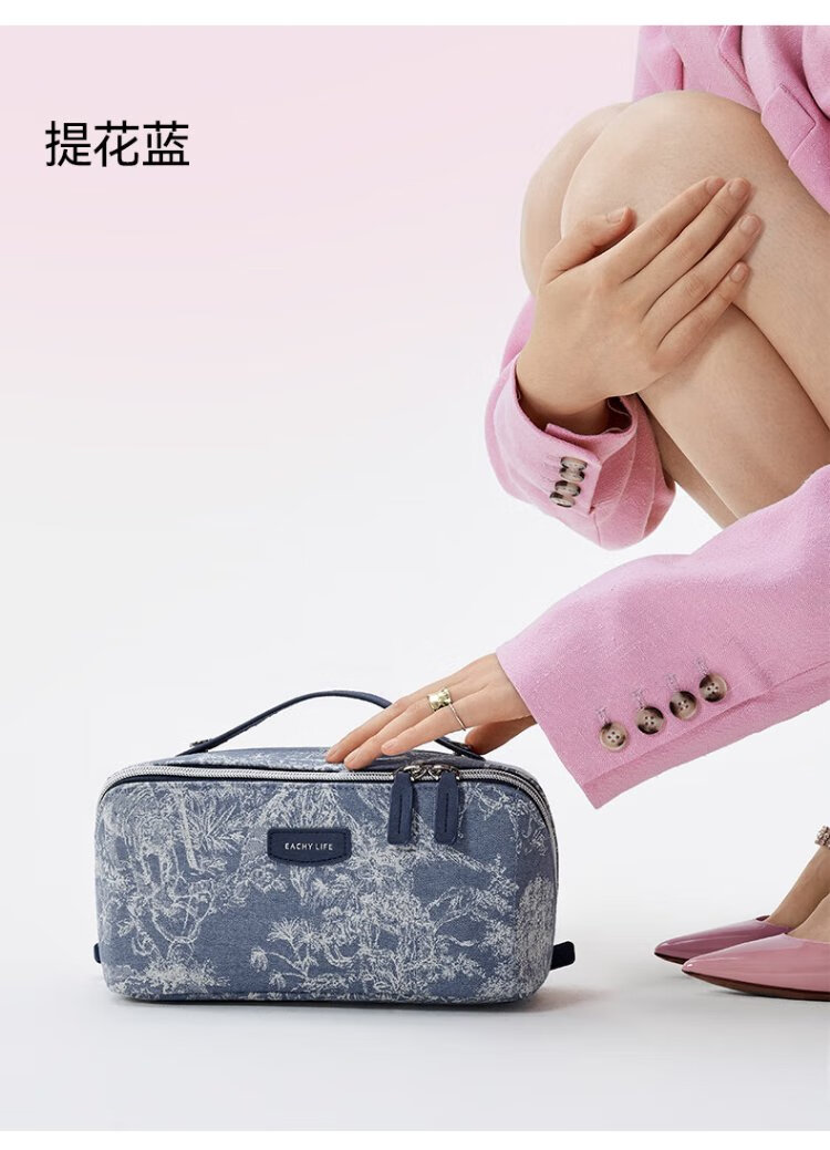 EACHY cosmetic bag, multi-functional, portable, large-capacity travel cosmetics storage bag for women, high-looking toiletry bag, jacquard blue