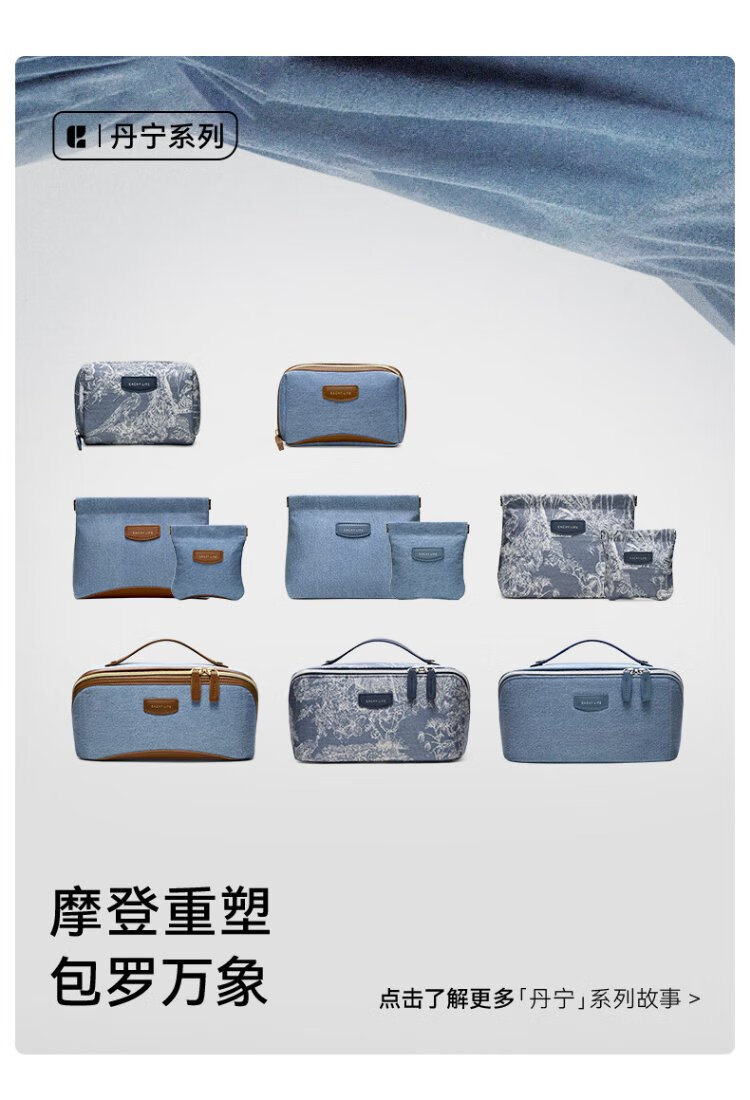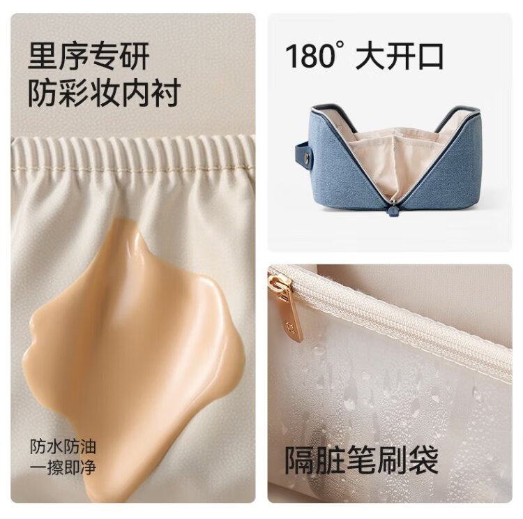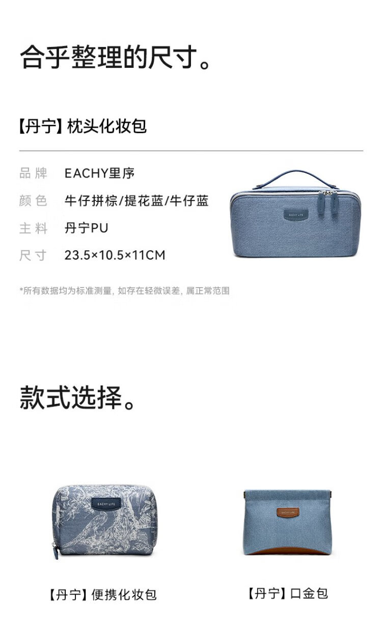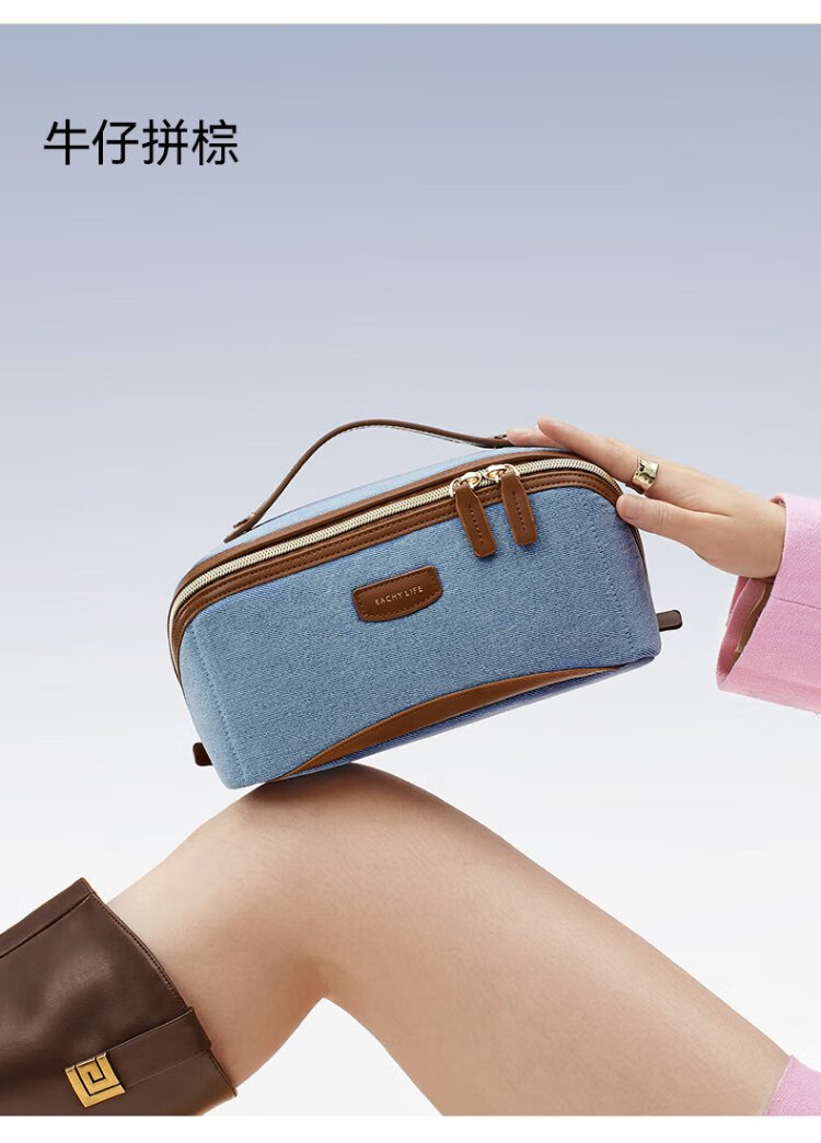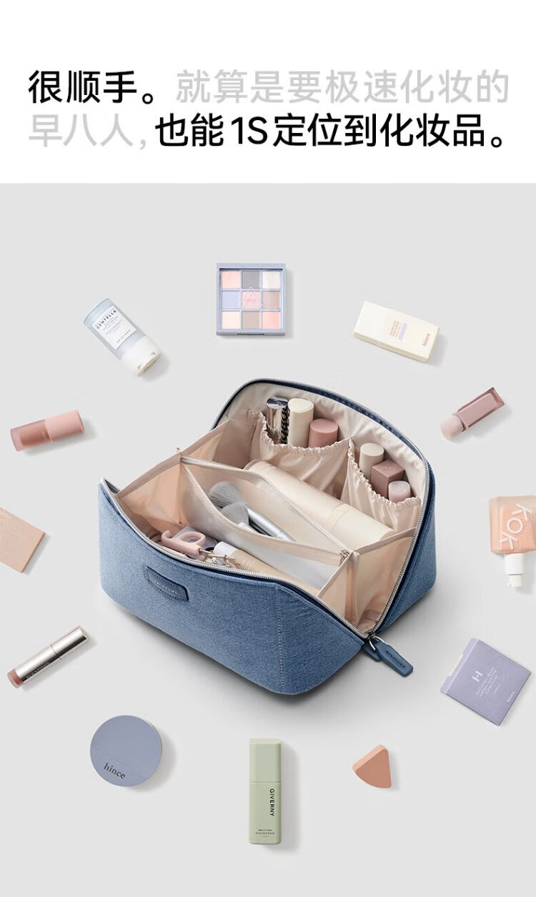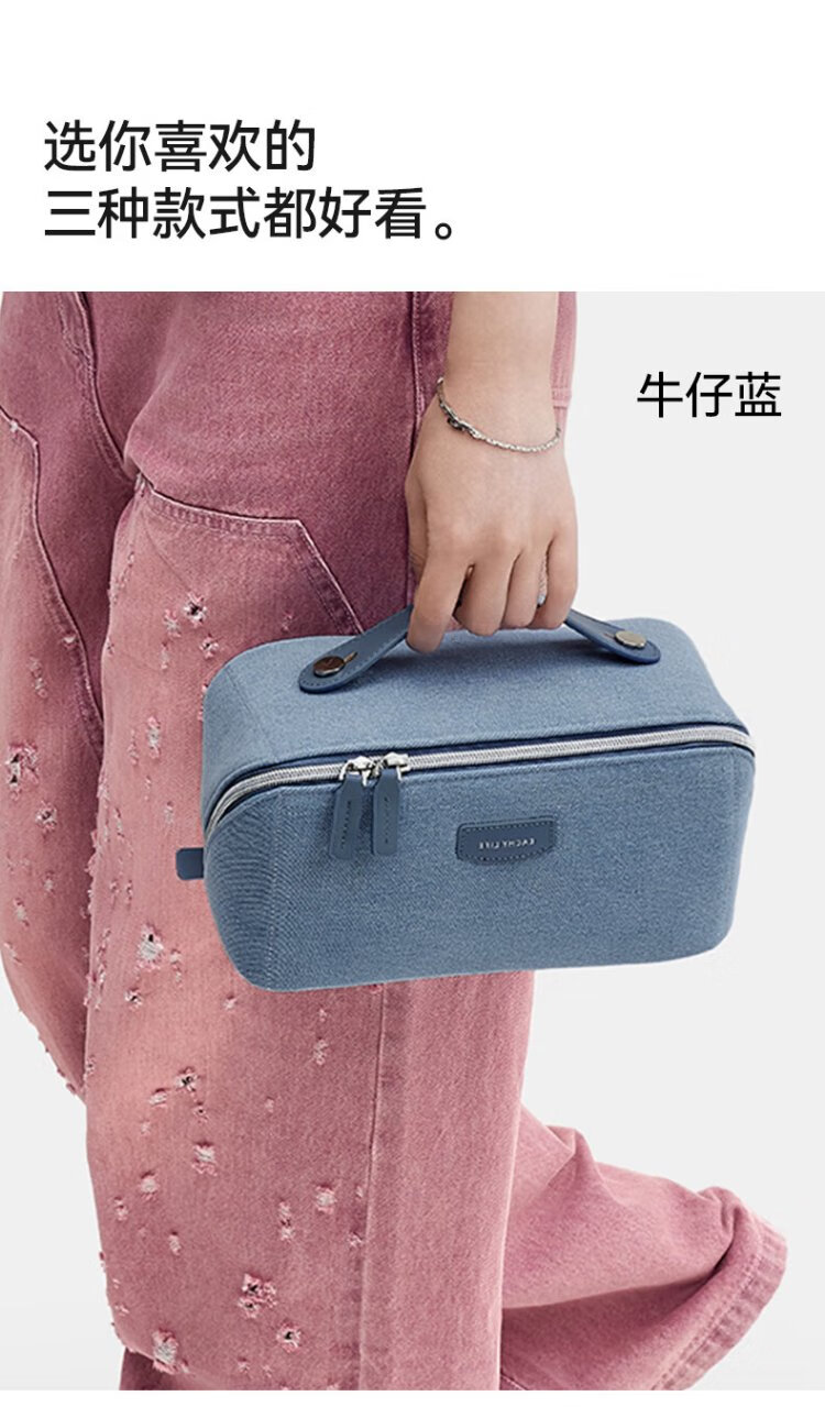 EACHY cosmetic bag, multi-functional, portable, large-capacity travel cosmetics storage bag for women, high-looking toiletry bag, jacquard blue