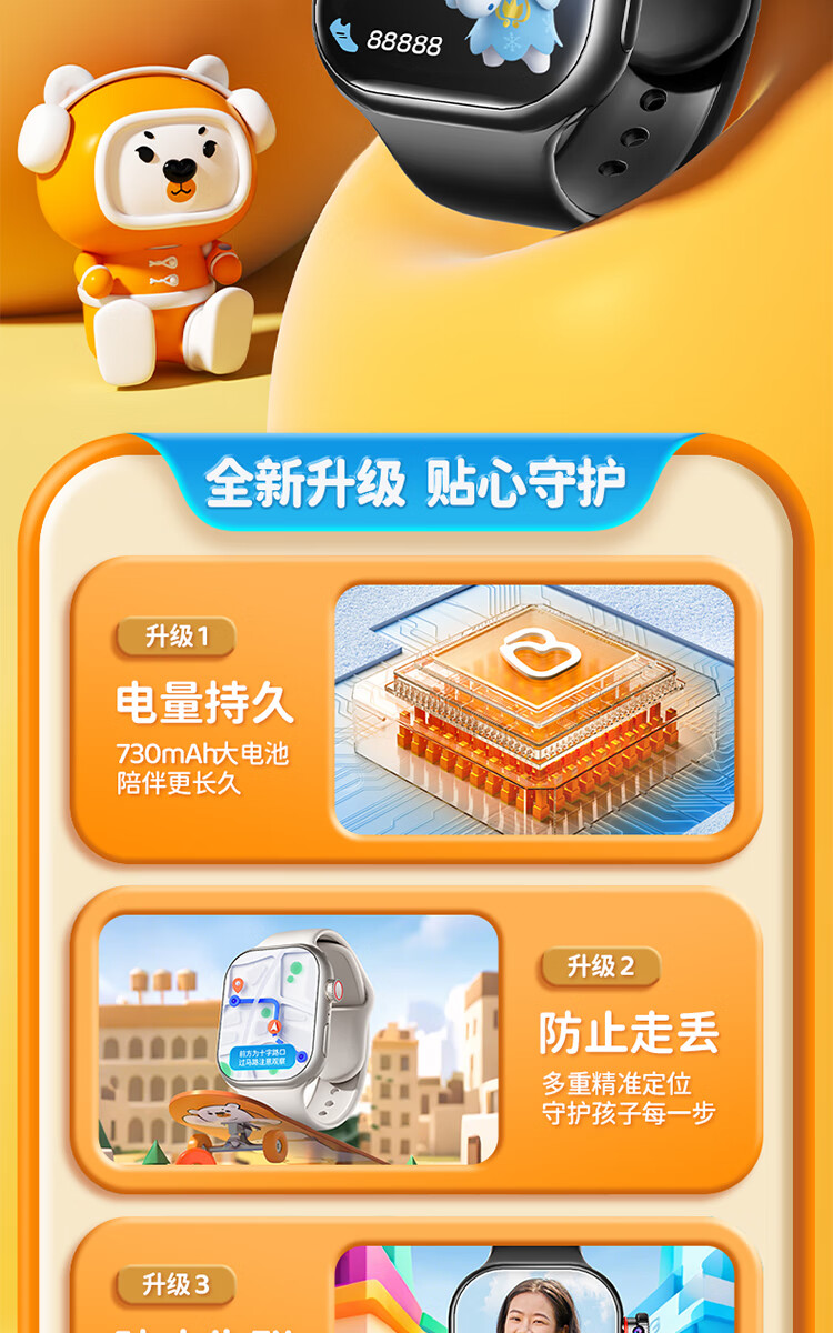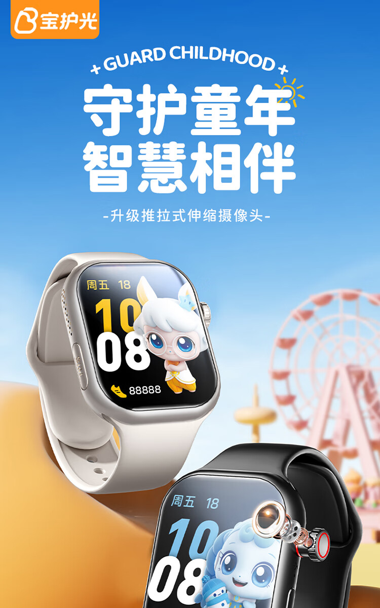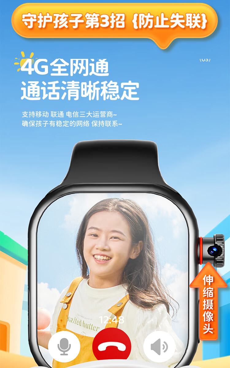 Baohuguang Genius Children's Phone Watch Primary School Students Touch Screen Photography Anti-fall Waterproof Card Accurate Positioning Smart 4G Telecom Version Full Netcom Boys and Girls Photography Black