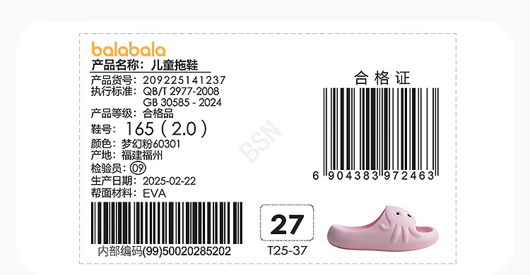 Balabala children's shoes children's slippers non-slip bathroom home shoes soft sole 2025 summer new cartoon shoes 209225141237