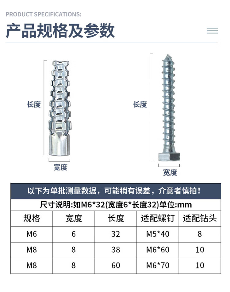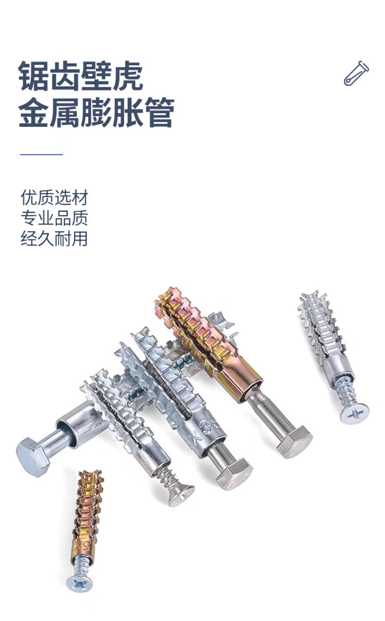 Platinum Sawtooth Gecko Expansion Pipe Light Iron Expansion Screw Cement Wall Hollow Brick Metal Pipe Nail M8*38 Expansion Pipe Nail (50 Sets) Blue