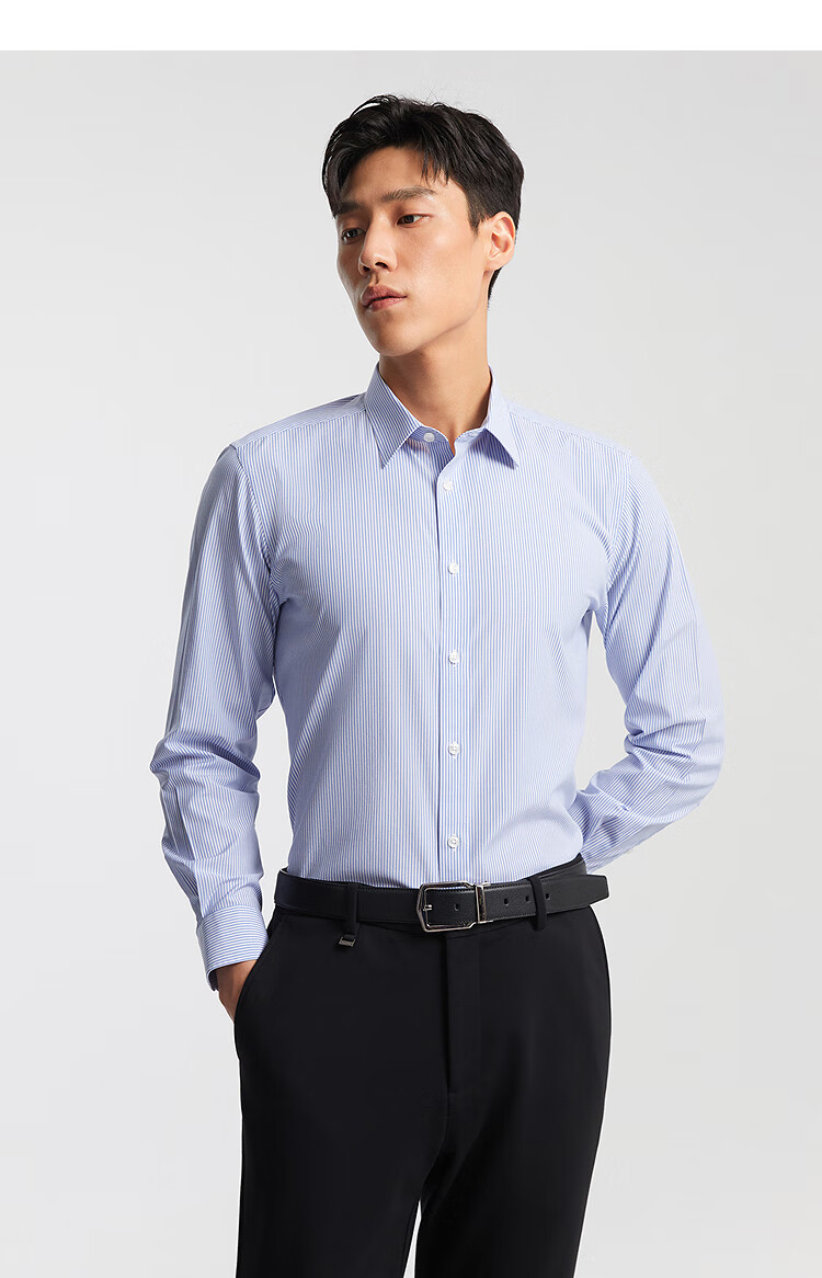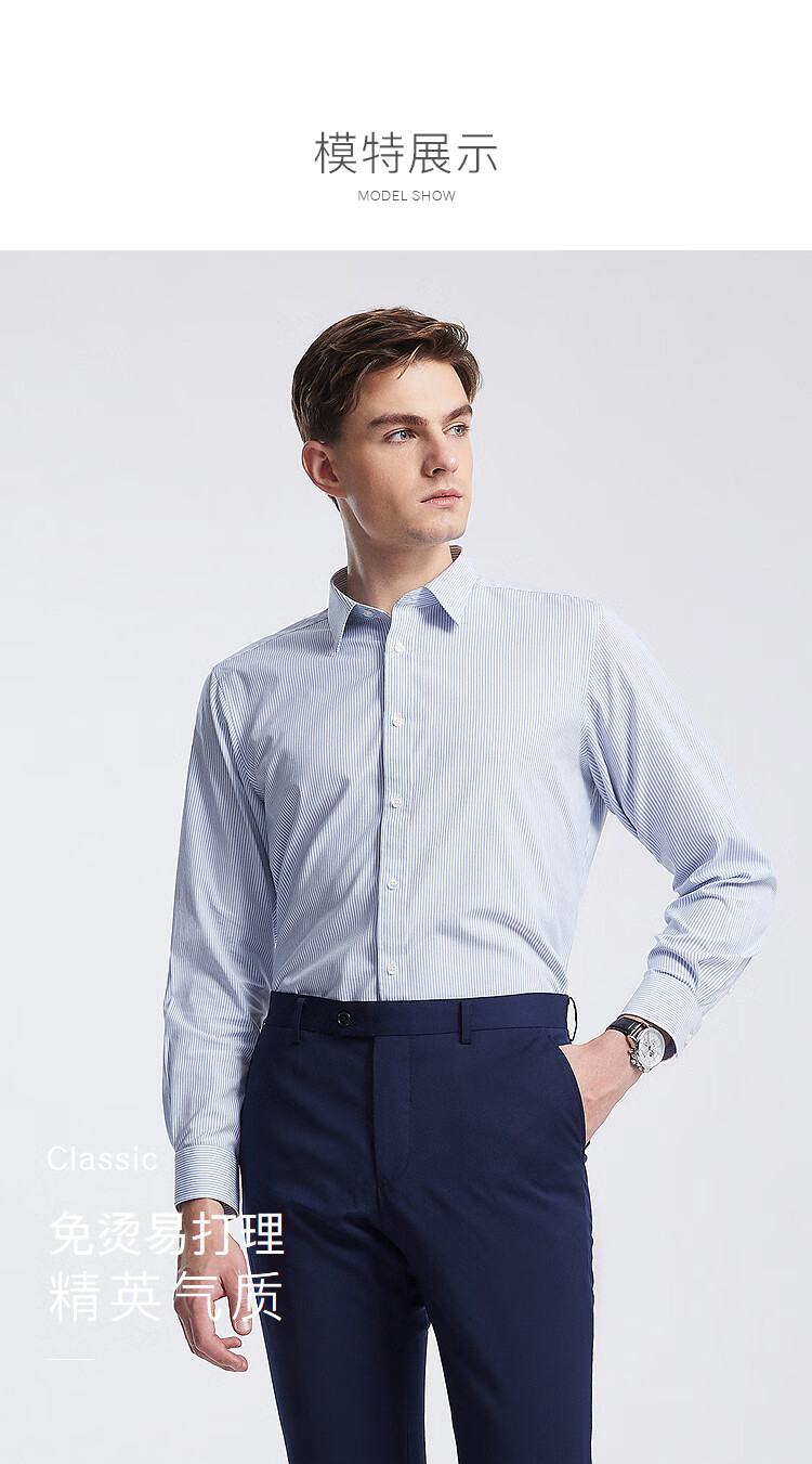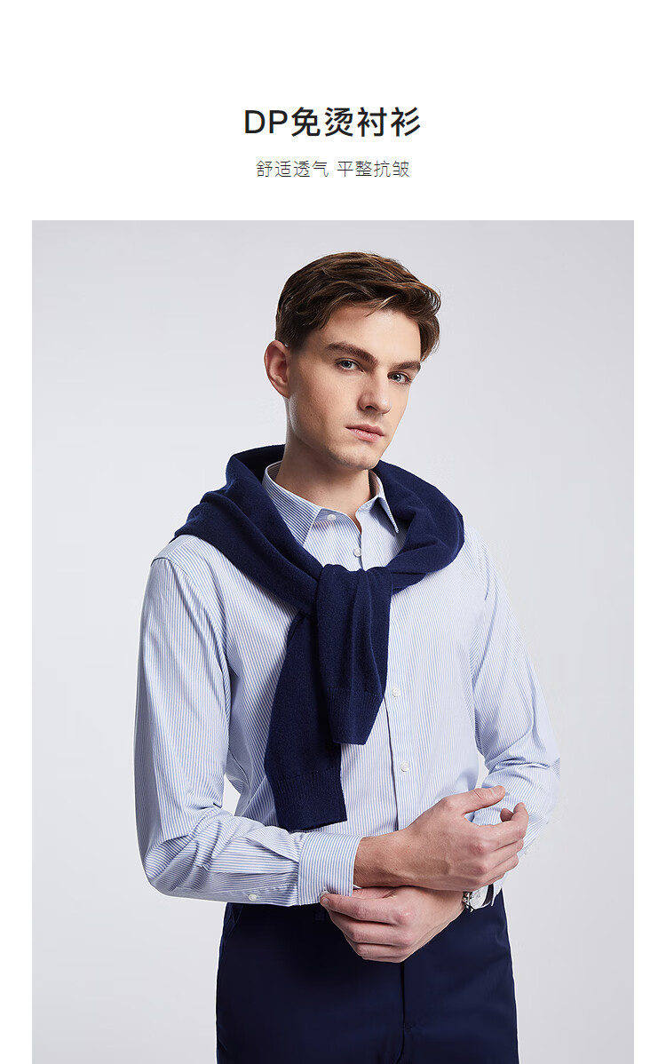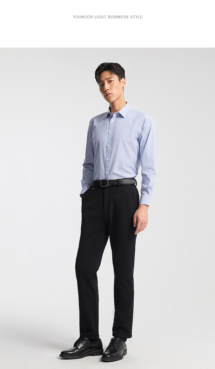 Youngor men's striped 100-count DP no-iron spring new business casual long-sleeved shirt 10273