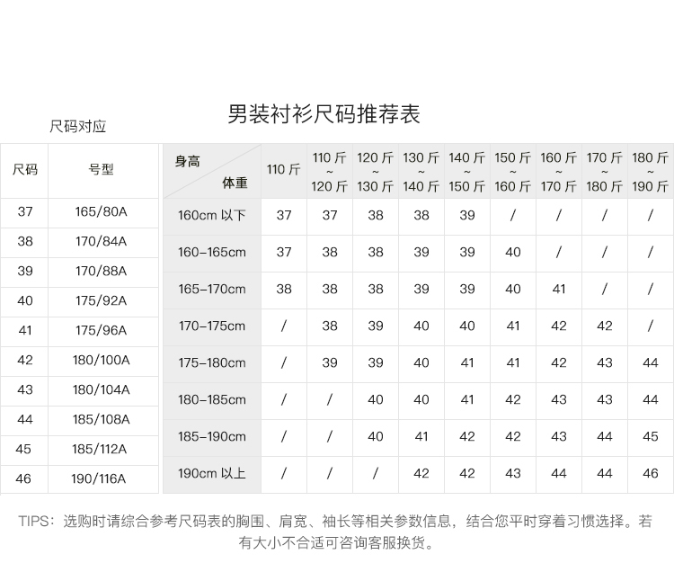 China (cm) 160-165/84-86 165-170 / 88-90 167-172 / 92-96 168-173 / 98-102 170-176 / 106-110