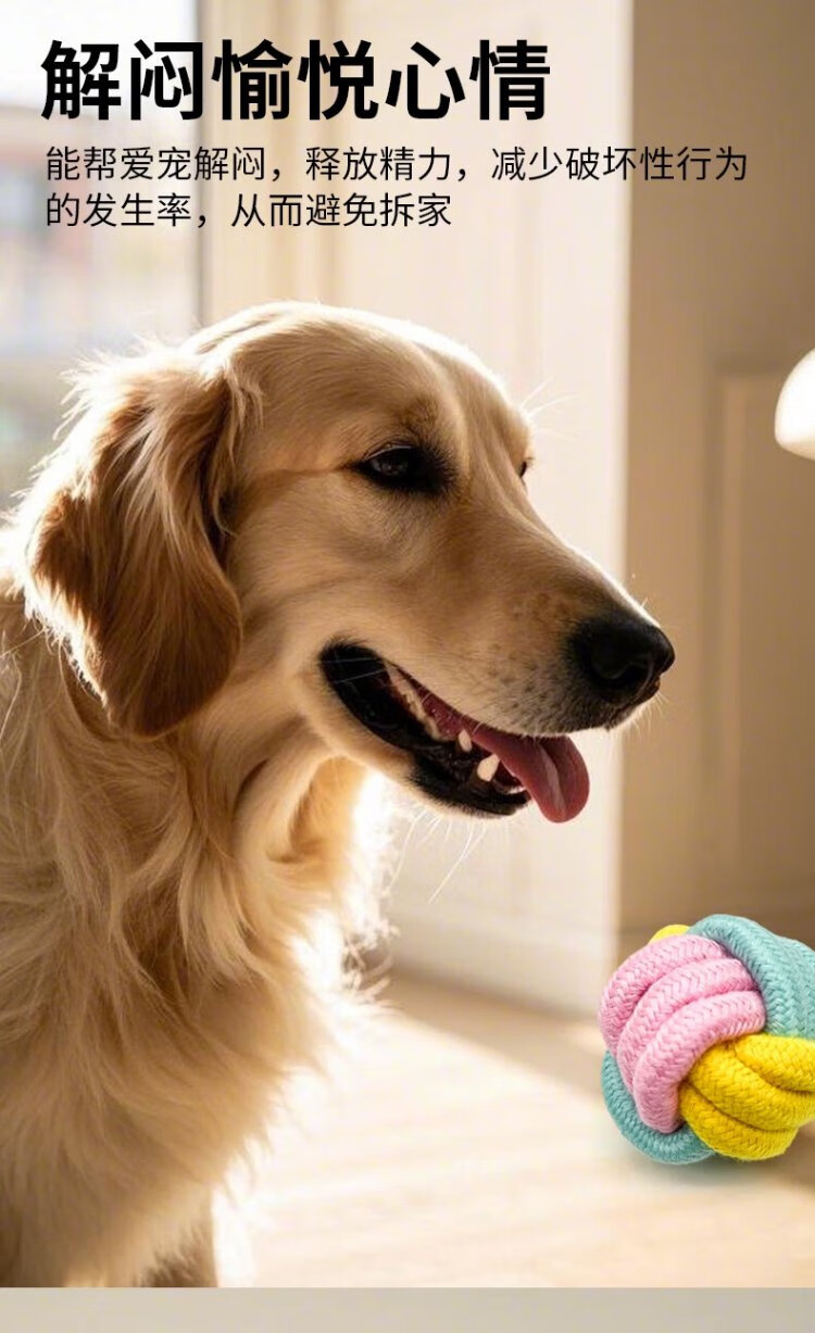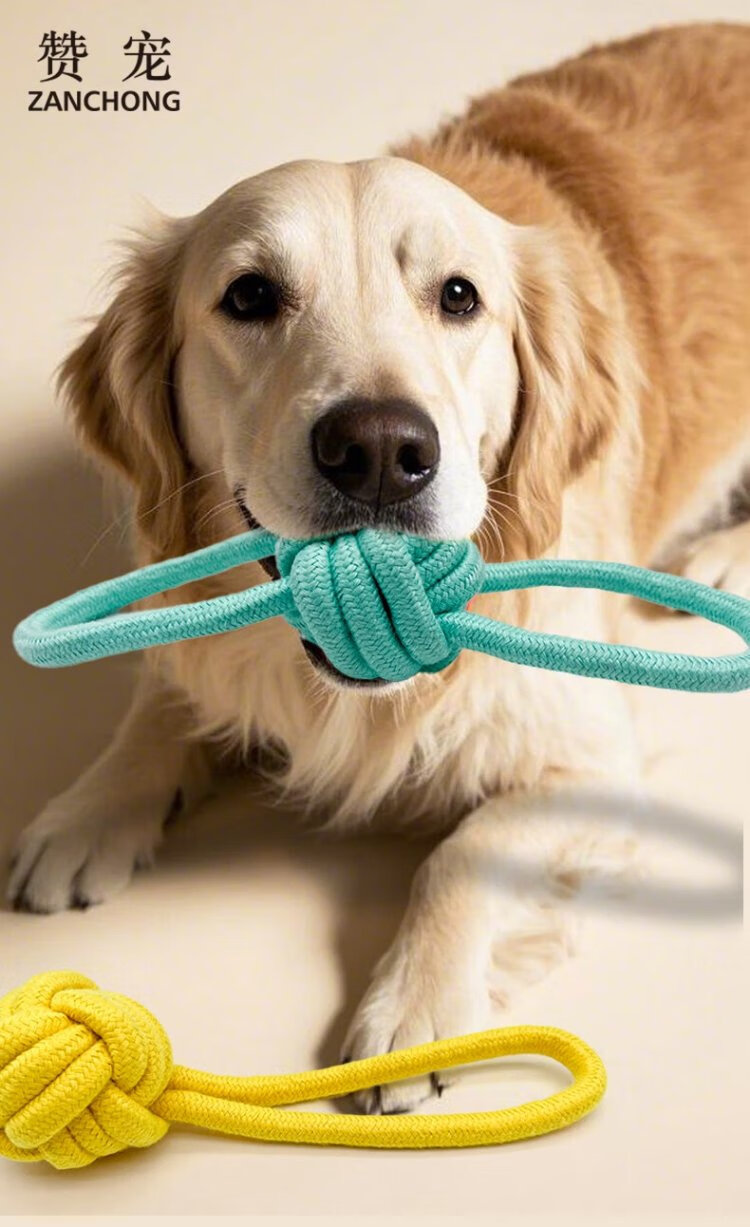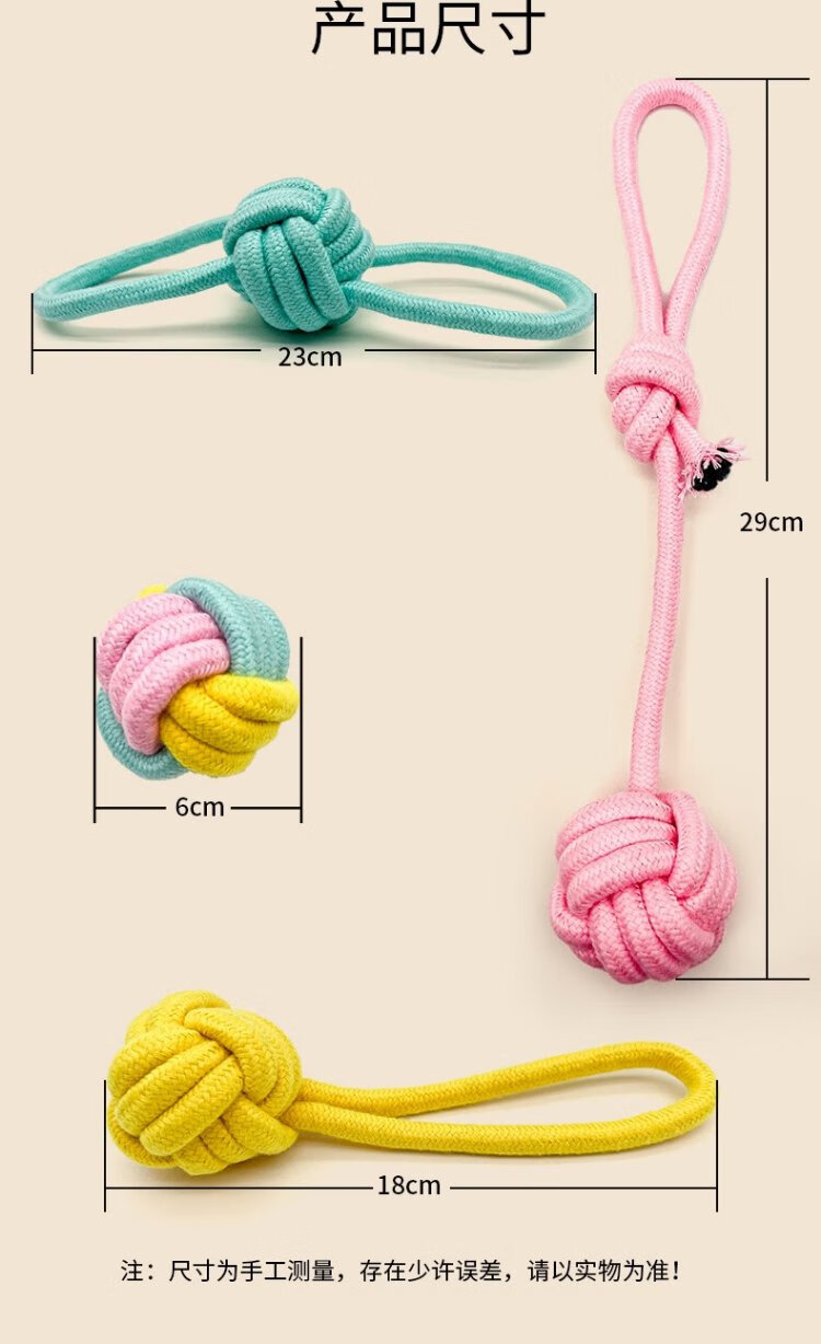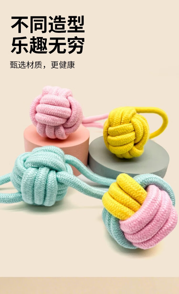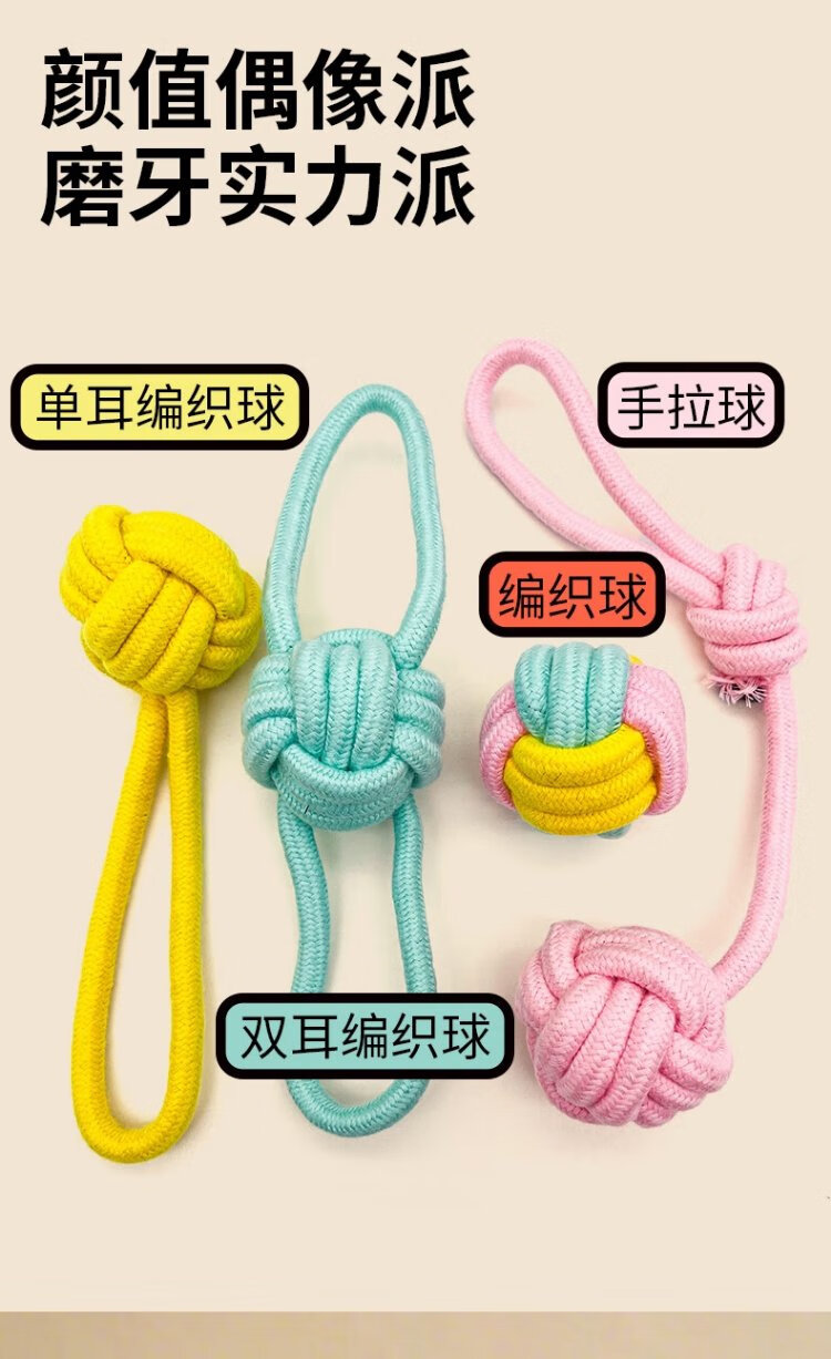 ZanChong Macaron Cotton Rope Teething Dog Toy 4-piece Set Dog Toy Bite-Resistant Teething Ball Pet Puppies Little Self-Happiness