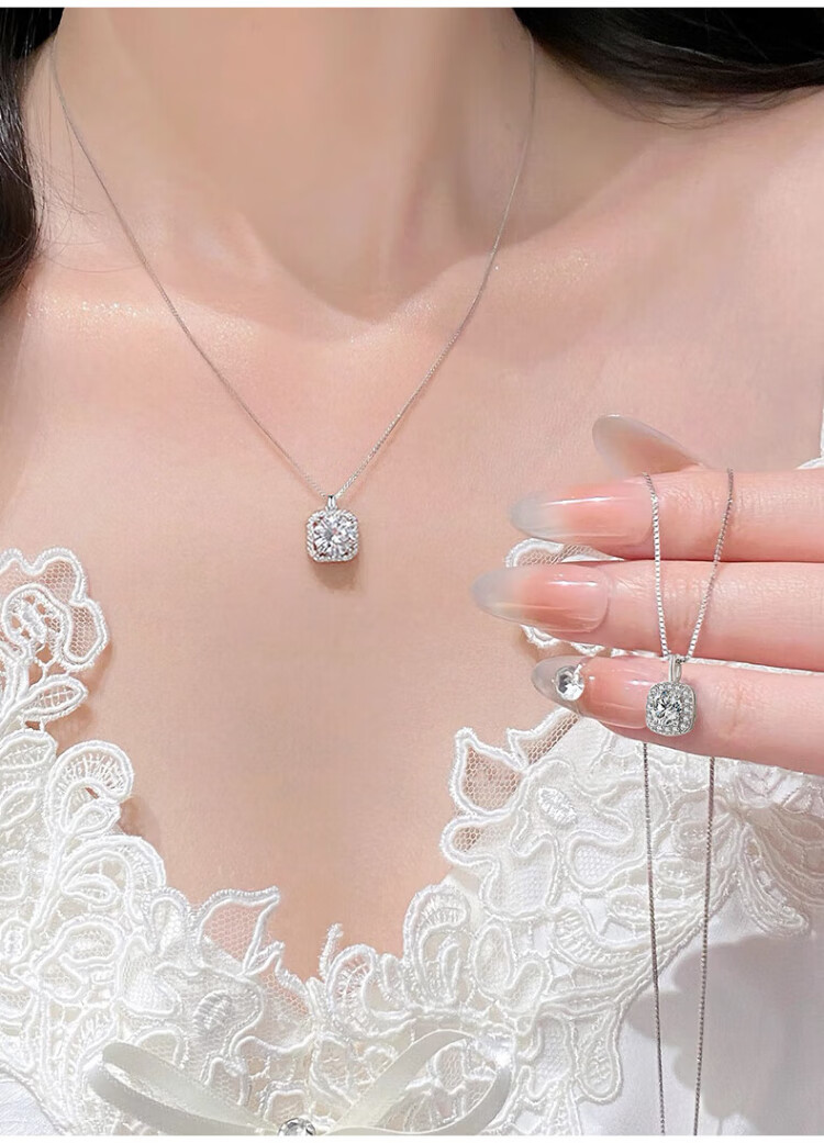 MIMORE S925 Silver Sugar Cube Necklace Women's Light Luxury Niche 2025 New Clavicle Chain Girls Birthday Gift for Best Friend
