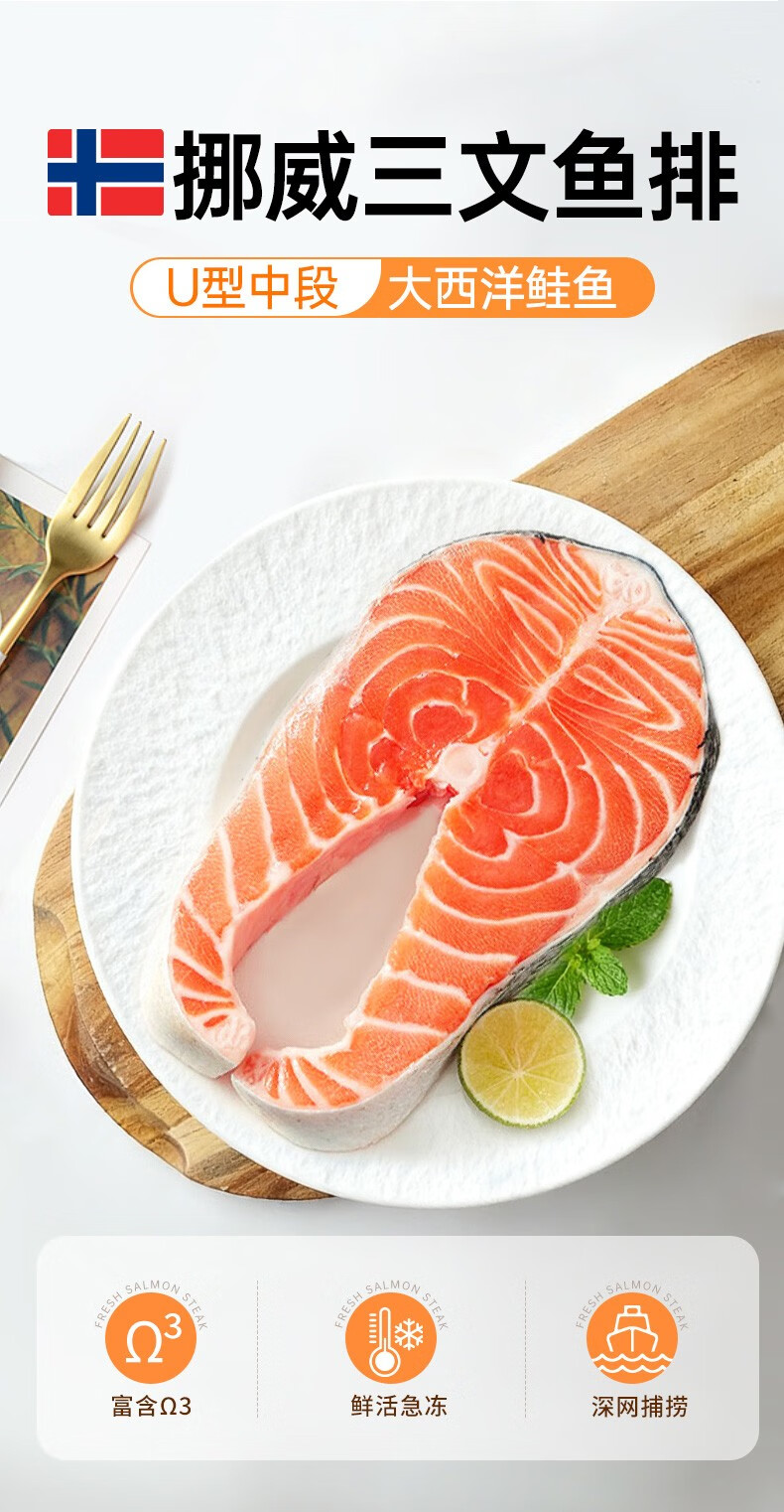 Yunchu Life imported fresh middle section of salmon steak from Norway, whole round cut Atlantic salmon, fresh fish 2Jin Jin is equal to 0.5kg