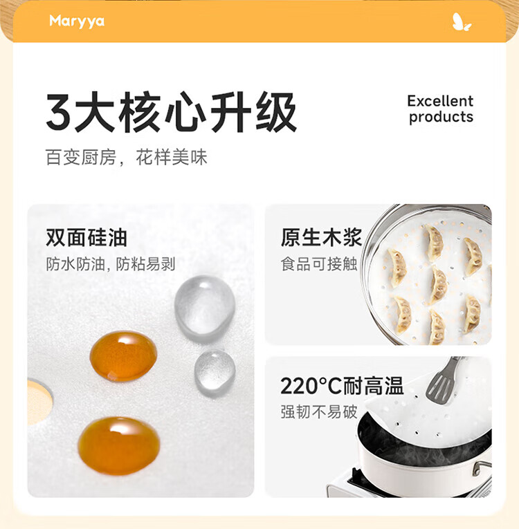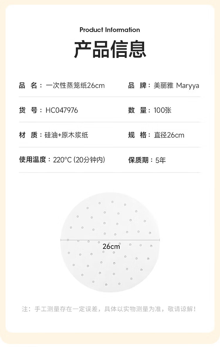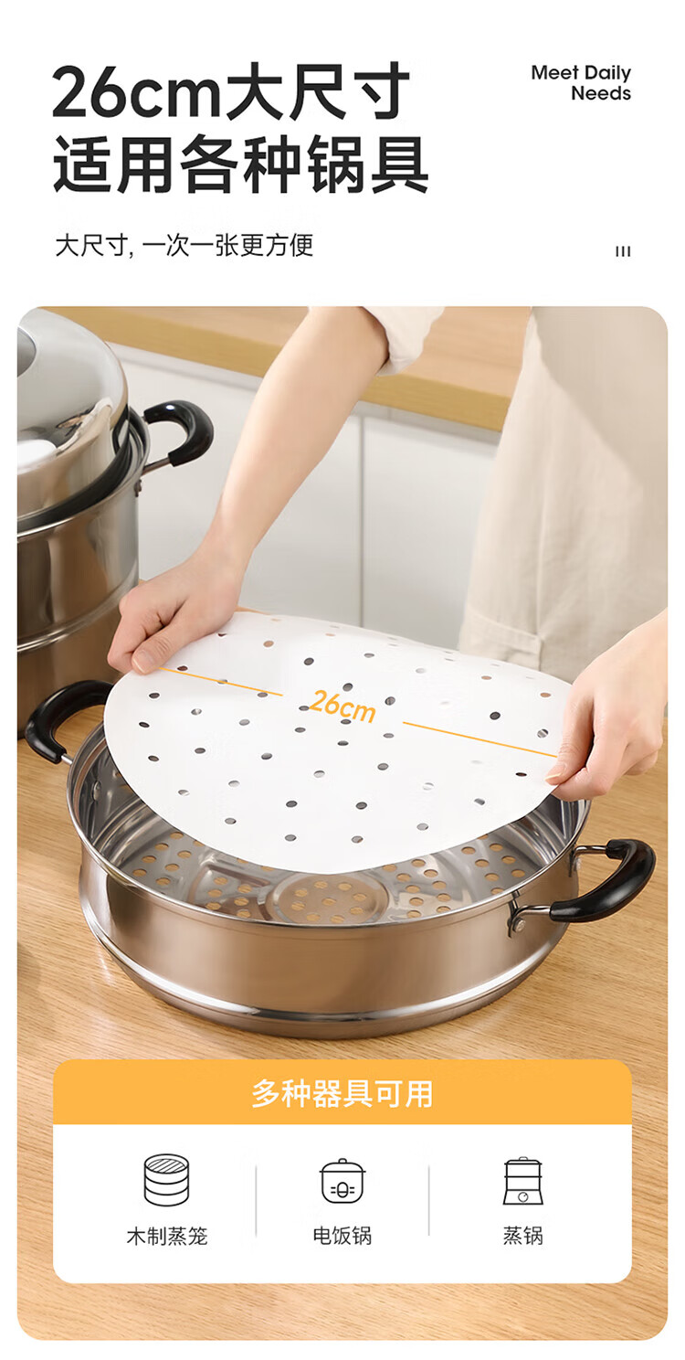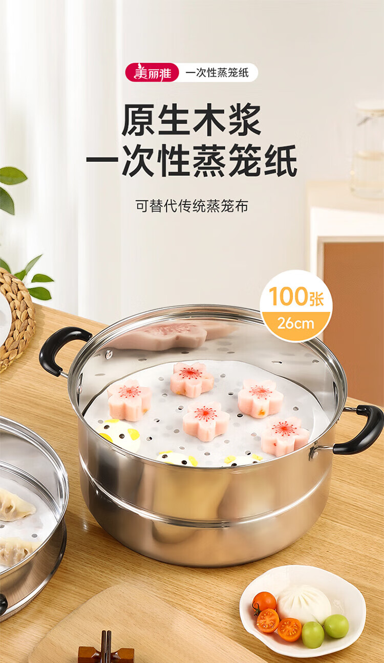 Meiya steamer paper food grade 26cm*100 sheets disposable steamer steamer special paper steamed bun paper