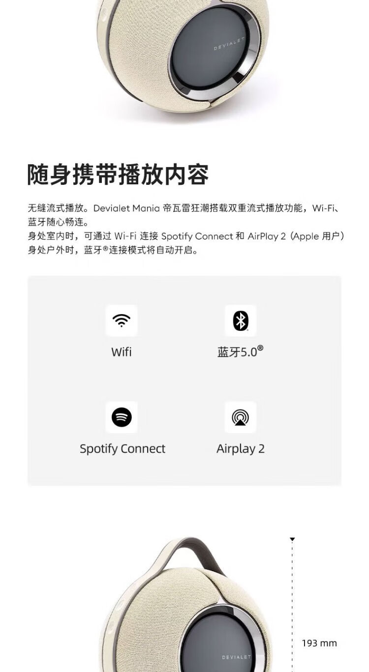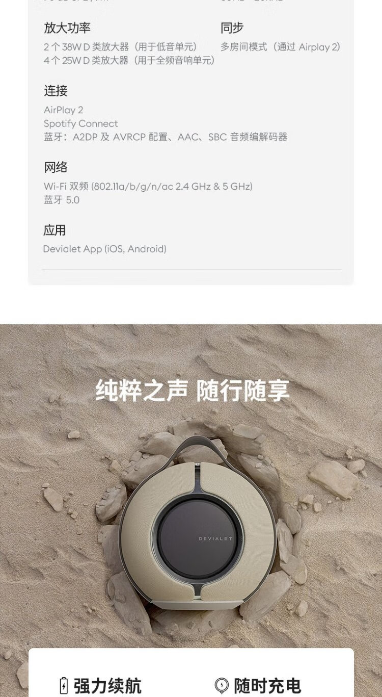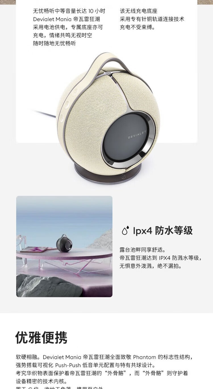 DEVIALET Mania Frenzy Outdoor Portable Speaker High-Fidelity Bluetooth Speaker Wilderness Sand Collection Series 95dB Christmas Gift