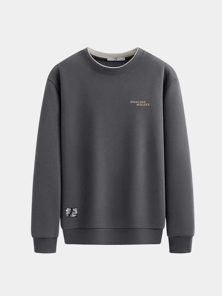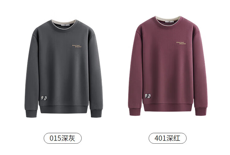 Dances with Wolves Antistatic & Thermal Storage Exquisite Embroidery Fake Two-Piece Comfortable Antibacterial Round Neck Sweatshirt Men 401 Dark Red L