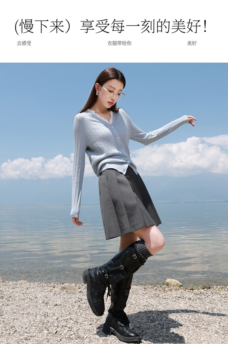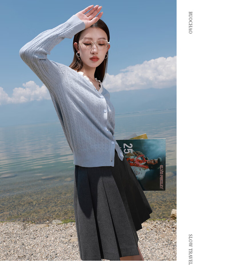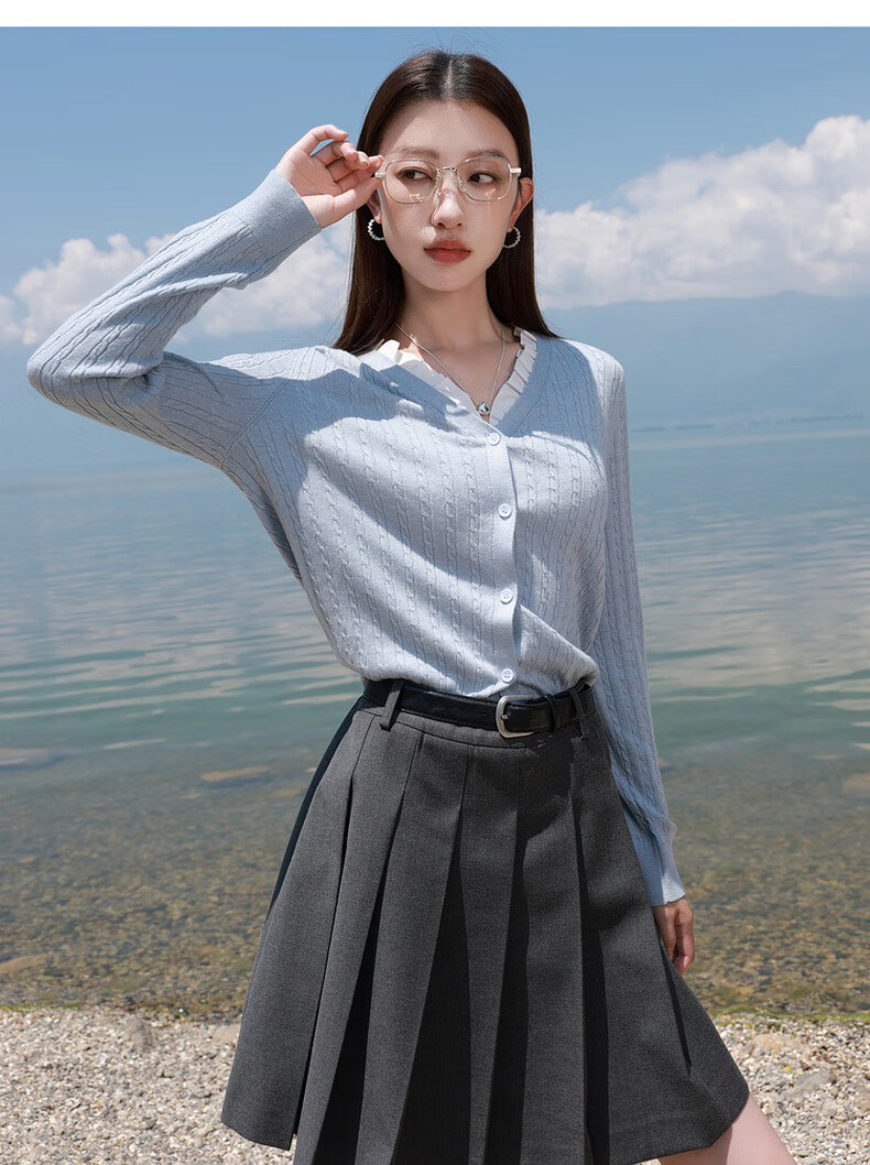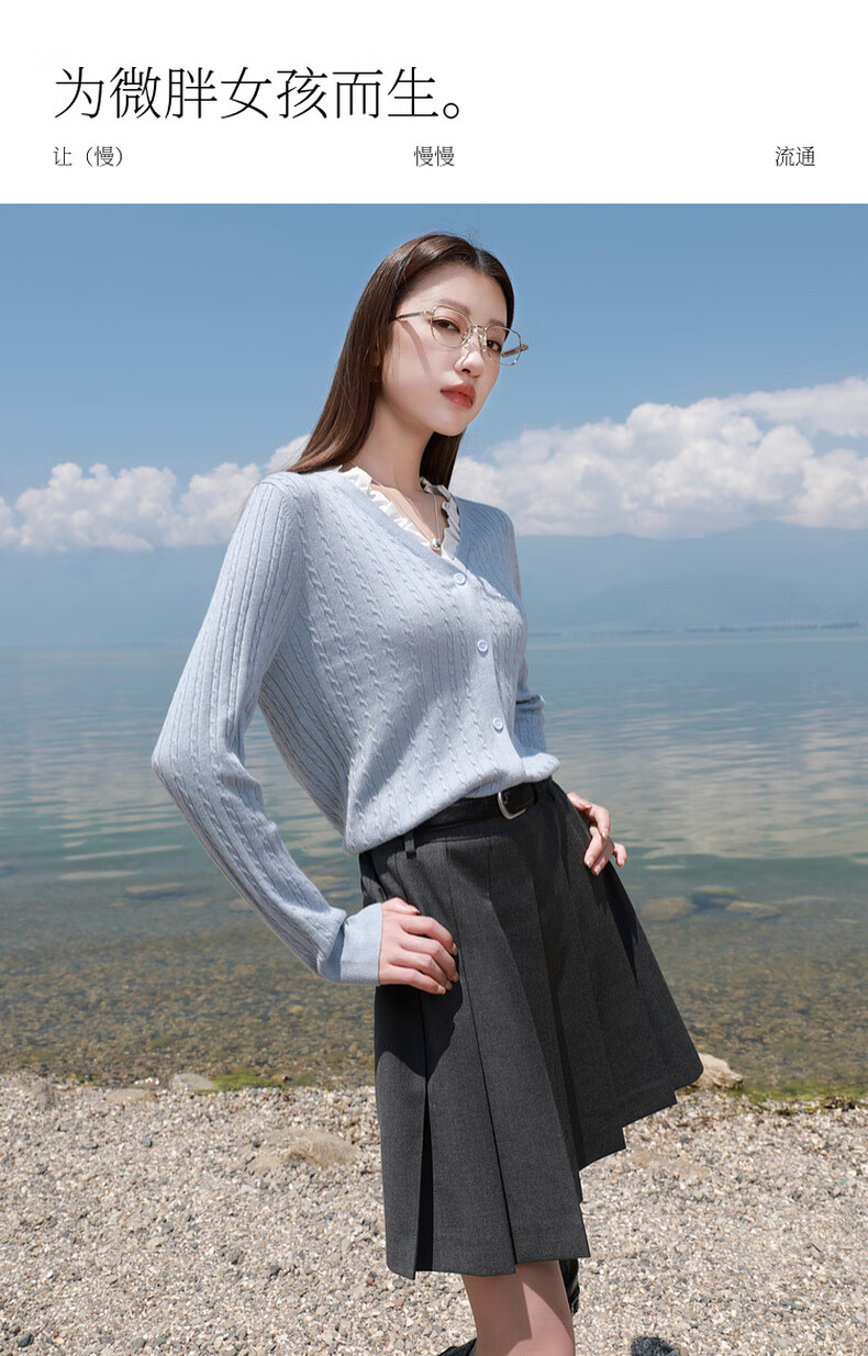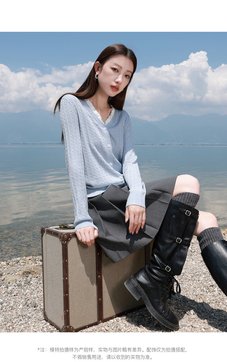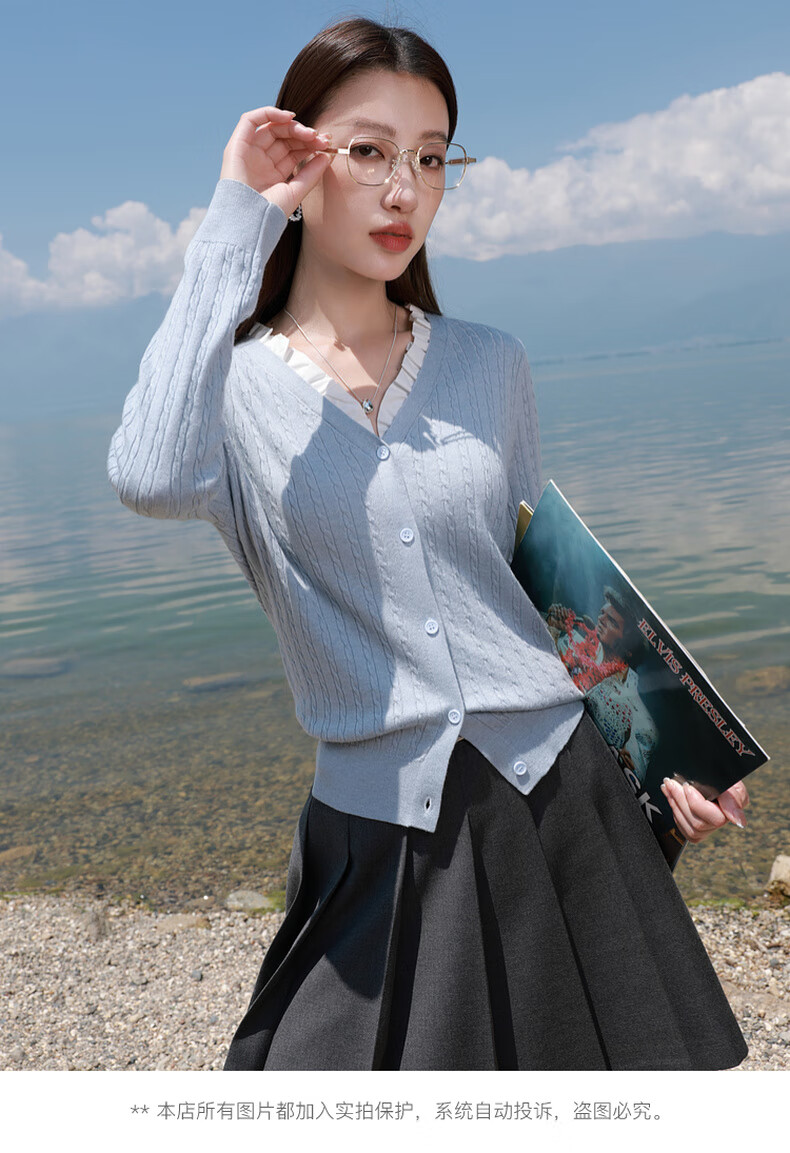 Three-color large size women's clothing 2025 autumn new cable knitted cardigan jacket fake two-piece top for fat girls