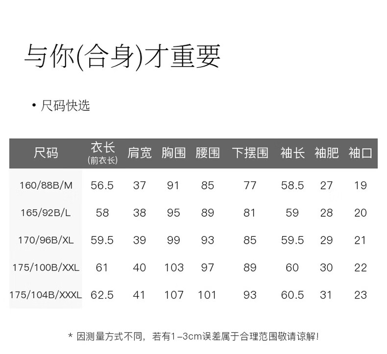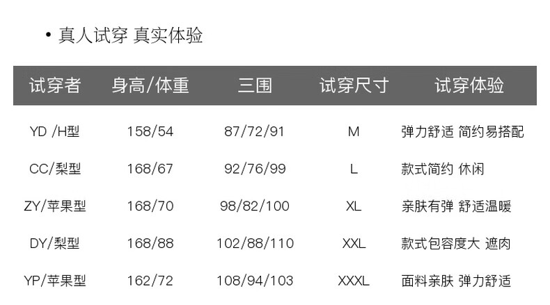China (cm) 160-165/84-86 165-170 / 88-90 167-172 / 92-96 168-173 / 98-102 170-176 / 106-110