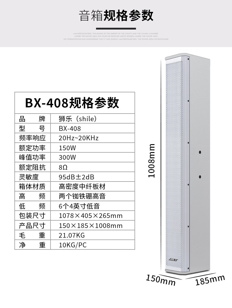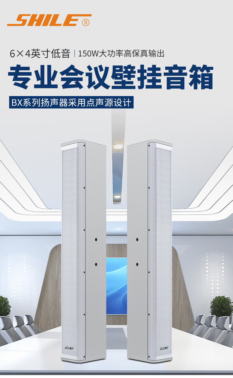 SHILE BX-408 white high-end conference speaker wall-mounted sound column multi-functional exhibition hall large conference 150W passive speaker pair