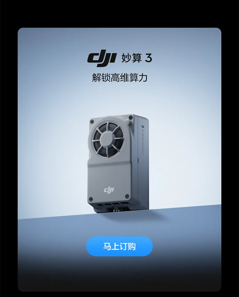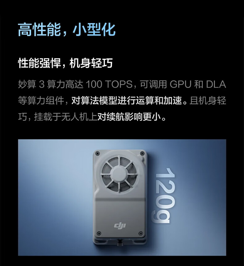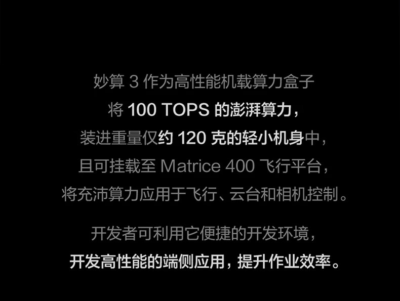 DJI's high-performance airborne computing box Miosuan 3 is mounted on the Matrice 400 series UAV flight platform. Pickup card