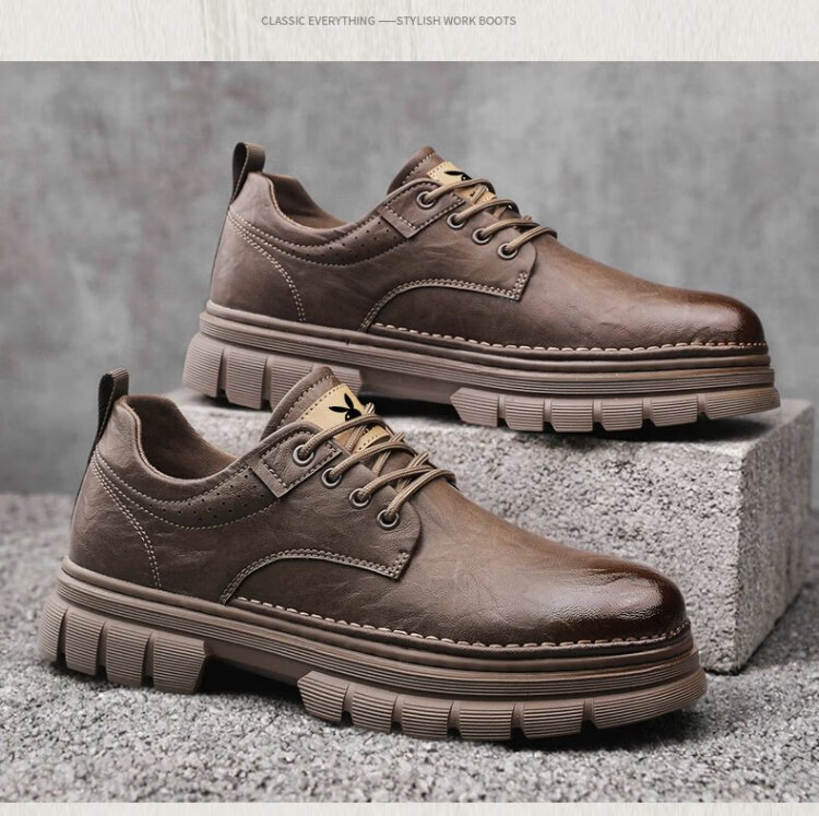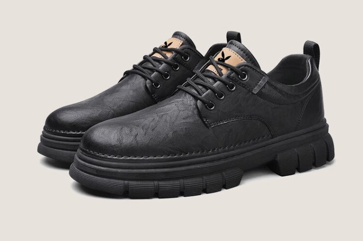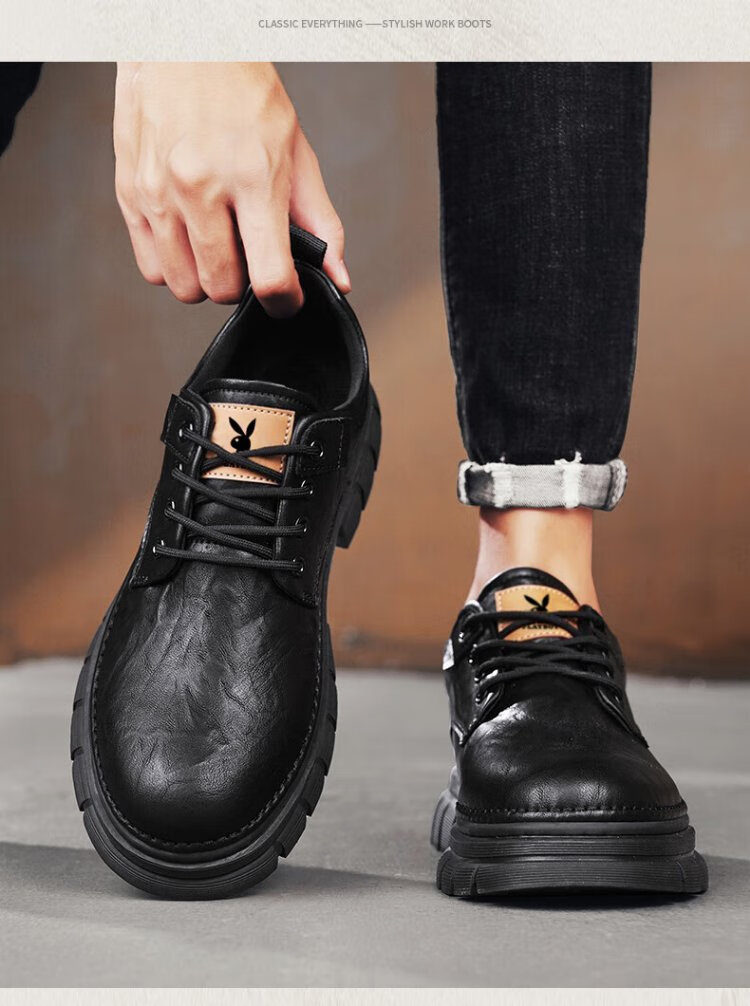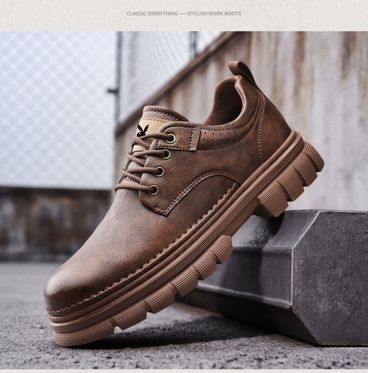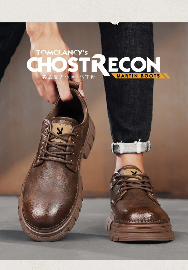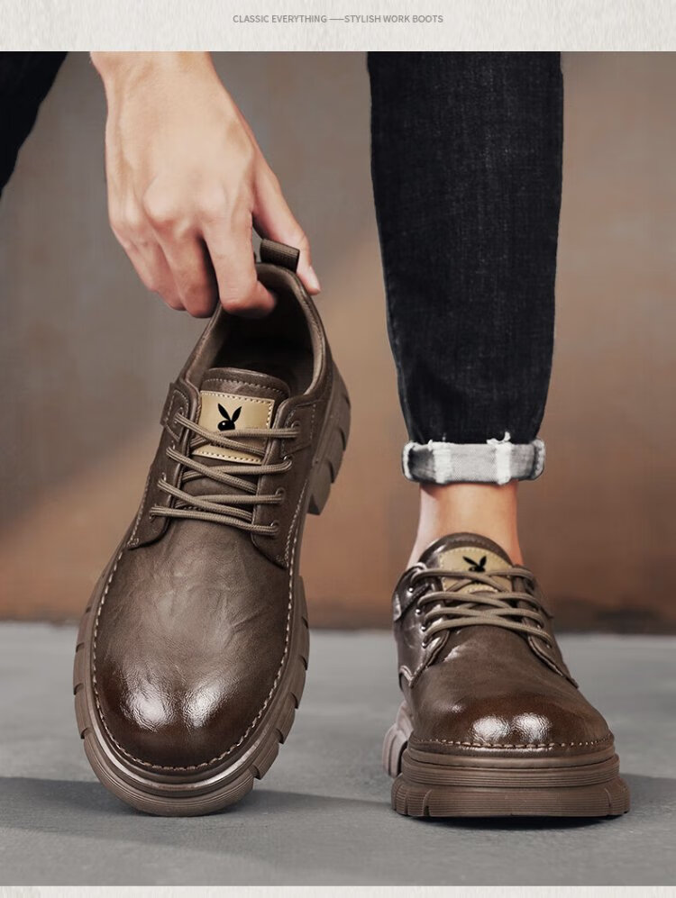 PLAYBOY Leather Shoes Men's 2025 Autumn Business Casual Shoes Soft Sole British Formal Shoes Low-top Work Shoes Brown 42
