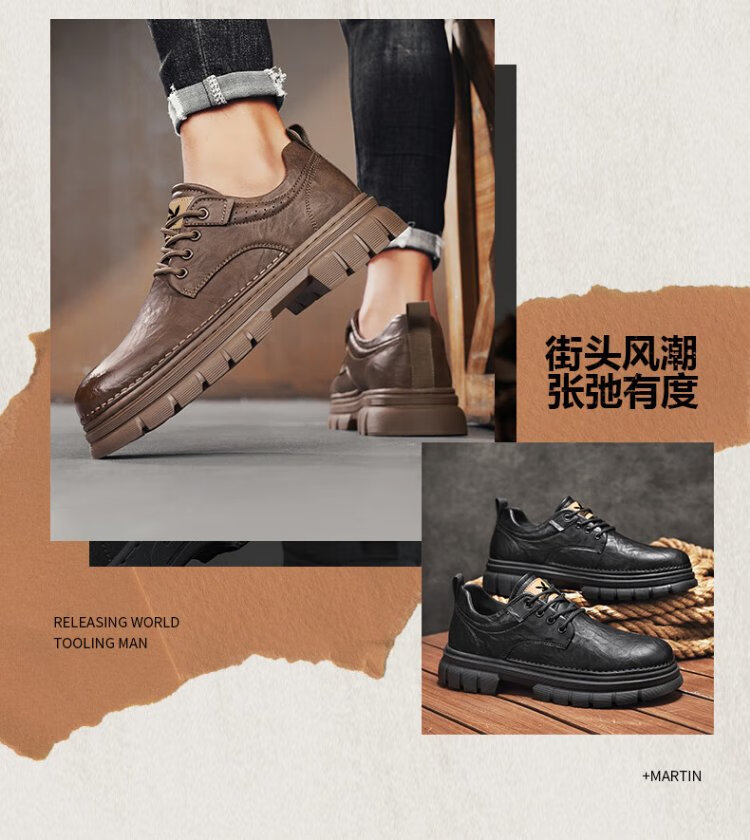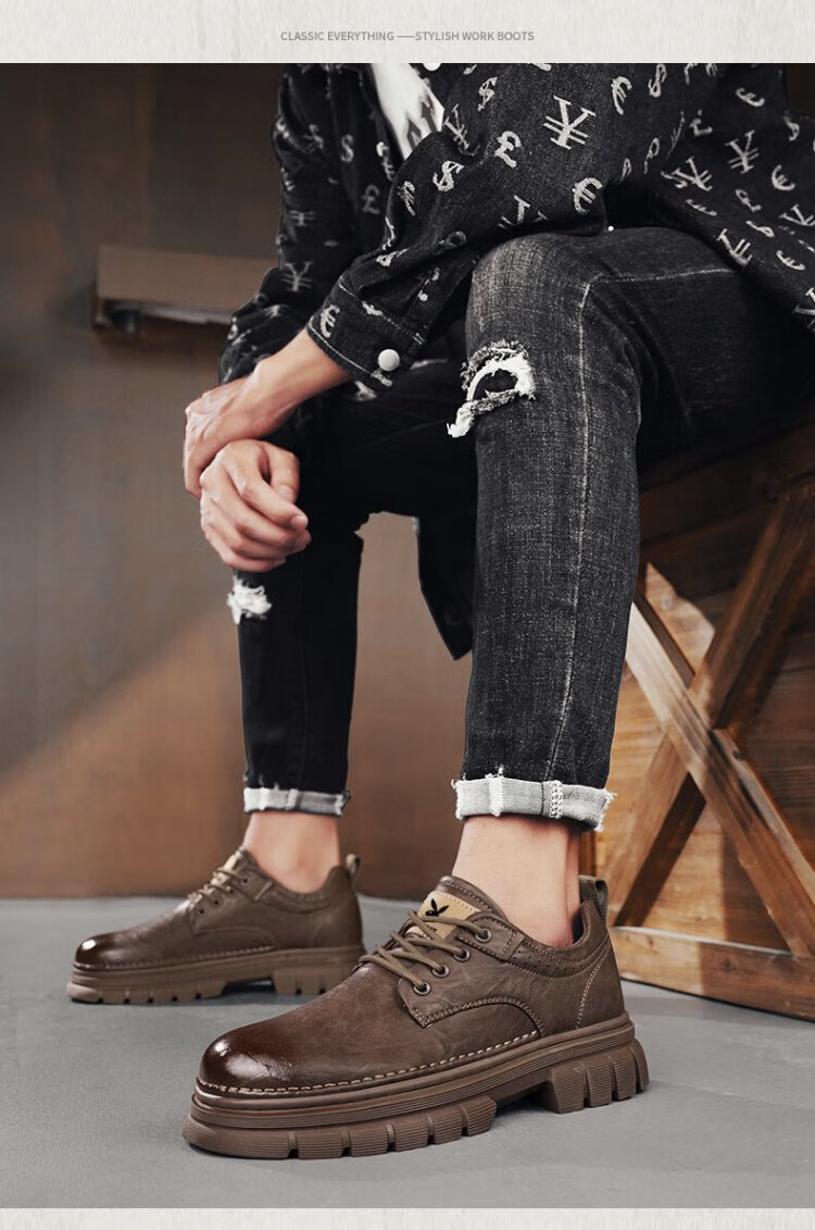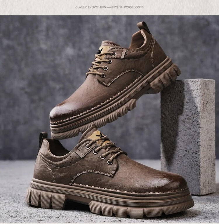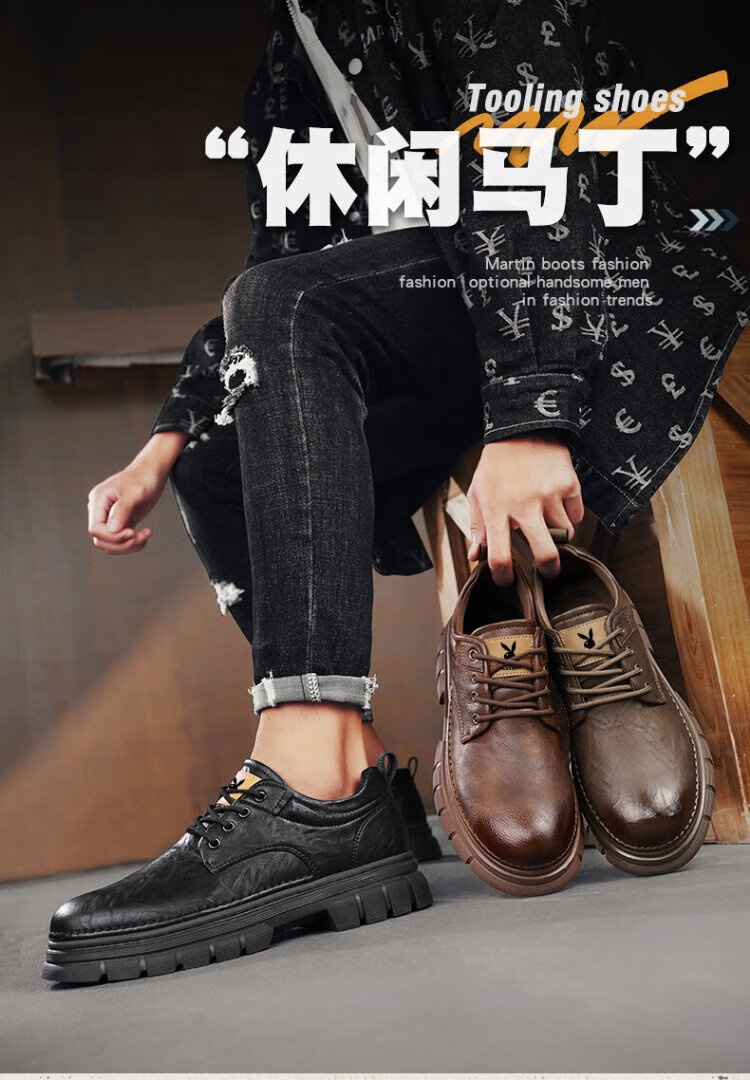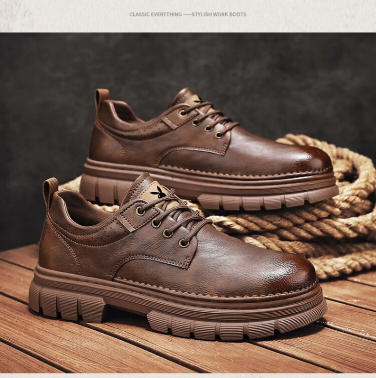 PLAYBOY Leather Shoes Men's 2025 Autumn Business Casual Shoes Soft Sole British Formal Shoes Low-top Work Shoes Brown 42