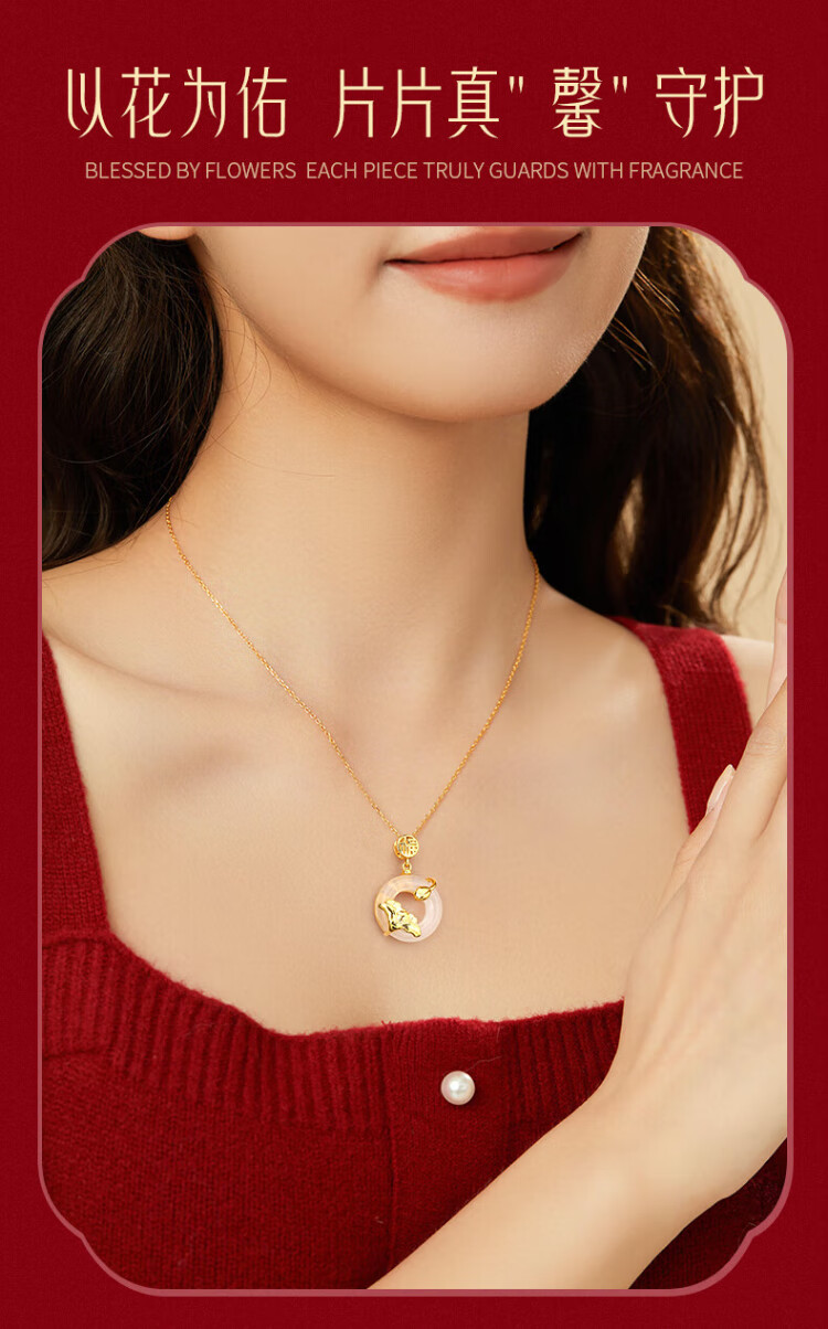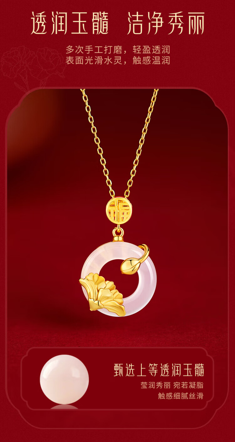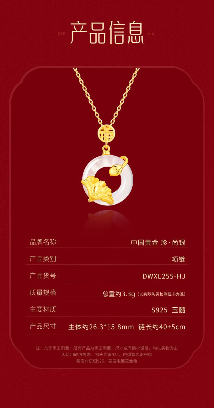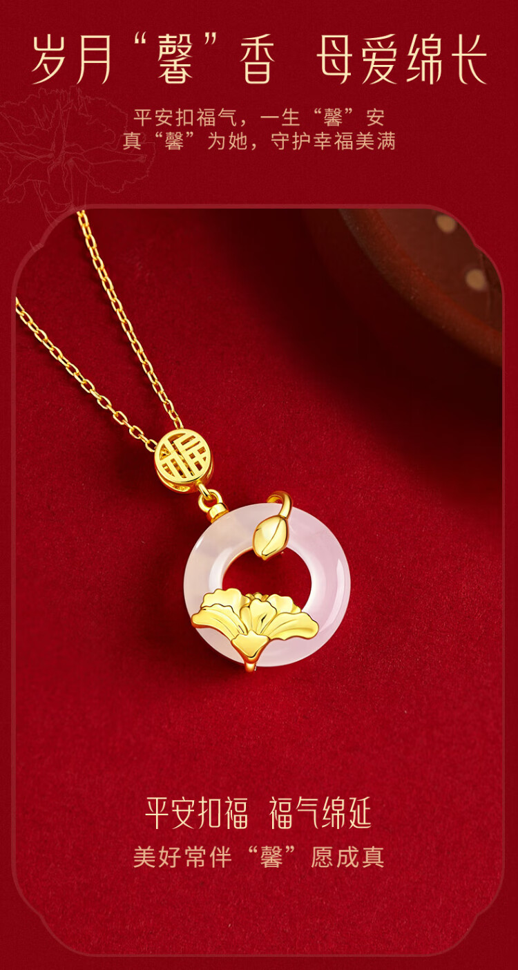 Zhen Shang Silver Chinese Gold Silver Necklace Women's Peace Button Jade Pendant Girls Mom Mother Birthday Gift Ladies Practical Wife